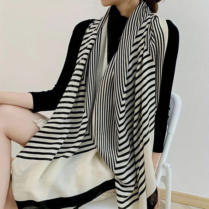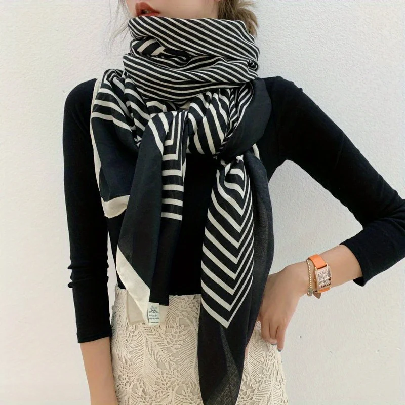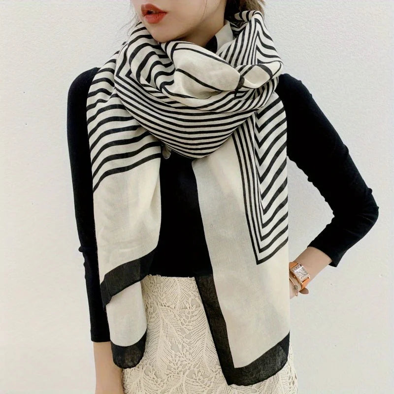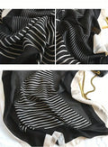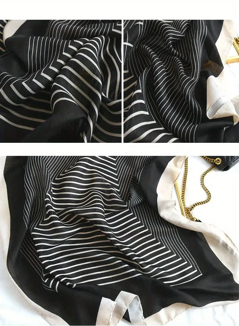 Classic Black White Striped Scarf Elegant Thin Breathable Silky Shawl Spring Summer Sunscreen Soft Beach Towel