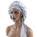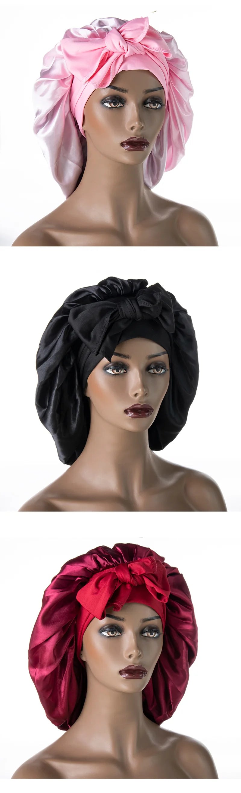 Coffee Black White Wine Navy Pink Large Satin Bonnet Silk Night Sleeping Cap Women Long Streamer Hair Care Hat