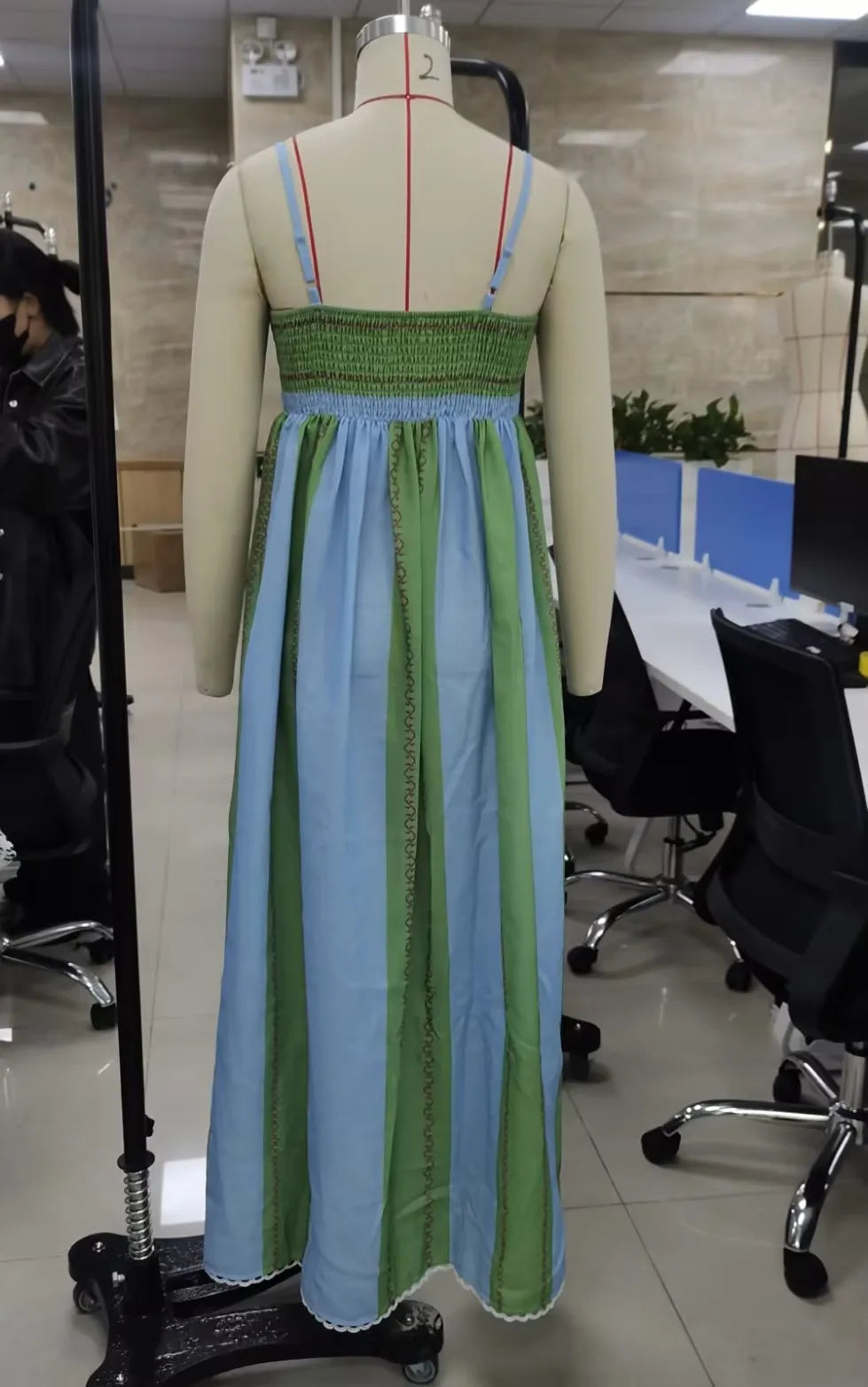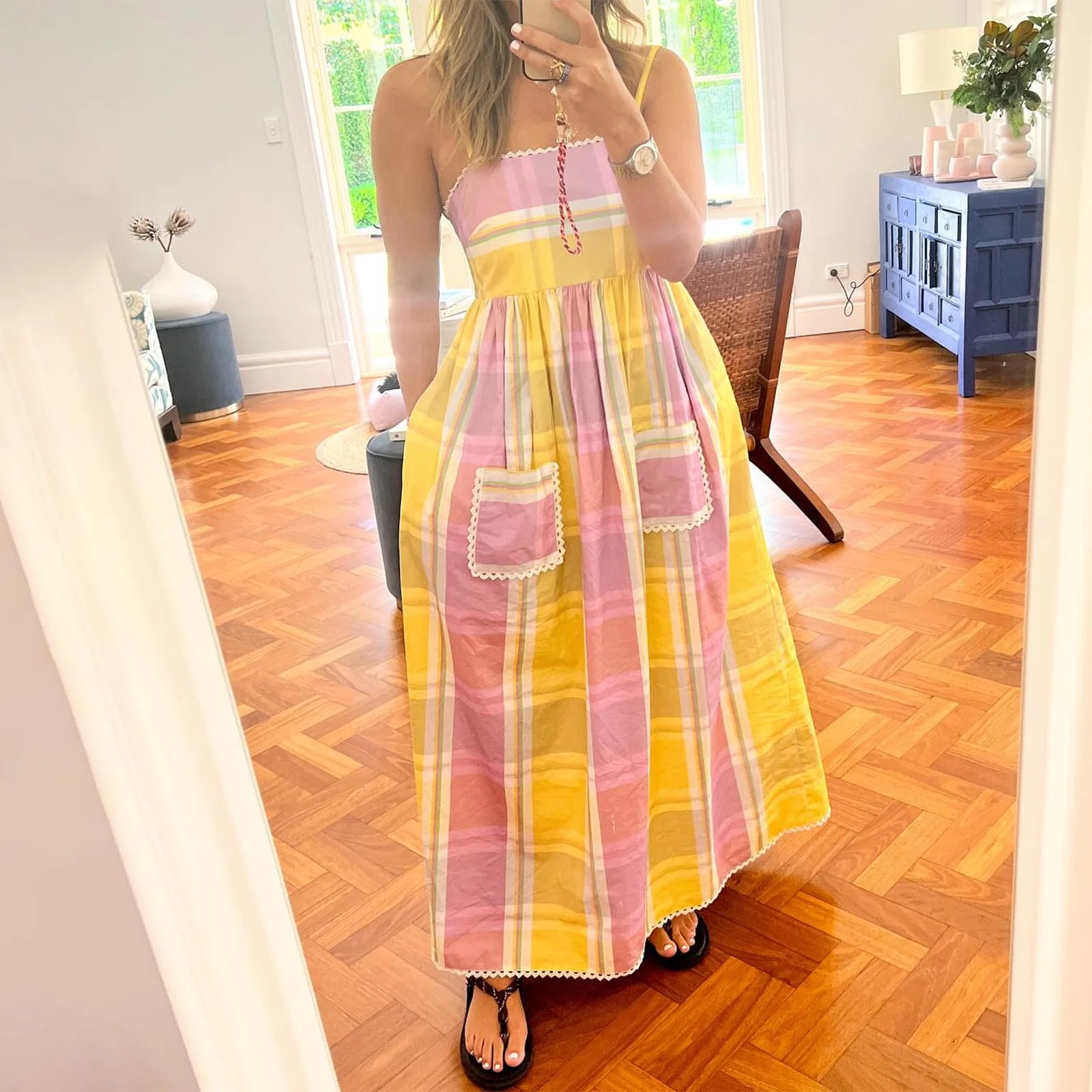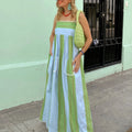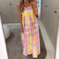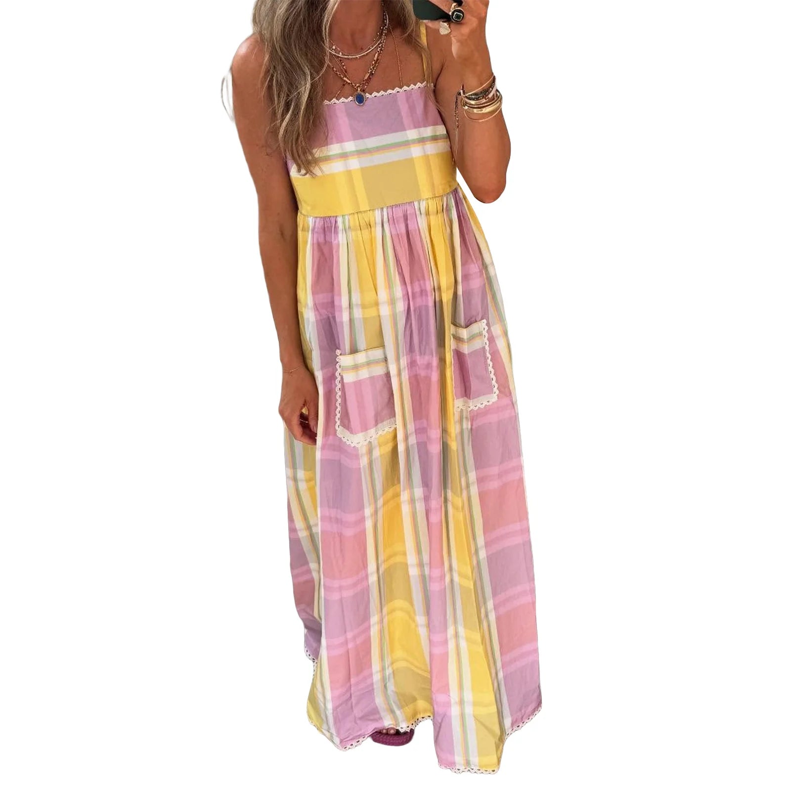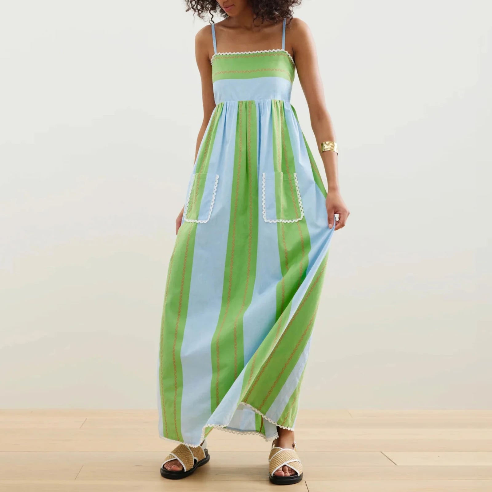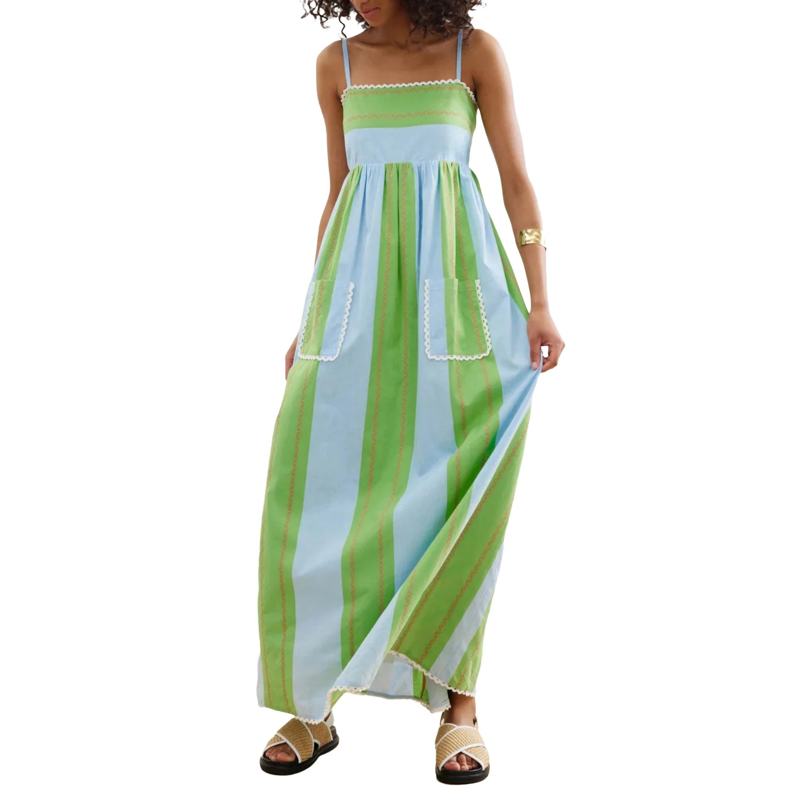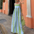 Womens Striped Long Dress Summer Sleeveless Spaghetti Strap Front Pocket Dress Flowy Beach Dress