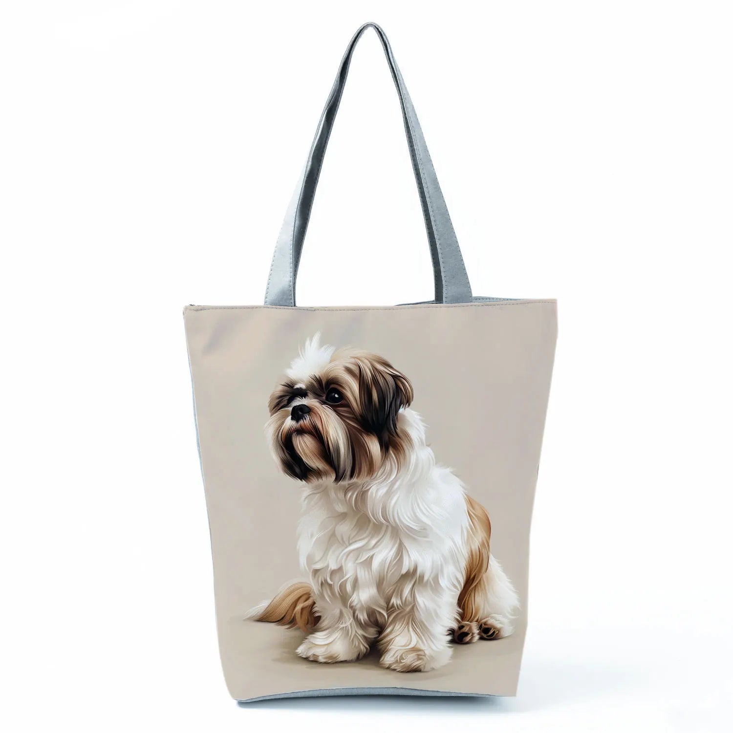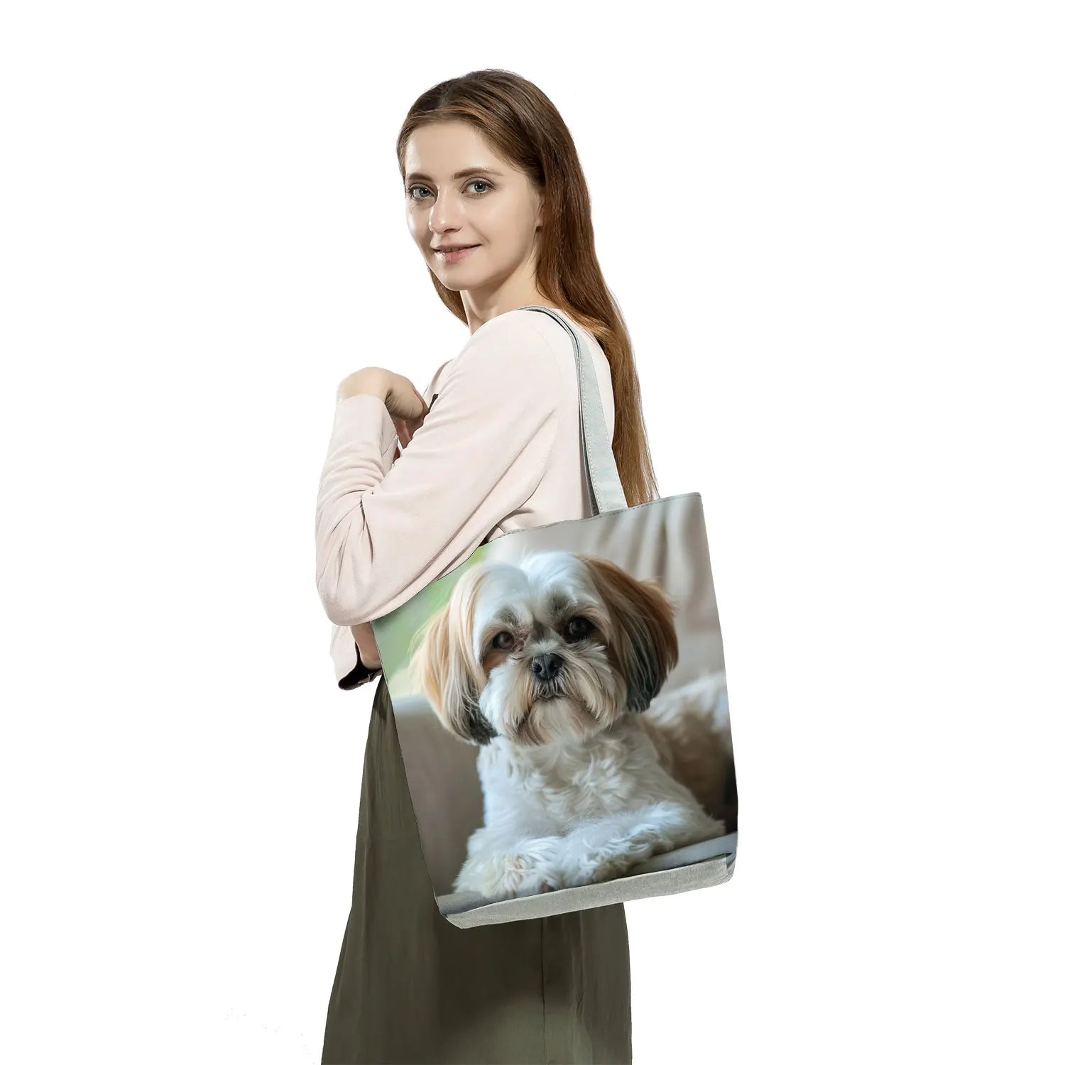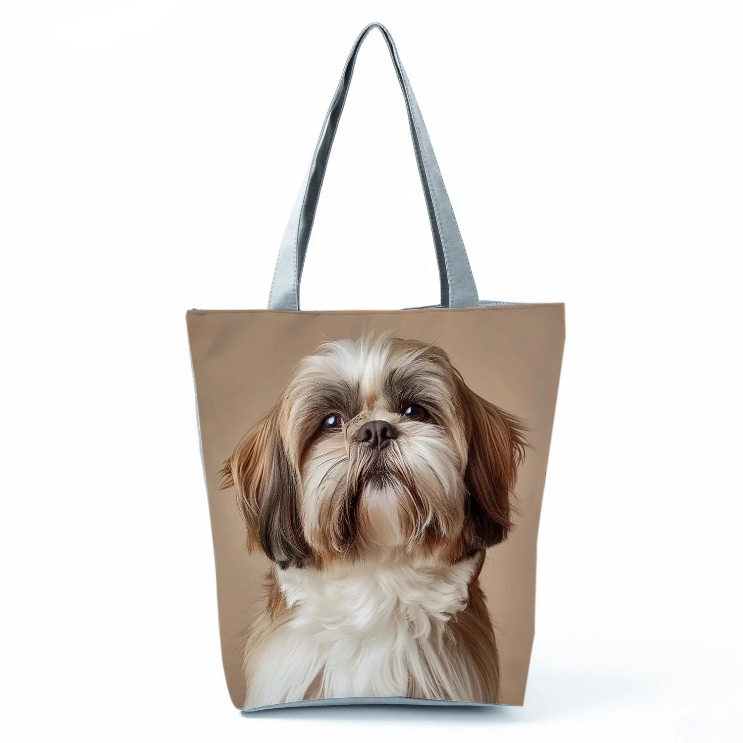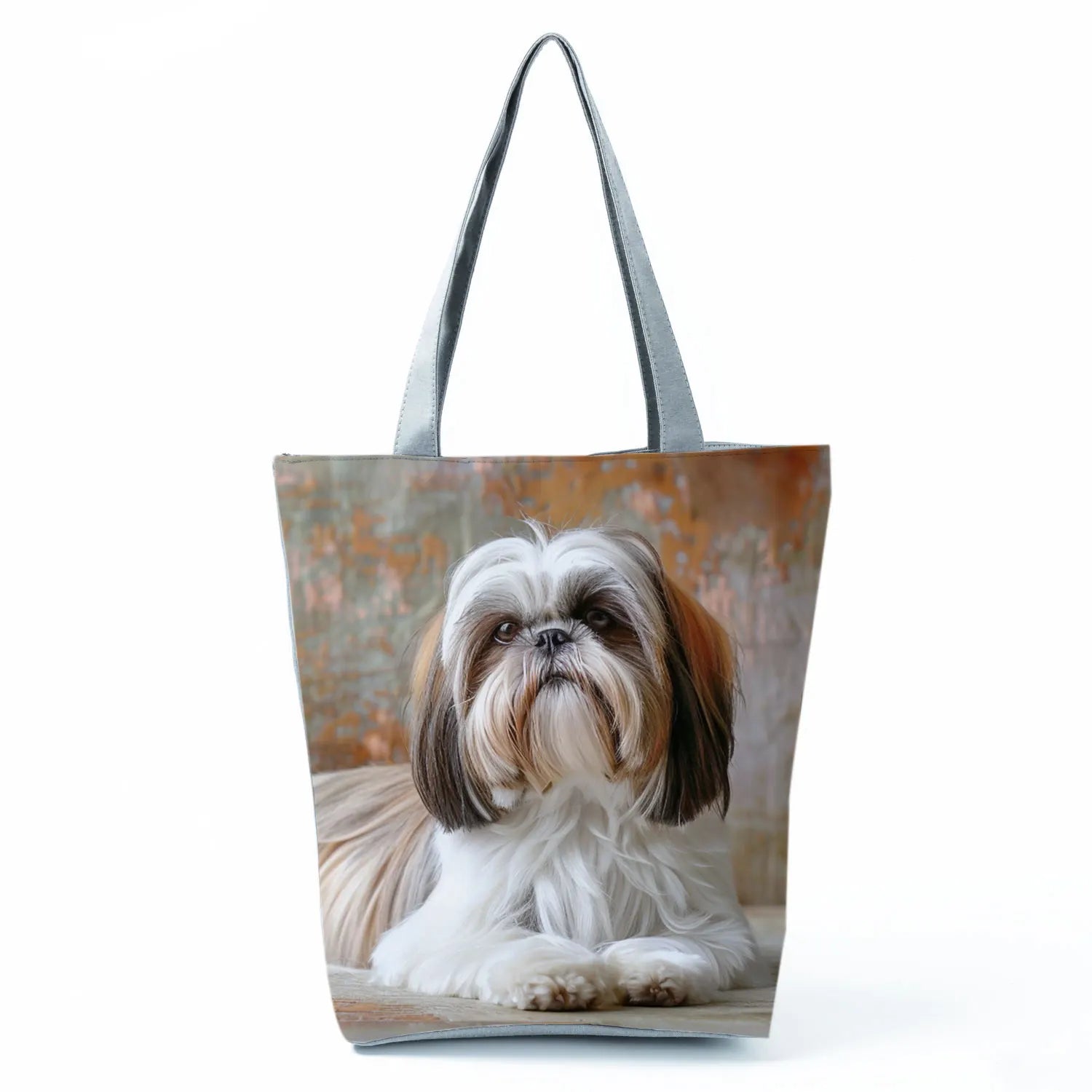 Cute Shih Tzu Print Shopping Bags Groceries Women Handbags Portable Kawaii Animal Dog The Tote Bag Large Capacity Shoulder Bags