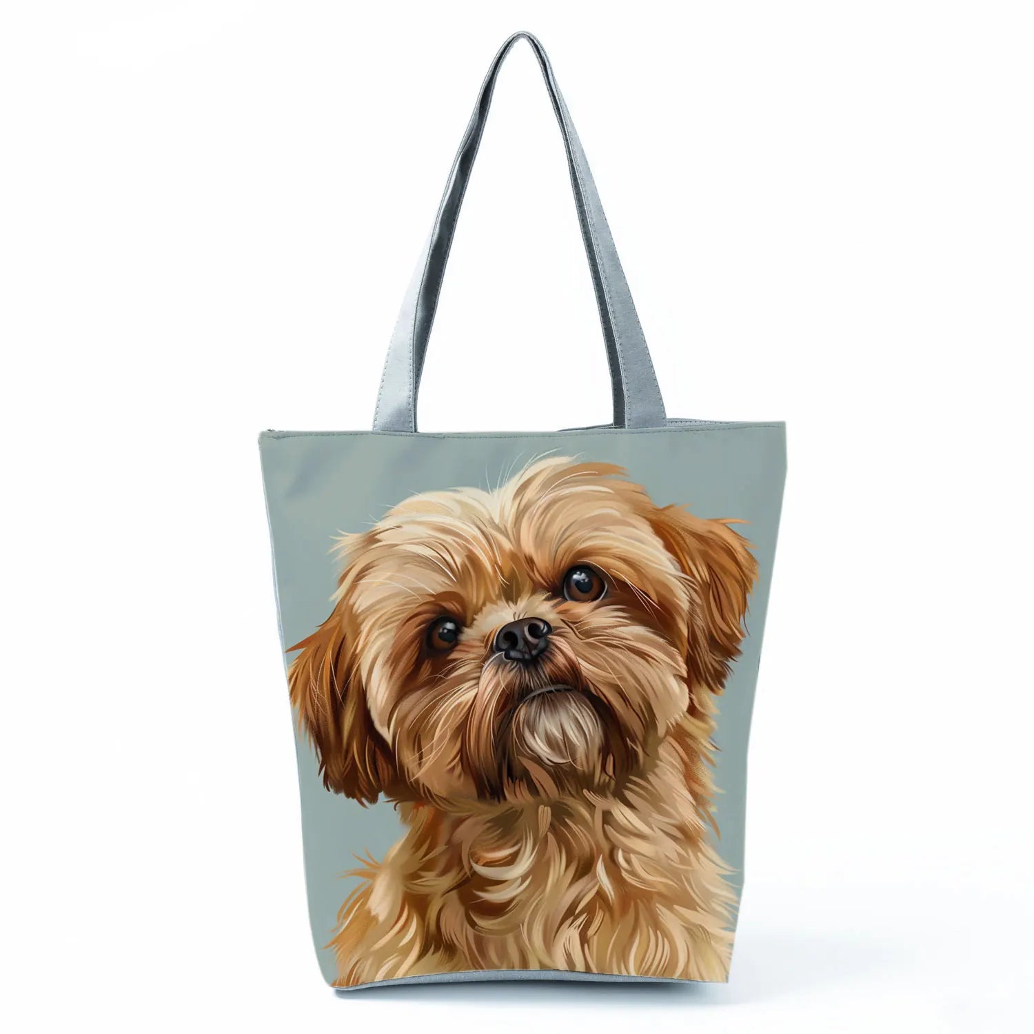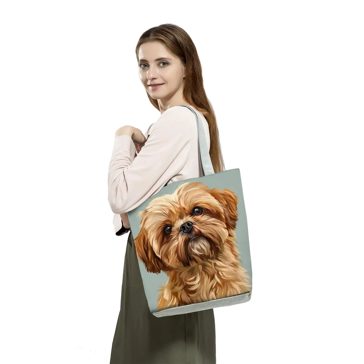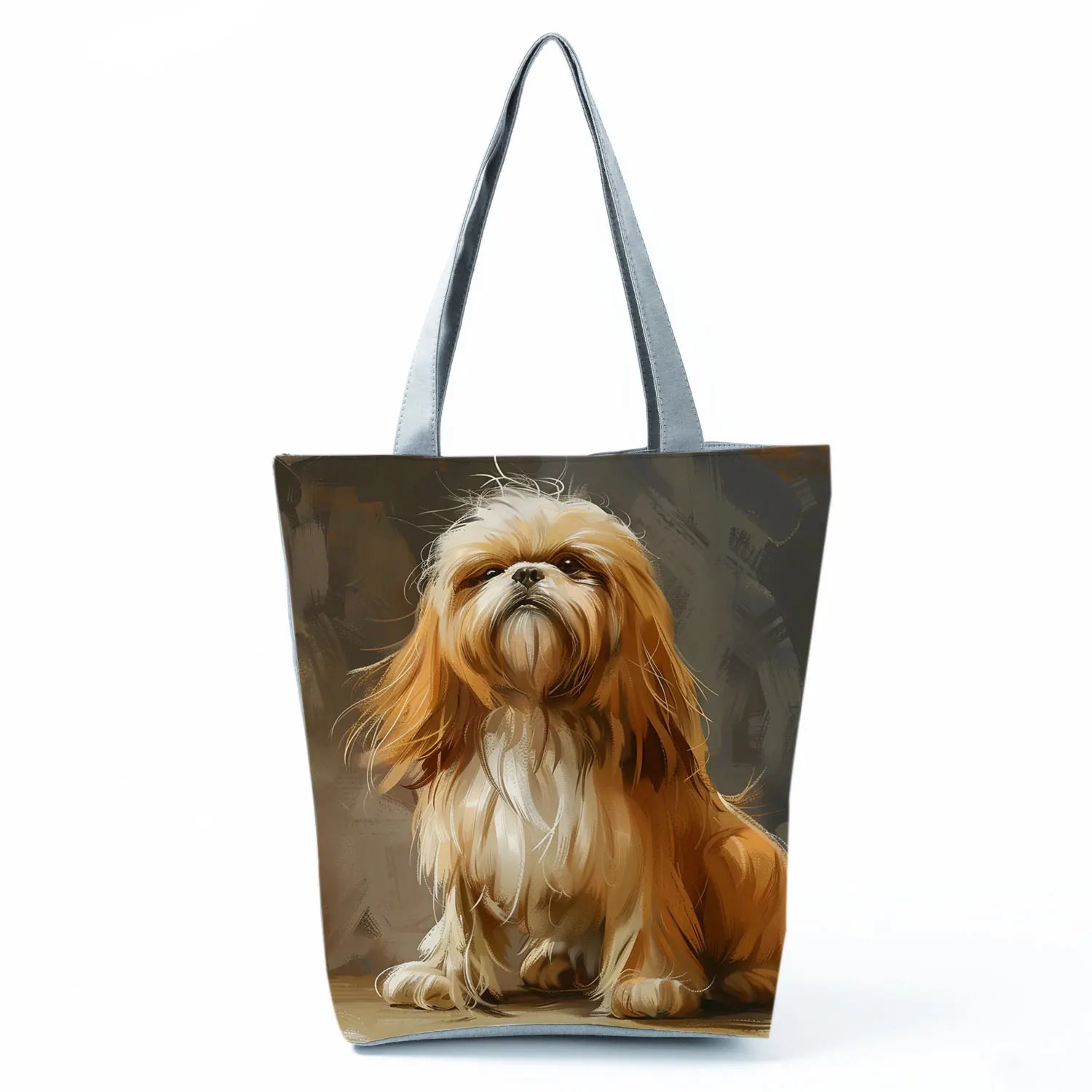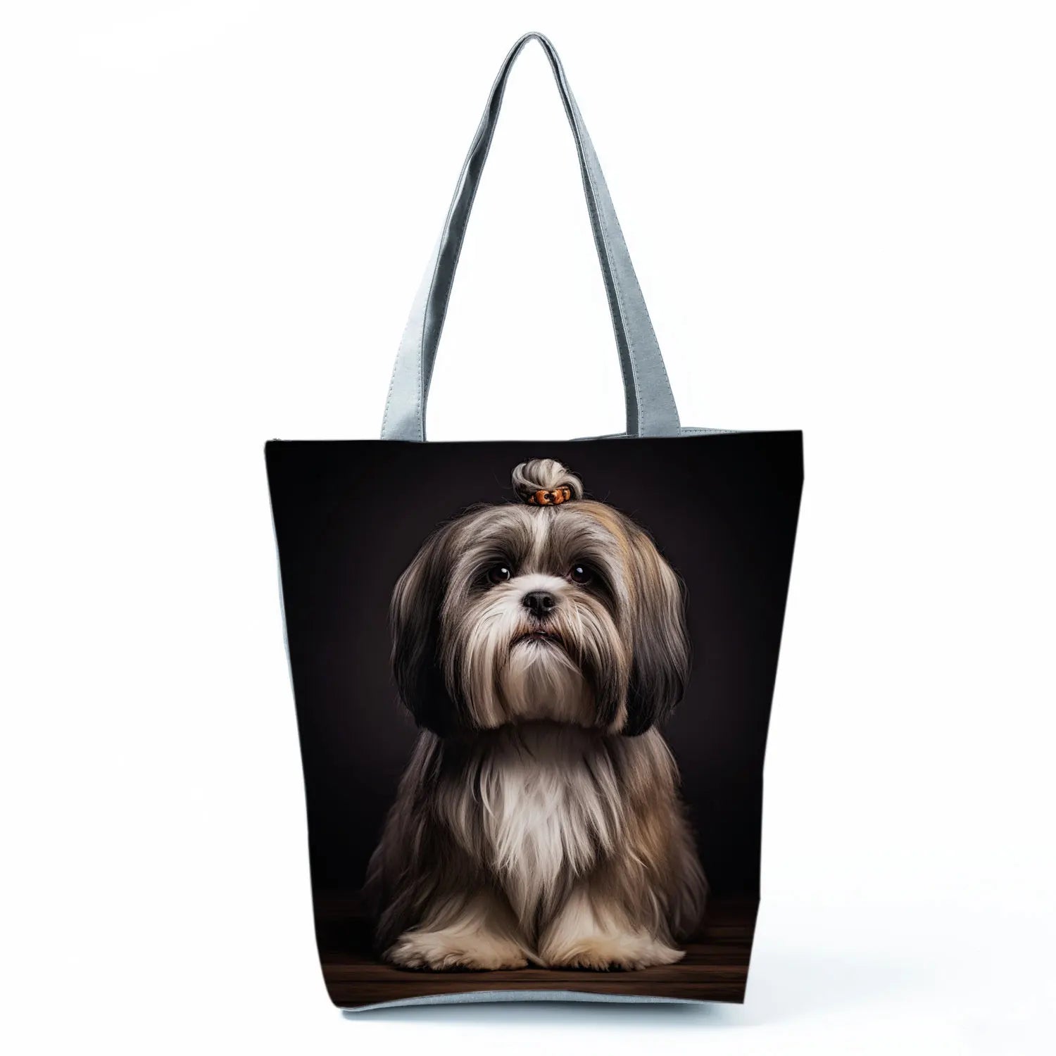 Cute Shih Tzu Print Shopping Bags Groceries Women Handbags Portable Kawaii Animal Dog The Tote Bag Large Capacity Shoulder Bags
