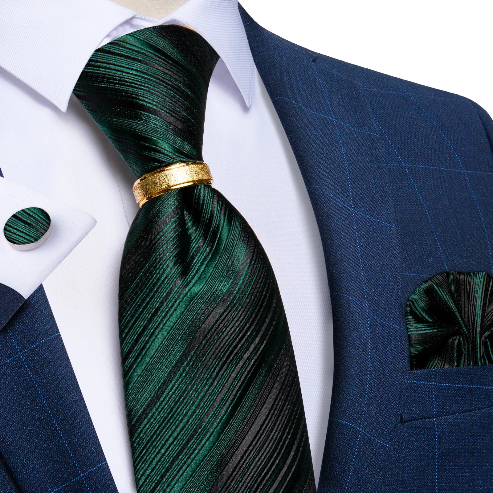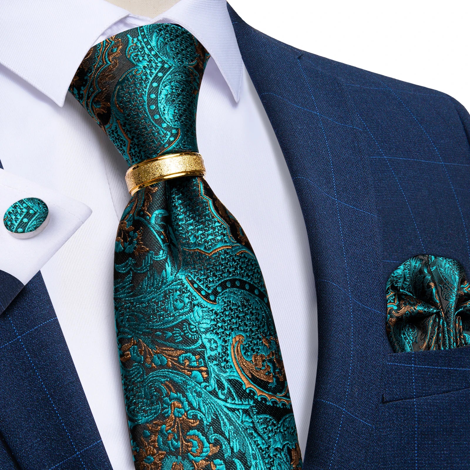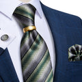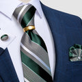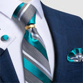 DiBanGu Designer Mens NecktieTeal Green Paisley Striped Wedding Tie For Men Ring Hanky Cufflinks Silk Tie Set Business Party