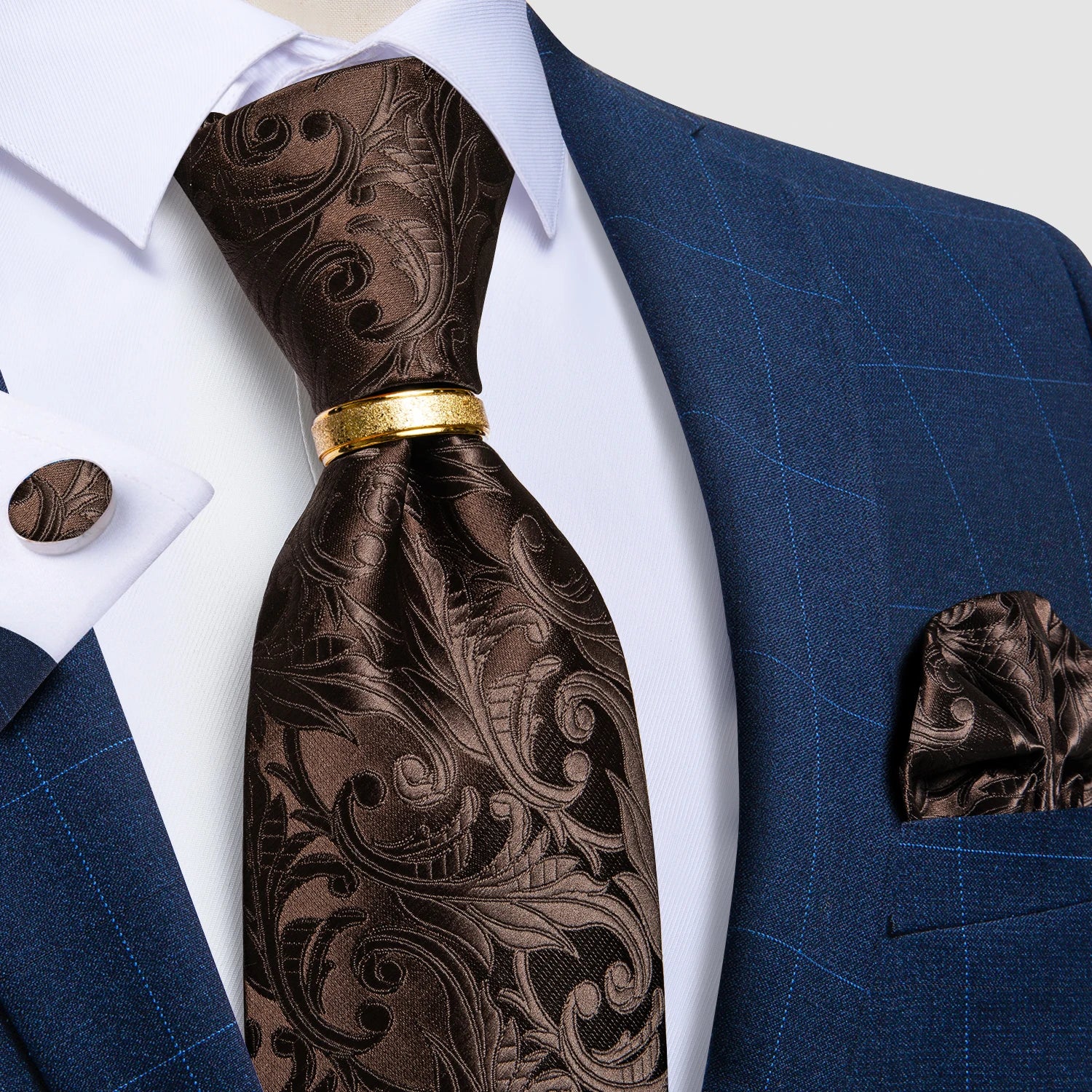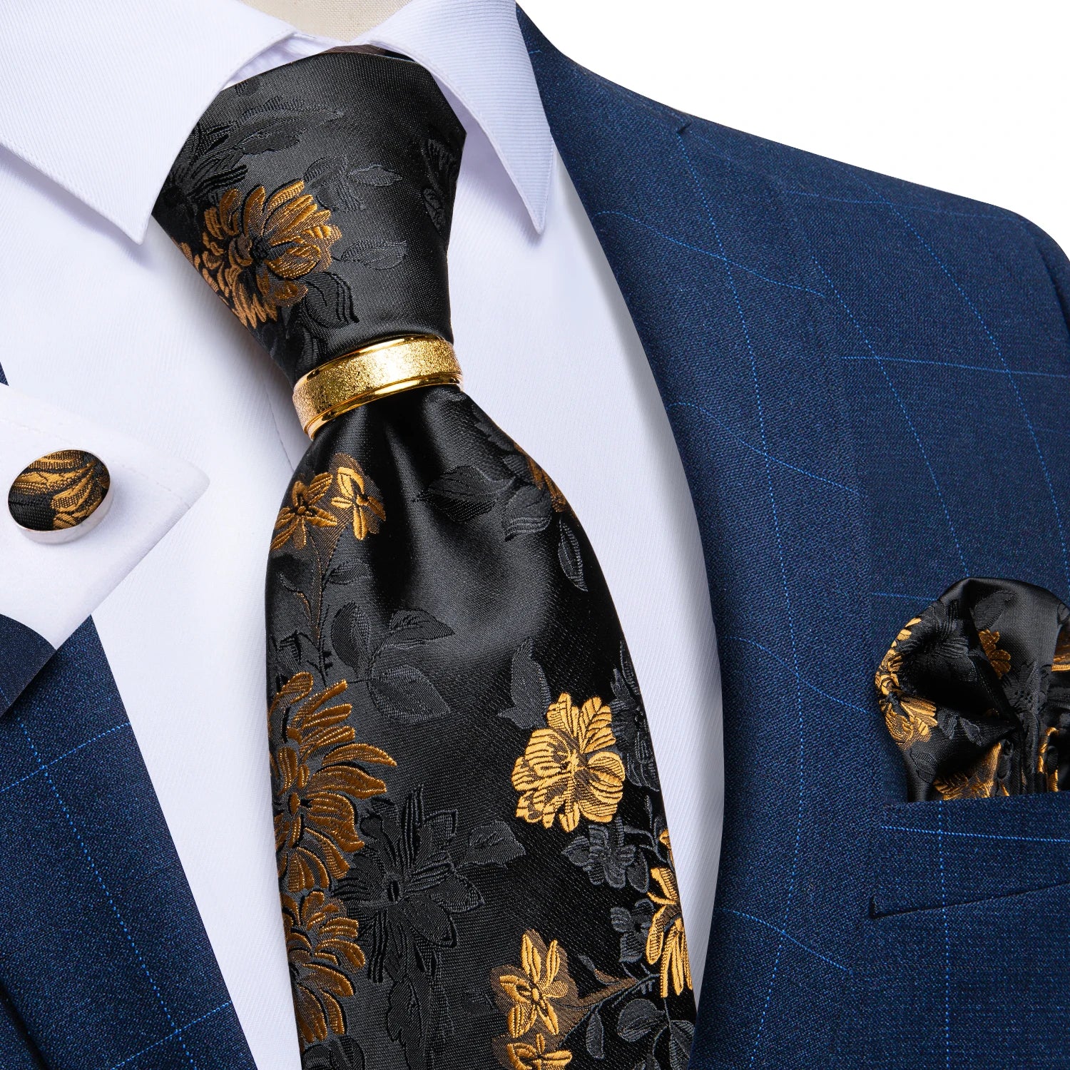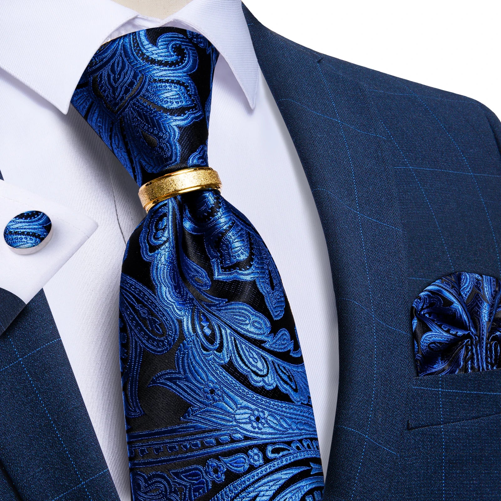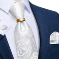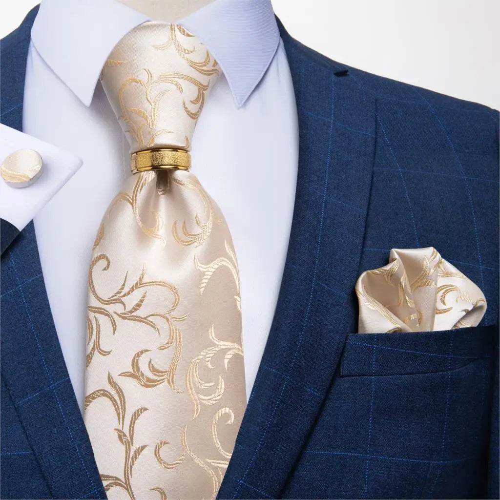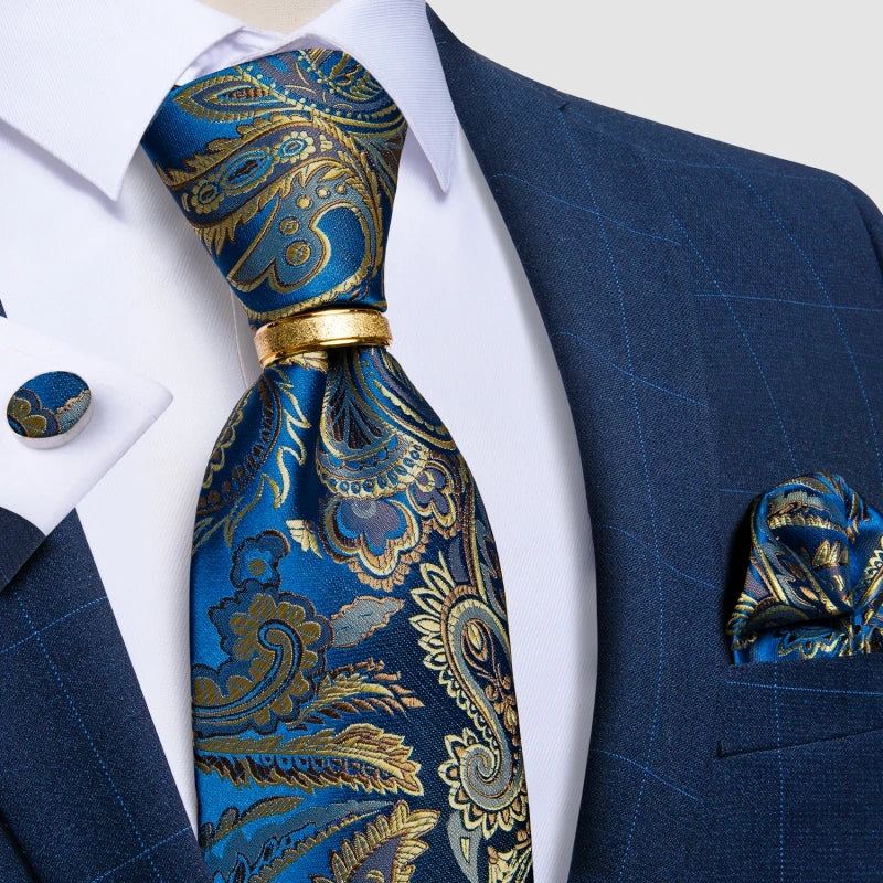 DiBanGu Designer Mens Necktie Striped Floral Paisley Silk Tie Pocket Square Cufflinks Neck Tie Ring Set Suit Wedding Business