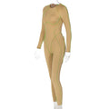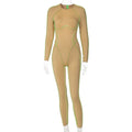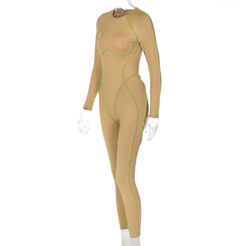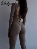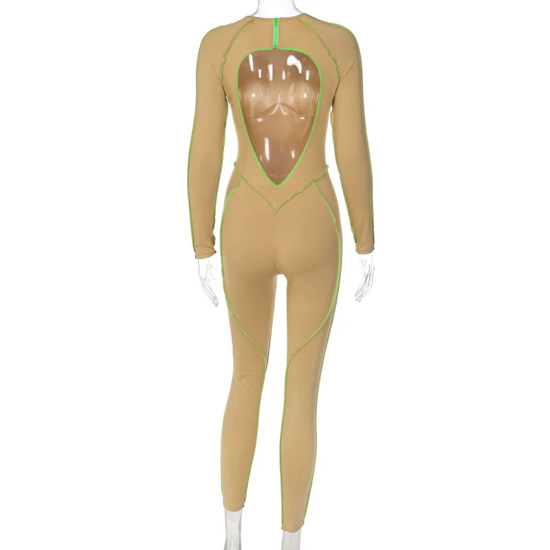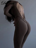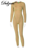 Dulzura Patchwork Women Long Sleeve Hollow Out Jumpsuit Skinny Sexy Streetwear Club Rompers Casual 2021 Autumn Winter Outfit