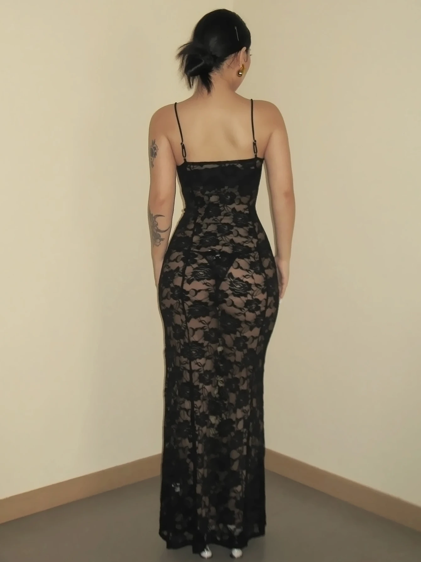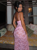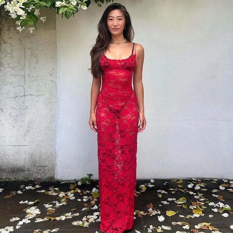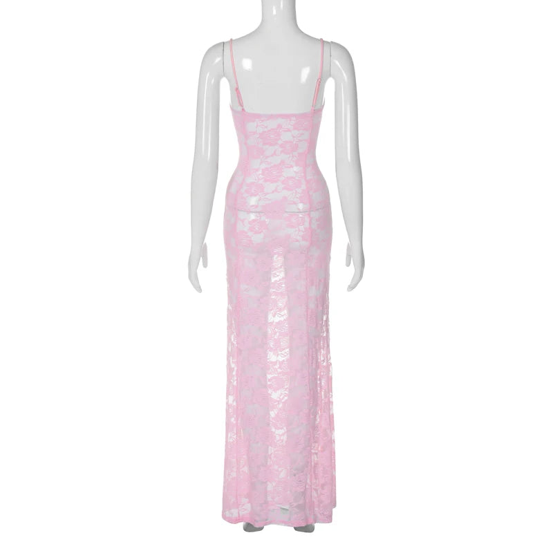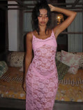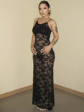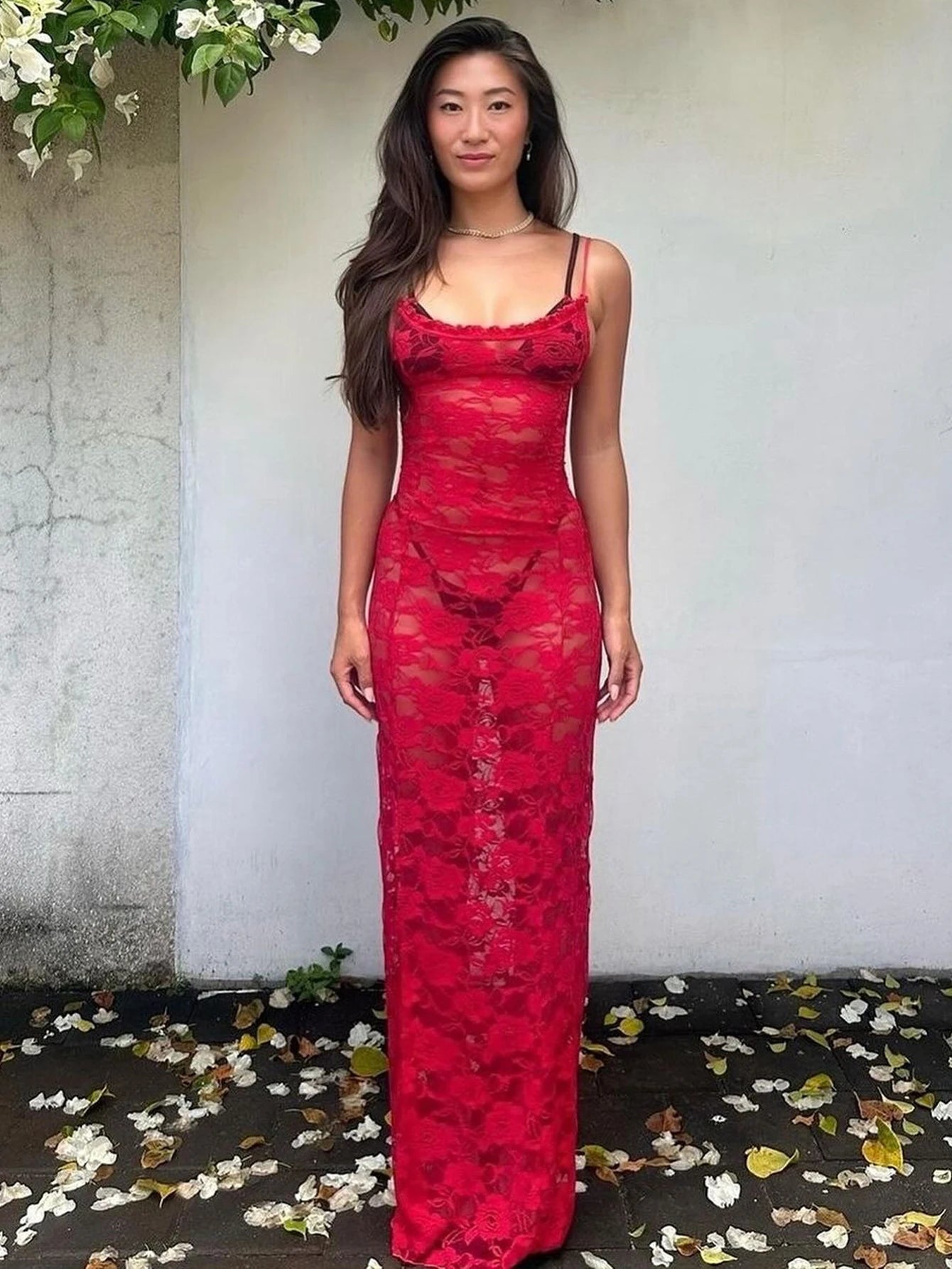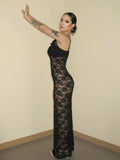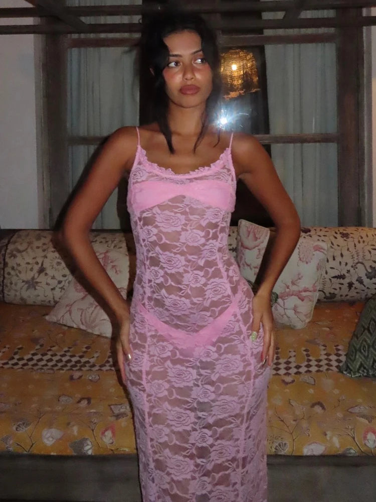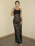 Dulzura See Through Ruffled Patchwork Lace Cami Maxi Dress Sleeveless Sexy Long Dress Party Club Autumn Y2K