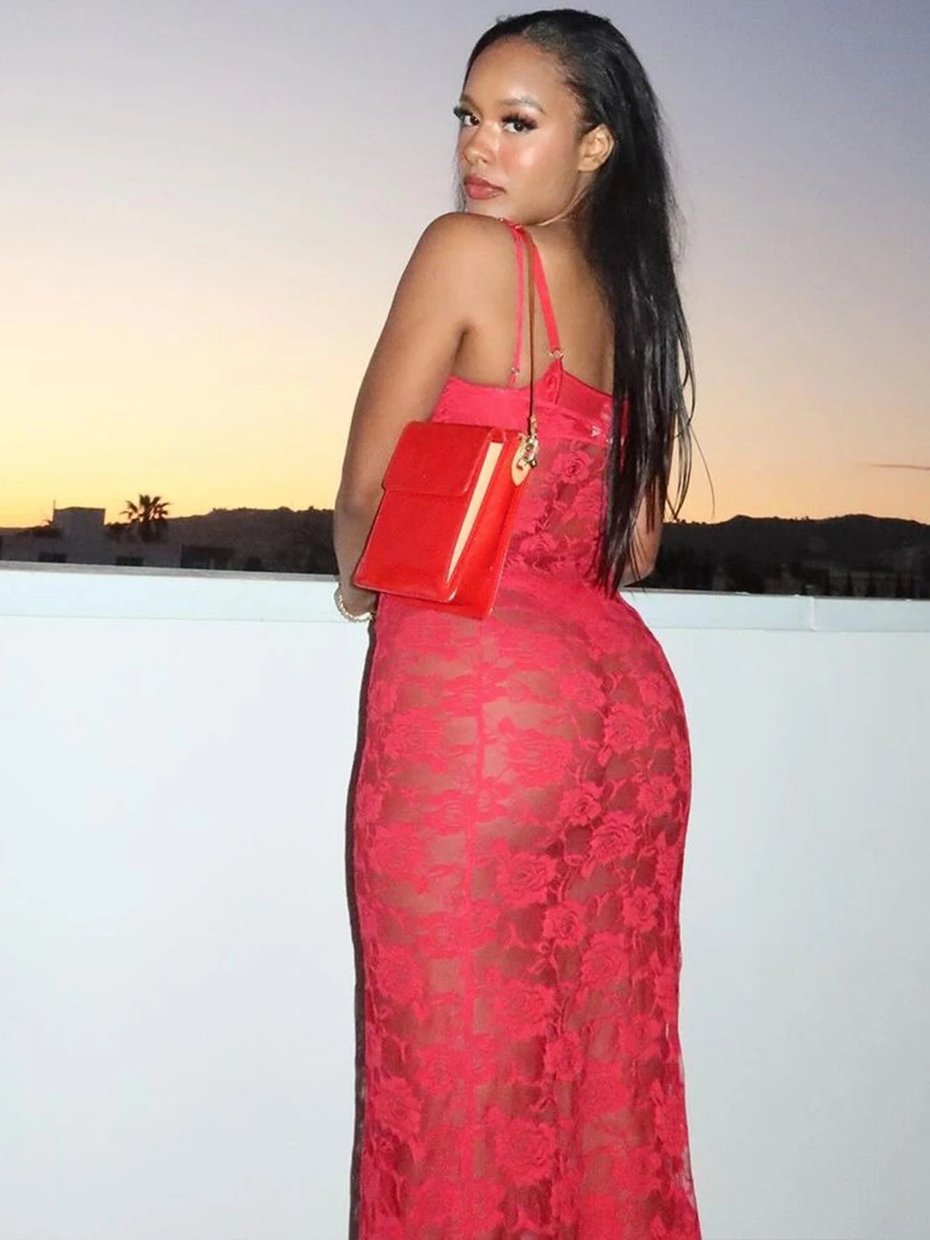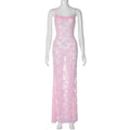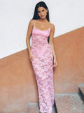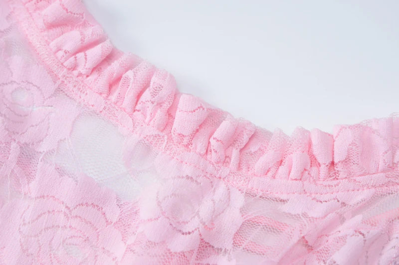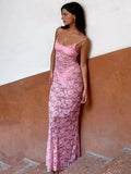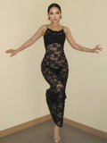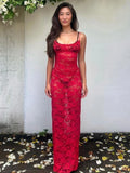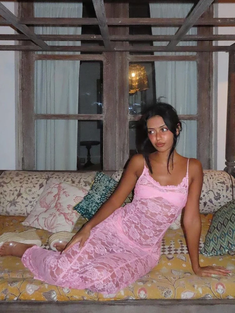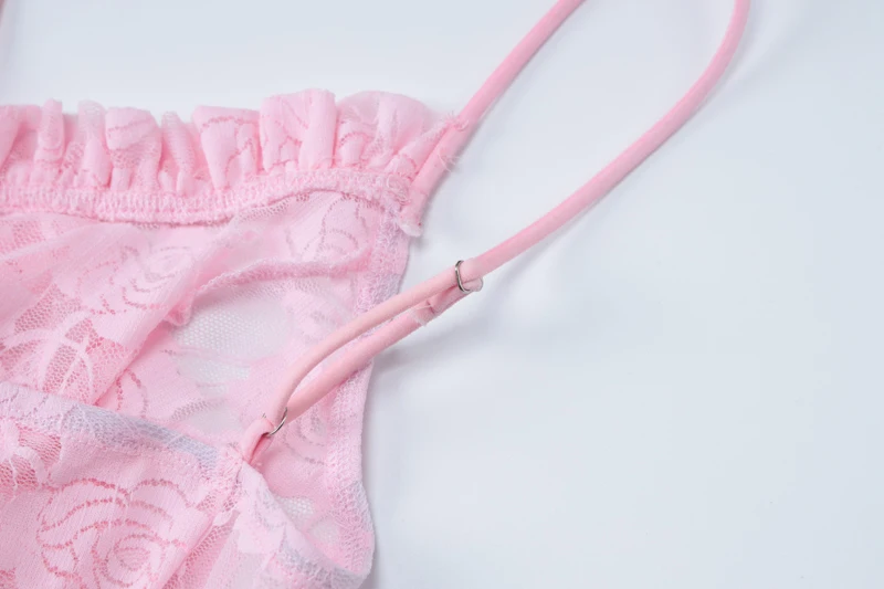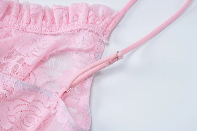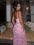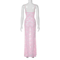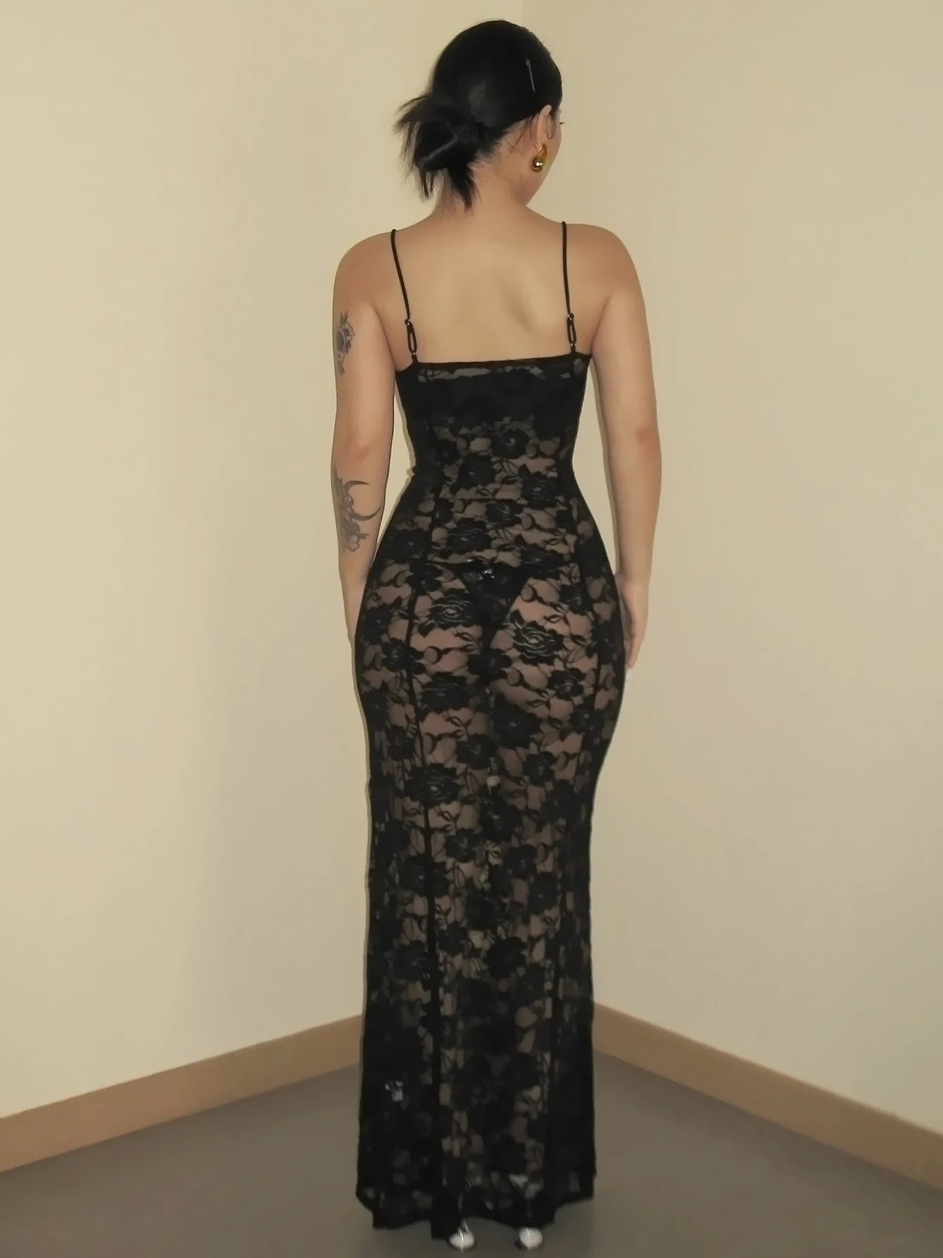 Dulzura See Through Ruffled Patchwork Lace Cami Maxi Dress Sleeveless Sexy Long Dress Party Club Autumn Y2K