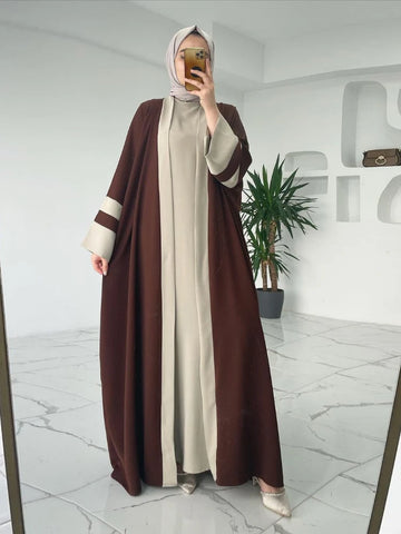 Eid Muslim Dress & Abayas for Women 2 Piece Set Musulman Ensembles Morocco Ramadan Caftan Abaya Kaftan Dubai Arab Long Robe 2024