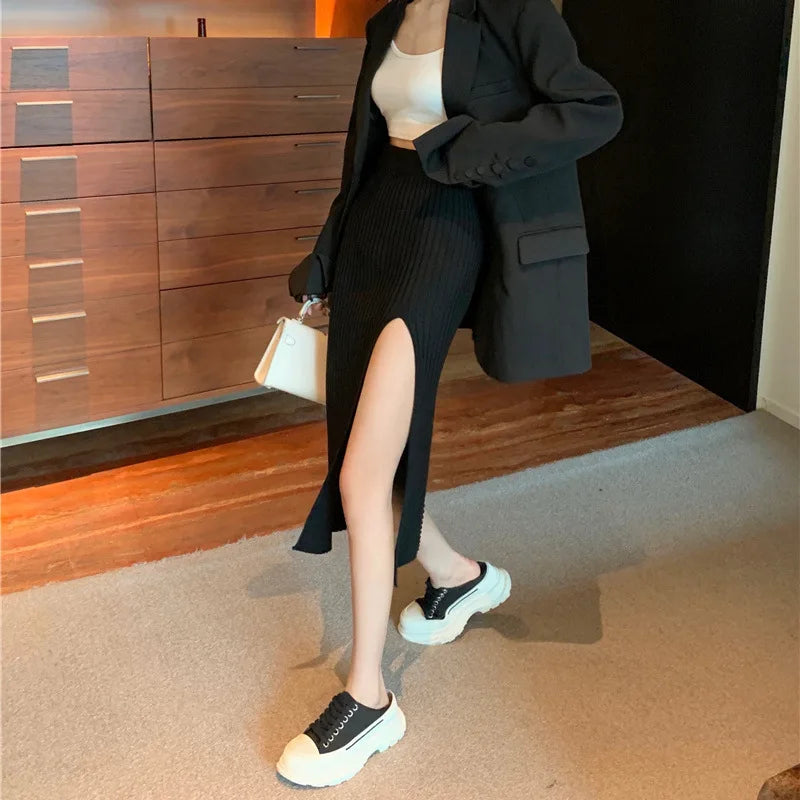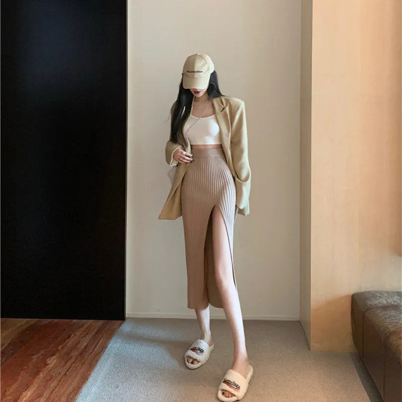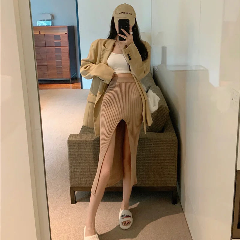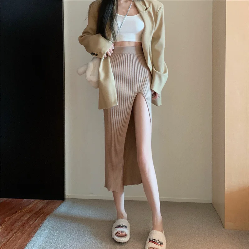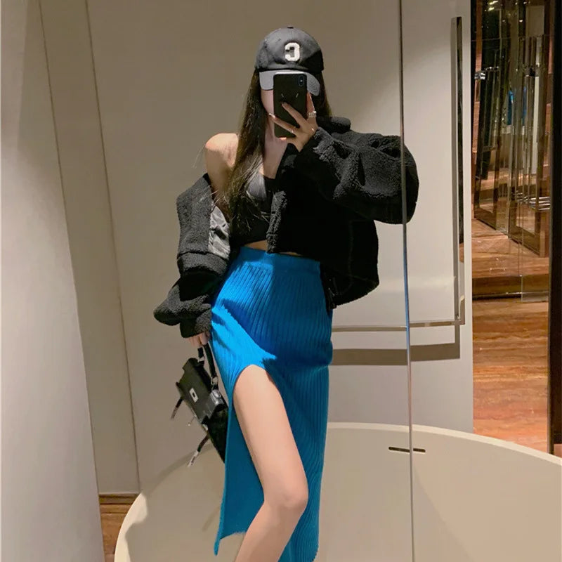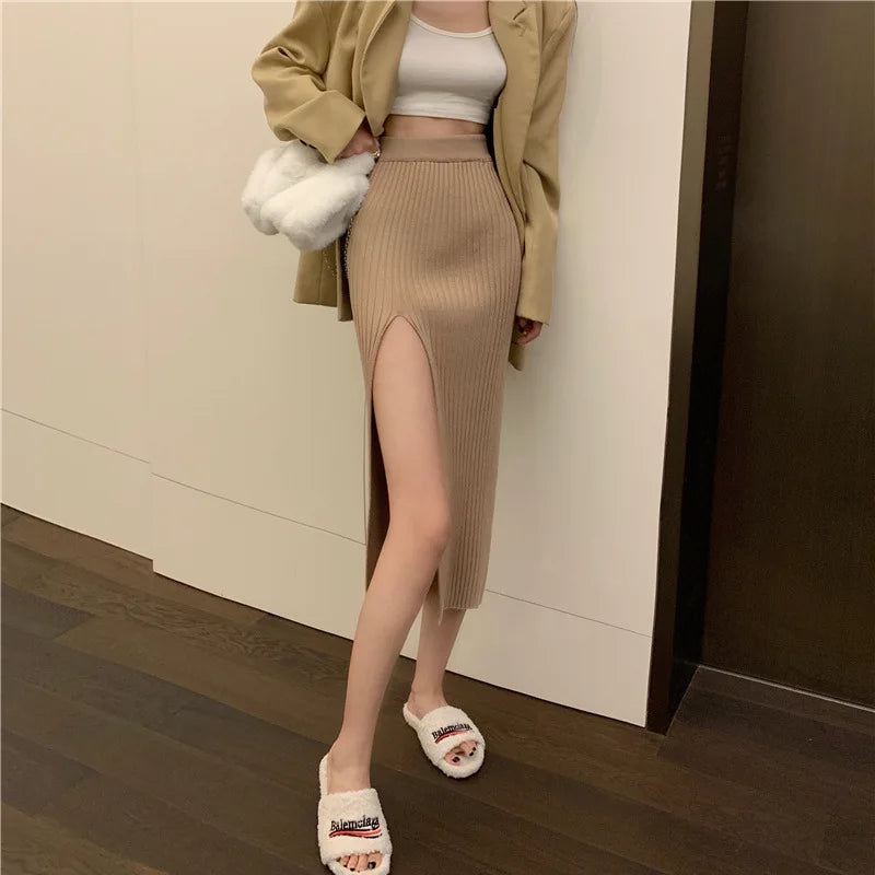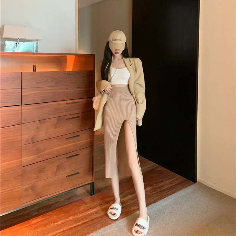Elegant Elegant Sexy Stit Skirt Women's Slim Fit Slimming Hot Girl Knitted Dress Pure High Waist Temperament Skirt
