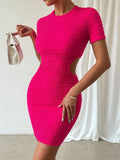 European and American women's fashionable and elegant waist revealing hollow slim fitting dress