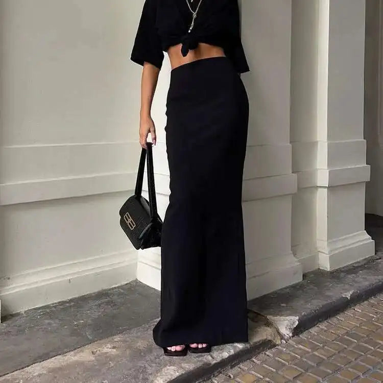 Fashion Black Long Straight Skirts For Women High Waist Slim Seamless Elegant Ladies Gown Casual Summer Female Maxi Skirts