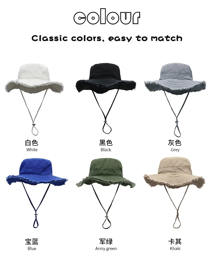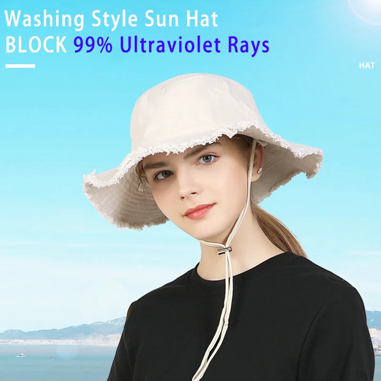 Fashion Bucket Hat Leisure Protection Sun UPF50+ Beach Hat Cap Washed Edging Men's Panama Hat Sunscreen Cap 2025