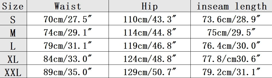 Size: XXL, Waist: 89cm/35.0", Hip: 129cm/50.7", Inside Pants Length: 79.2cm/31.1" (approx.)
