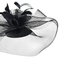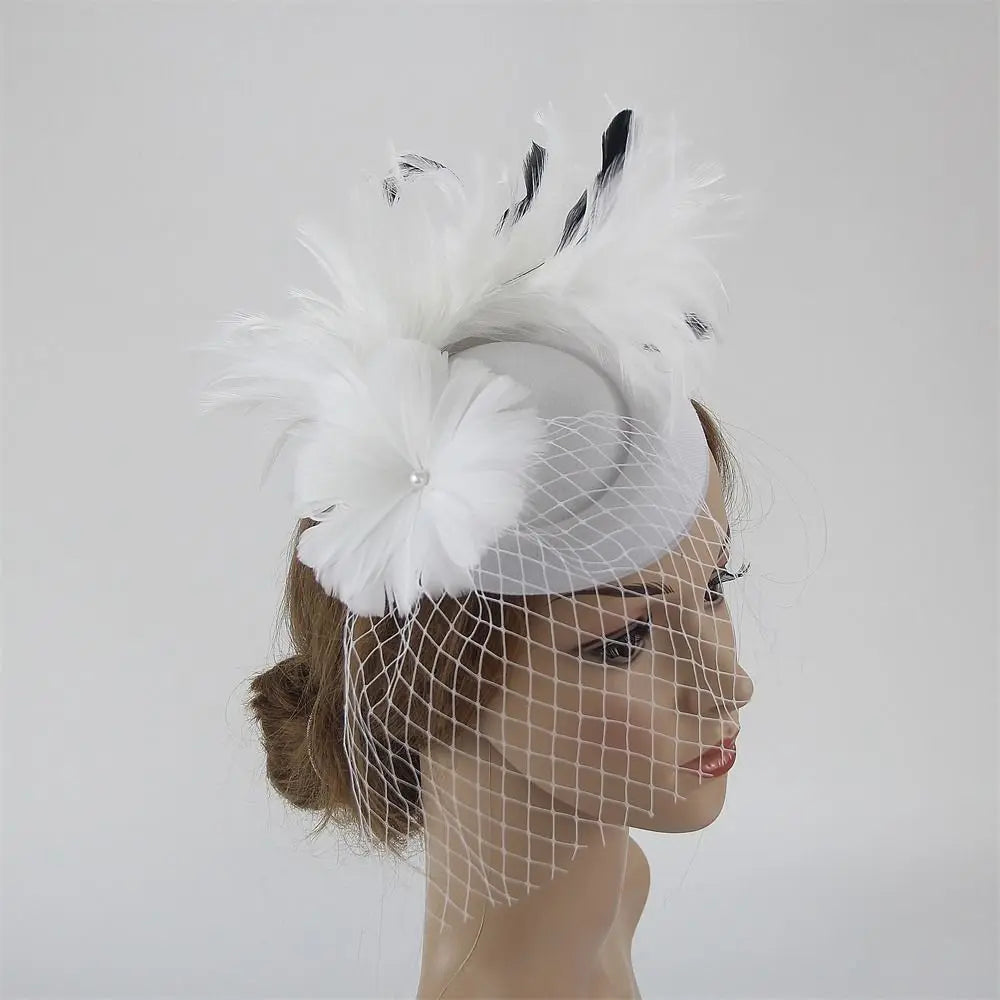 Attractive headband flower cocktail tea party headwear mini box hat decorated with beautiful and elegant feathers.