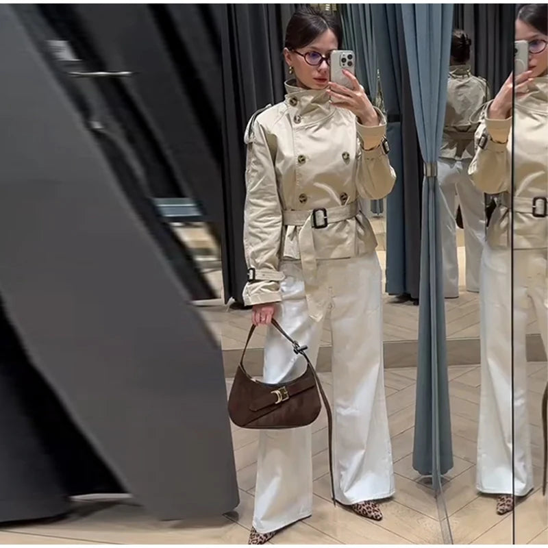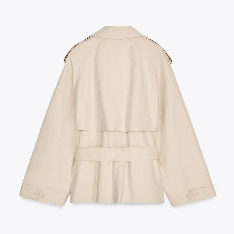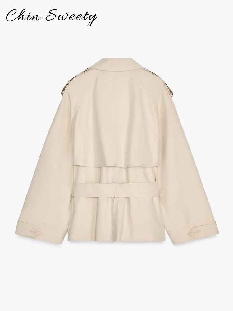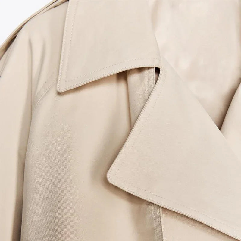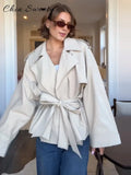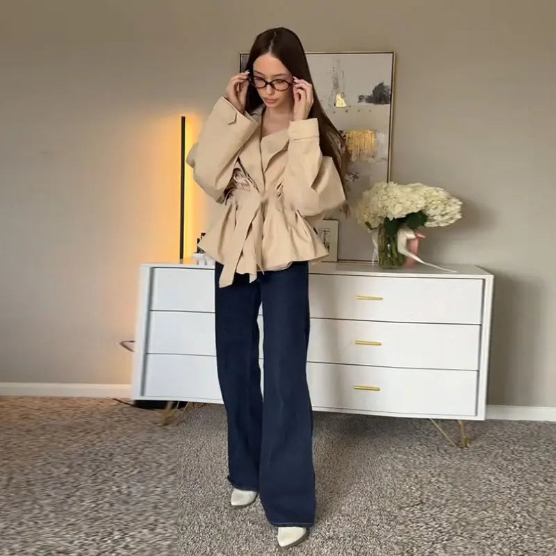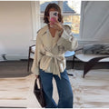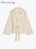 Fashion Lace Up Ruched Trench Coat Women Solid Loose Lapel Full Sleeve Jackets Female 2025 Spring Summer Lady Commute Coats New