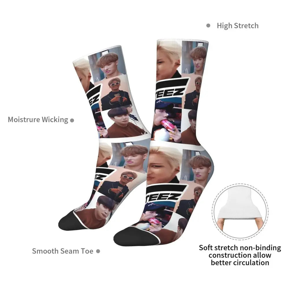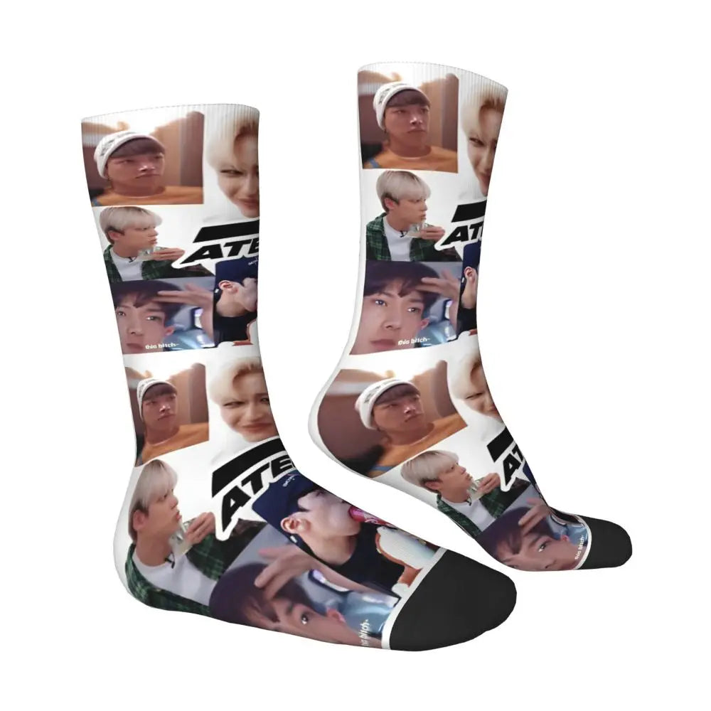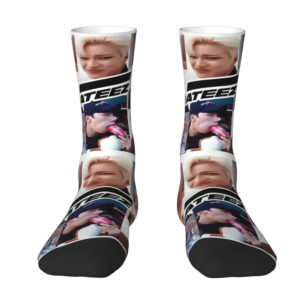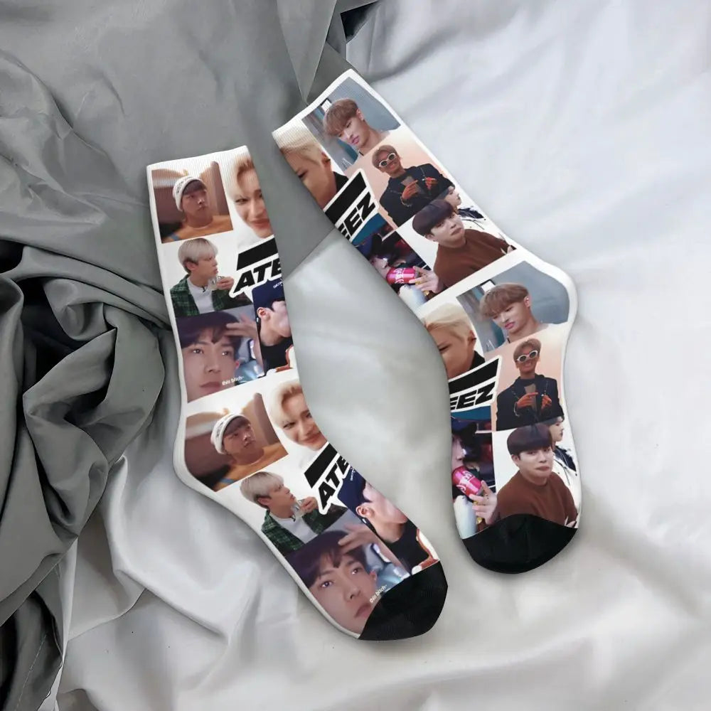 Fashion Men's Socks Crazy Ateezed Funny Memes Sock Kpop Idol High Quality Women's Socks Spring Summer Autumn Winter