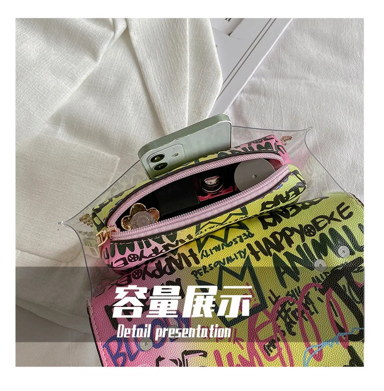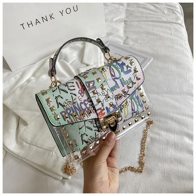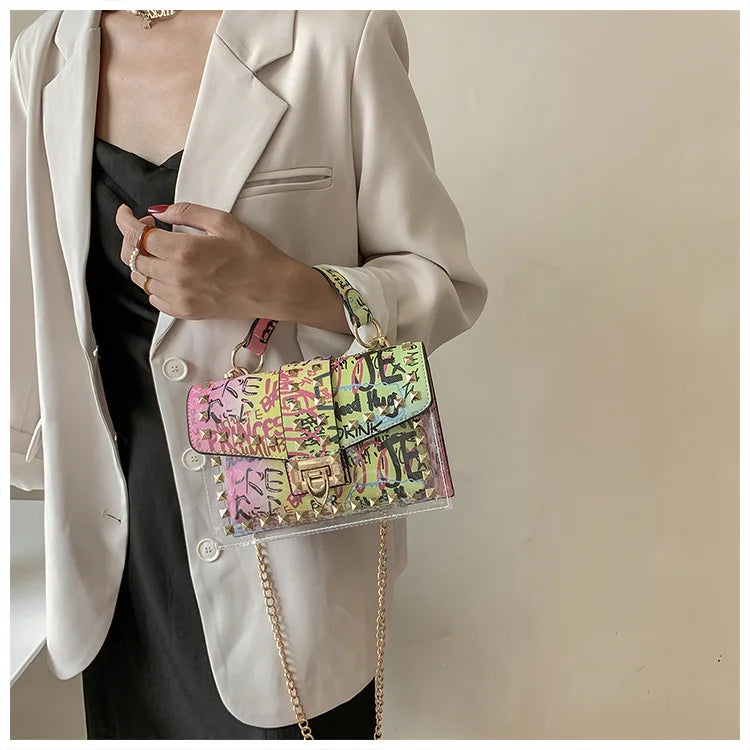 Fashion Shoulder Bag for Ladies High Quality Women Studded Graffiti Crossbody Bags Female Luxury Designer Summer Handbags