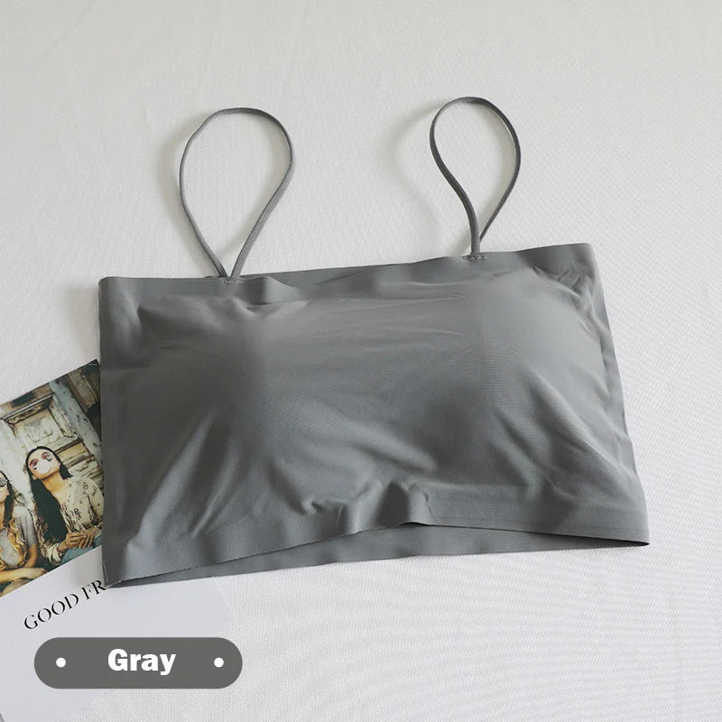 Fashion Summer Sexy Bras for Women Push Up Lingerie Ice Silk Seamless Word Sling Female Tube Top Women White Bralette Top Tanks