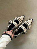 French Style Pointed Toe Mary Jane Shoes Retro Medium Thick Heel Shoes for Women with Skirts and Small Leather Shoes