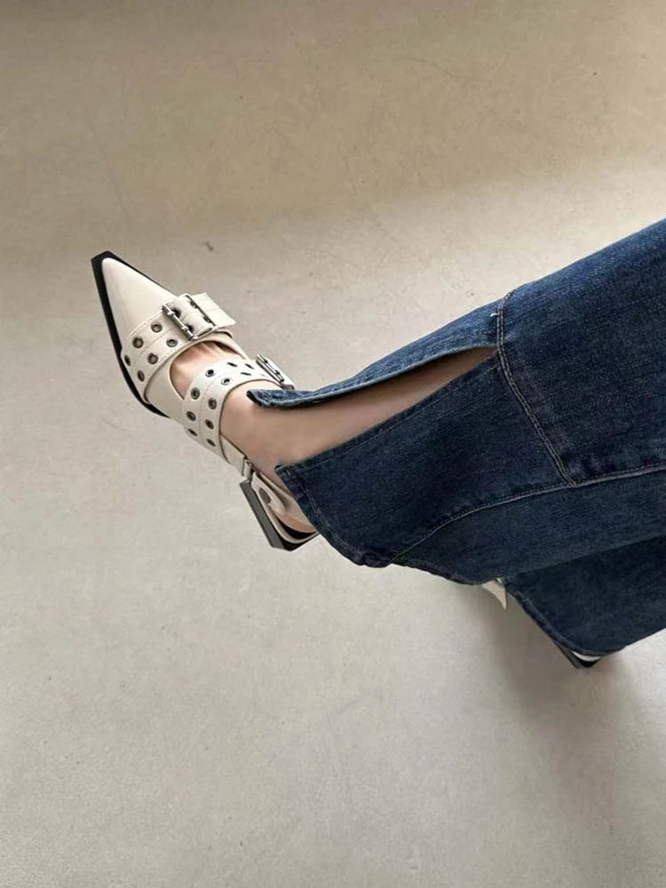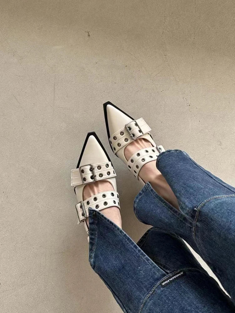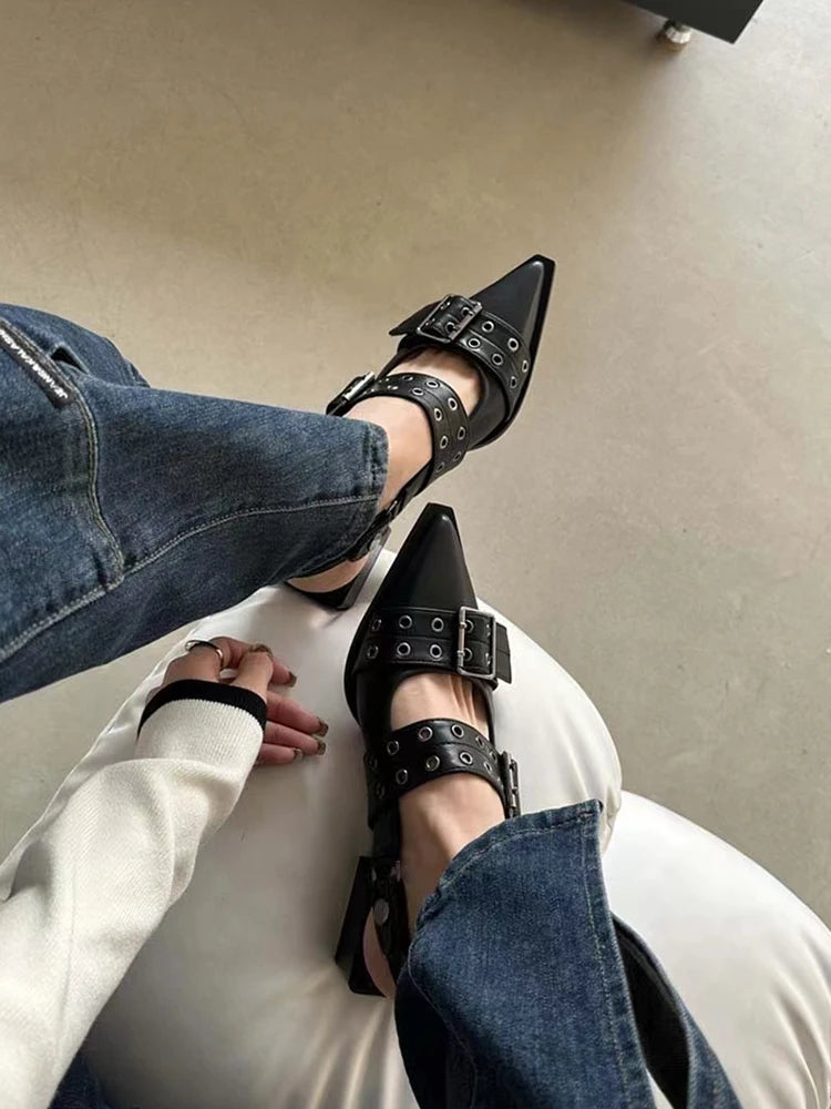 French style pointed toe Mary Jane shoes retro medium thick heel shoes for women with skirts and small leather shoes