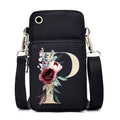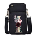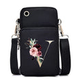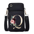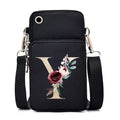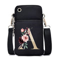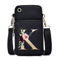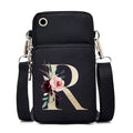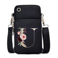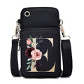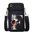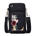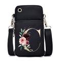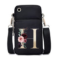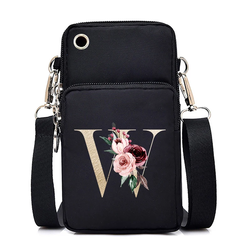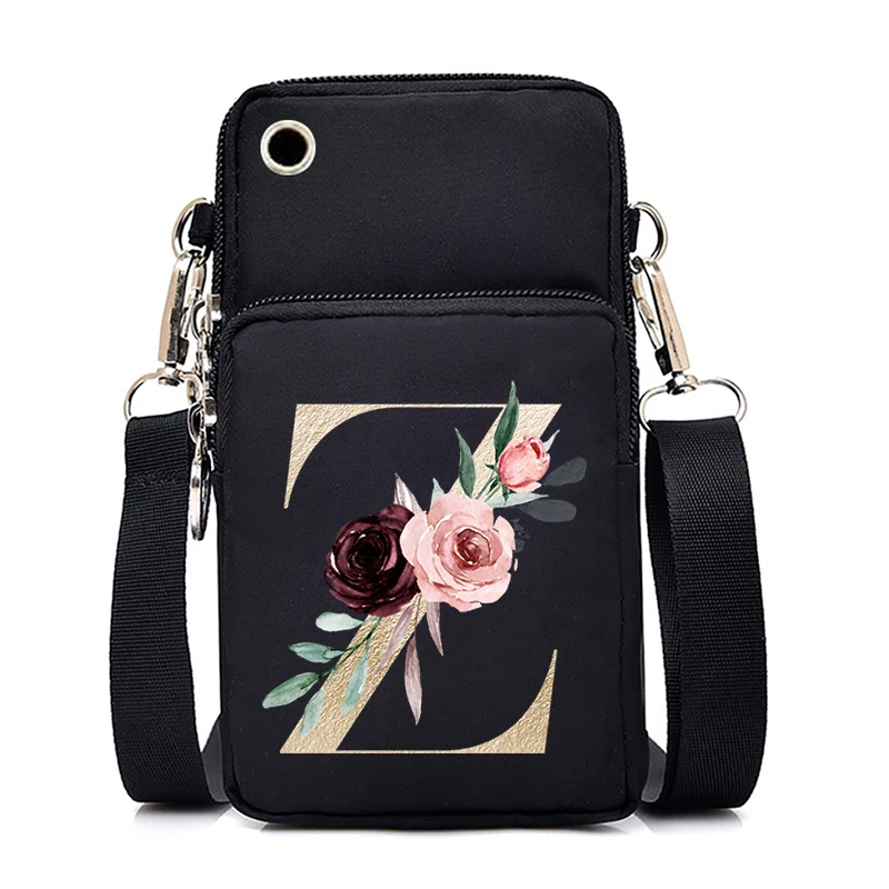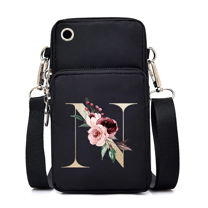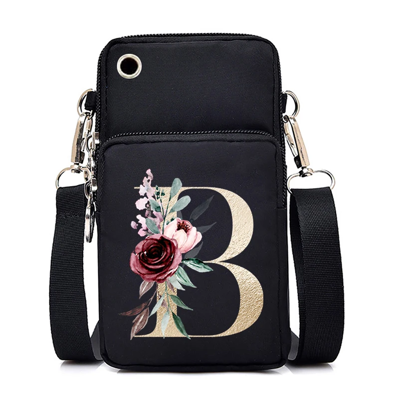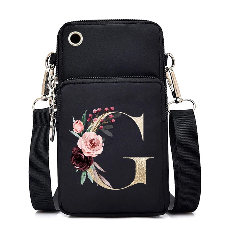 Gold Color Letters A B C D Mini Mobile Phone Bag Pink Flower Alphabet Vertical Handbag 26 Initials Flower Woman Purse Handbags
