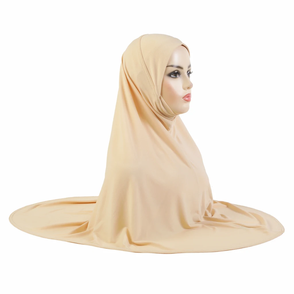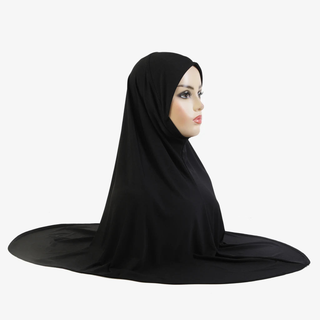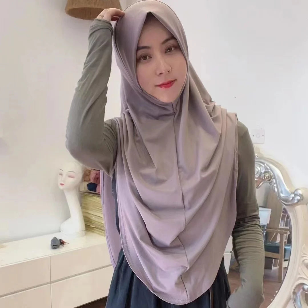 H305 Plain XL size muslim hijab with chin part top quality extra size amira pull on islamic scarf hot sell headscarf