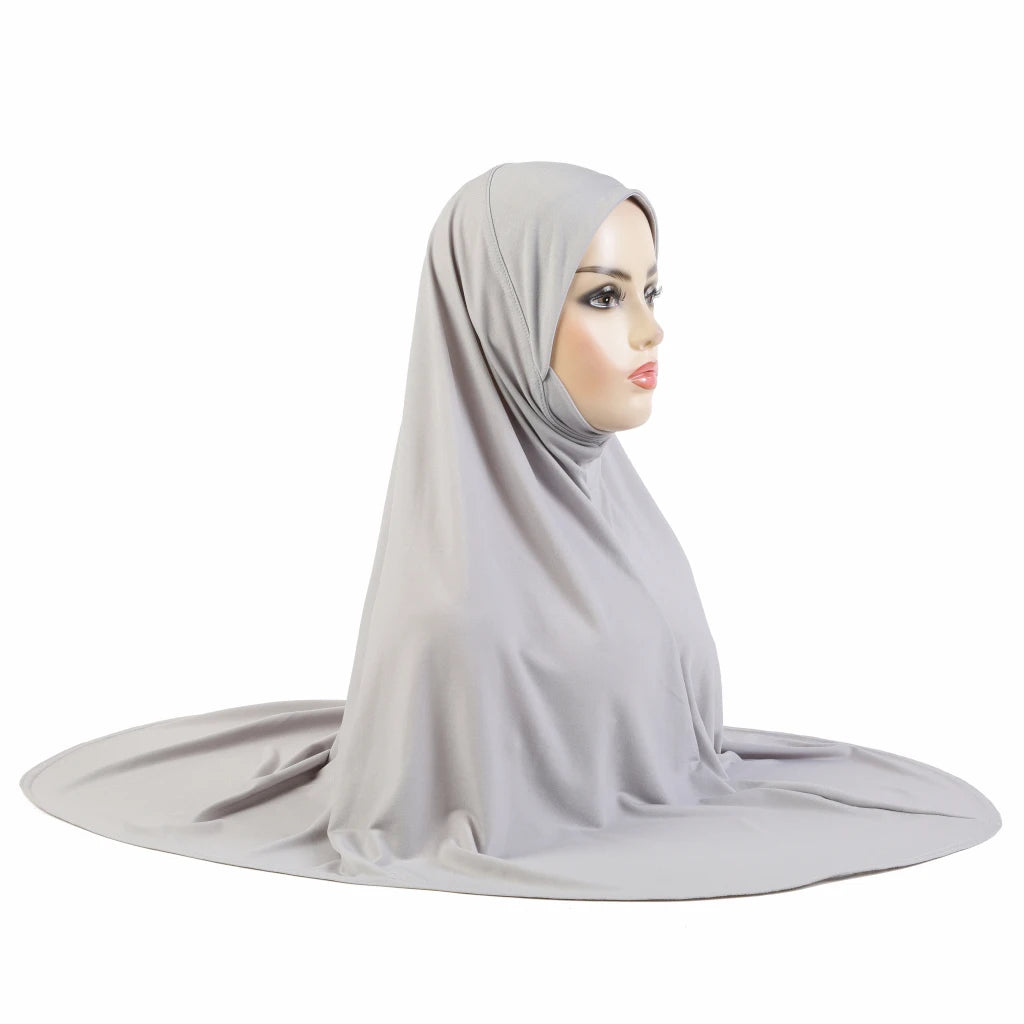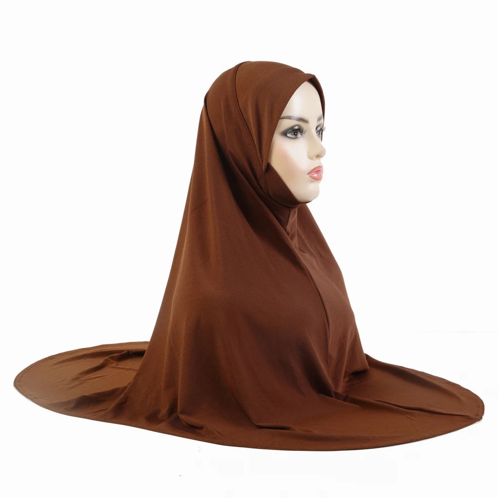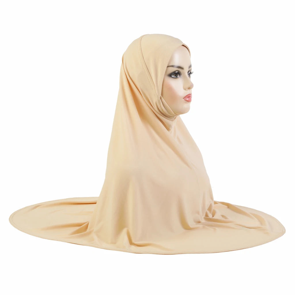 H305 Plain XL size muslim hijab with chin part top quality extra size amira pull on islamic scarf hot sell headscarf