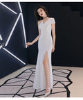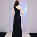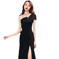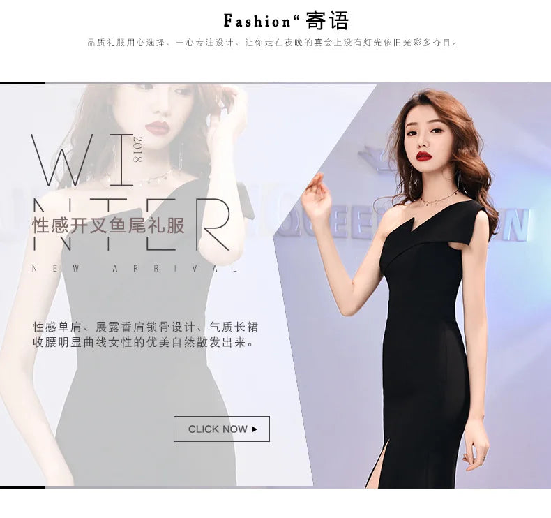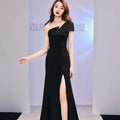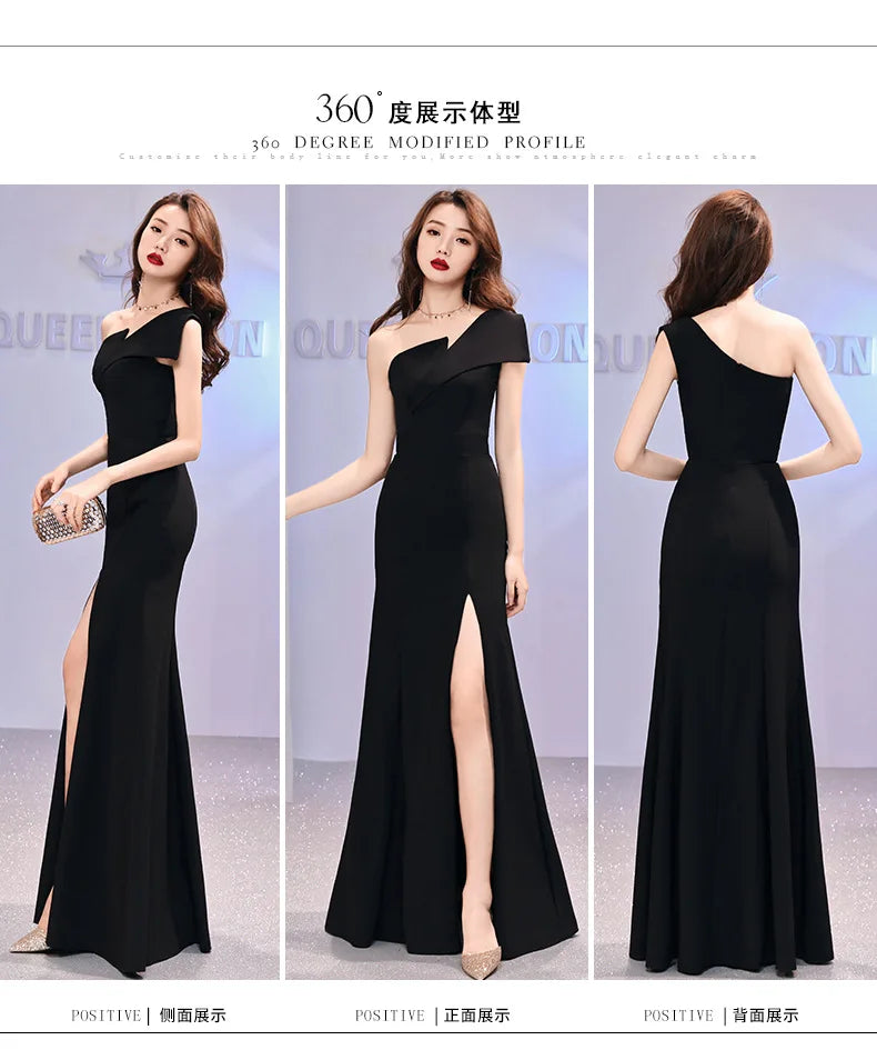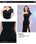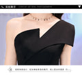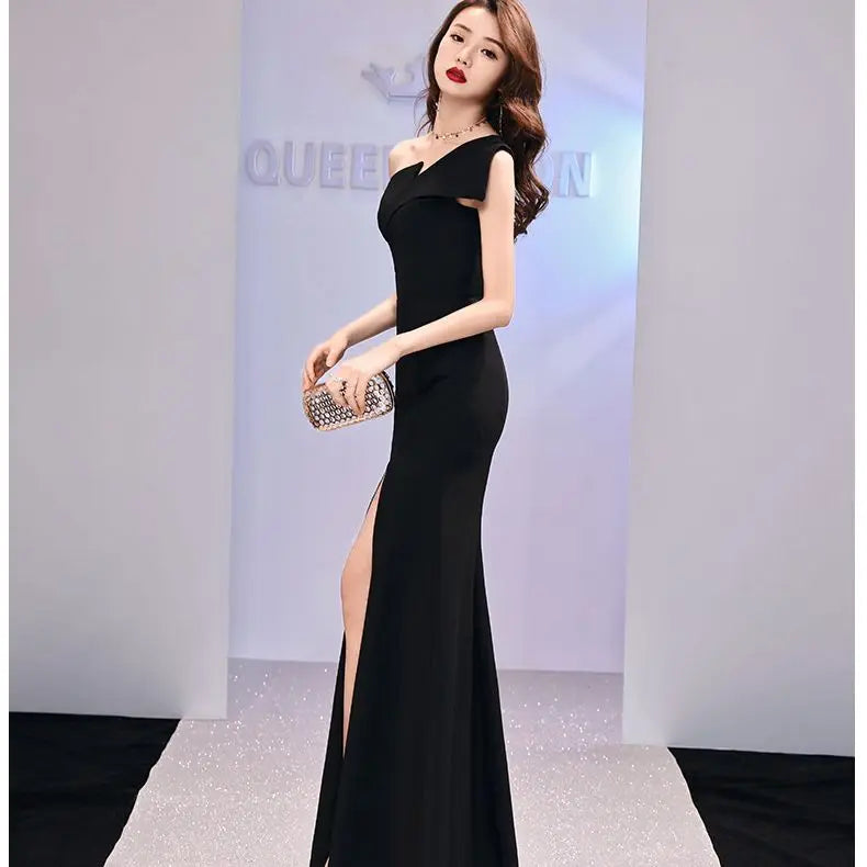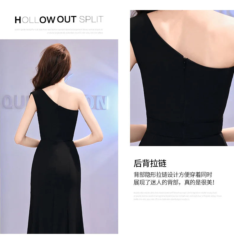 Host evening dress, light luxury, niche one shoulder black long dress, fishtail, one shoulder dress, female
