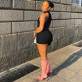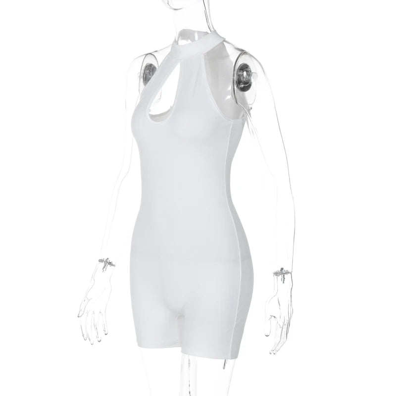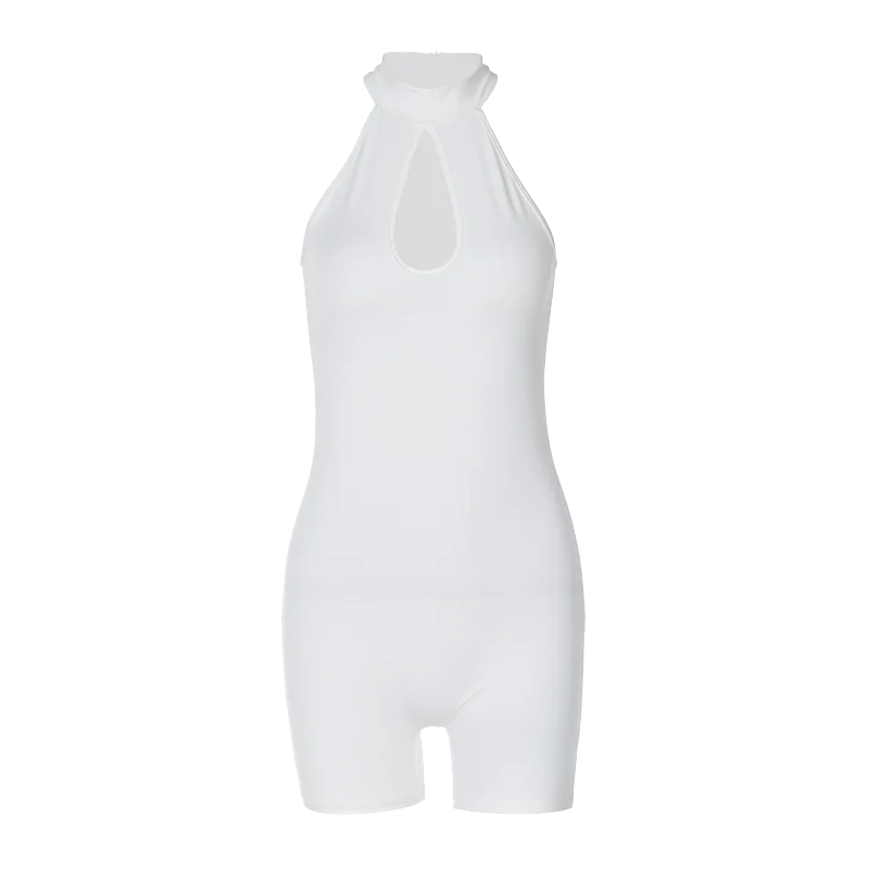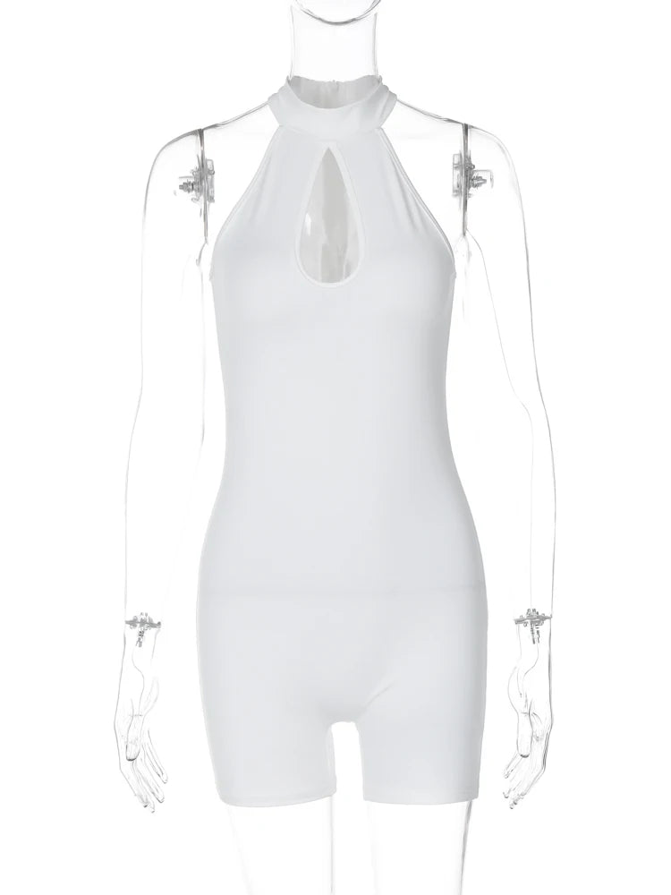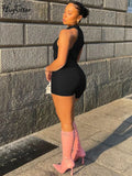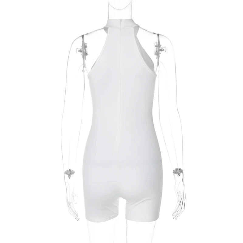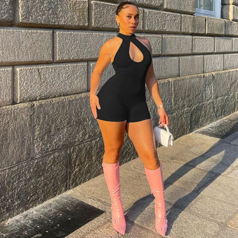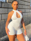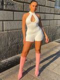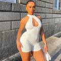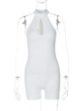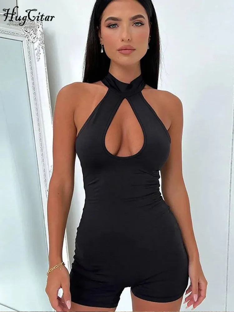 Hugcitar 2024 Spring Halter Solid Hollow Out Zipper Sexy Bodycon One Piece Playsuit Women Fashion Streetwear Work Out Rompers