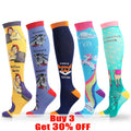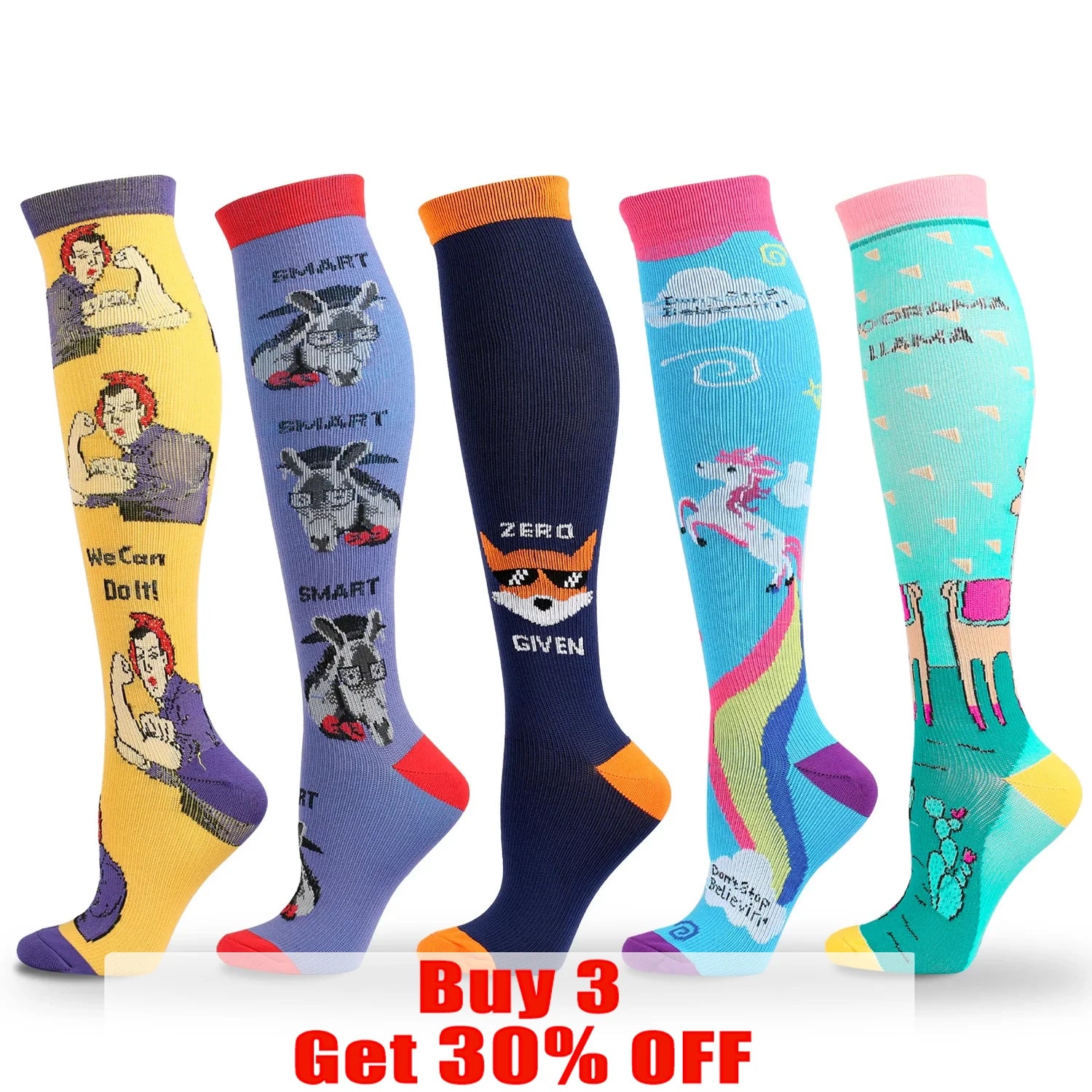 HYSAIXIA Newest Compression Socks Men Women Running Travel Stockings Leg Pressure Cartoon Horse Letter Running Flight Travel