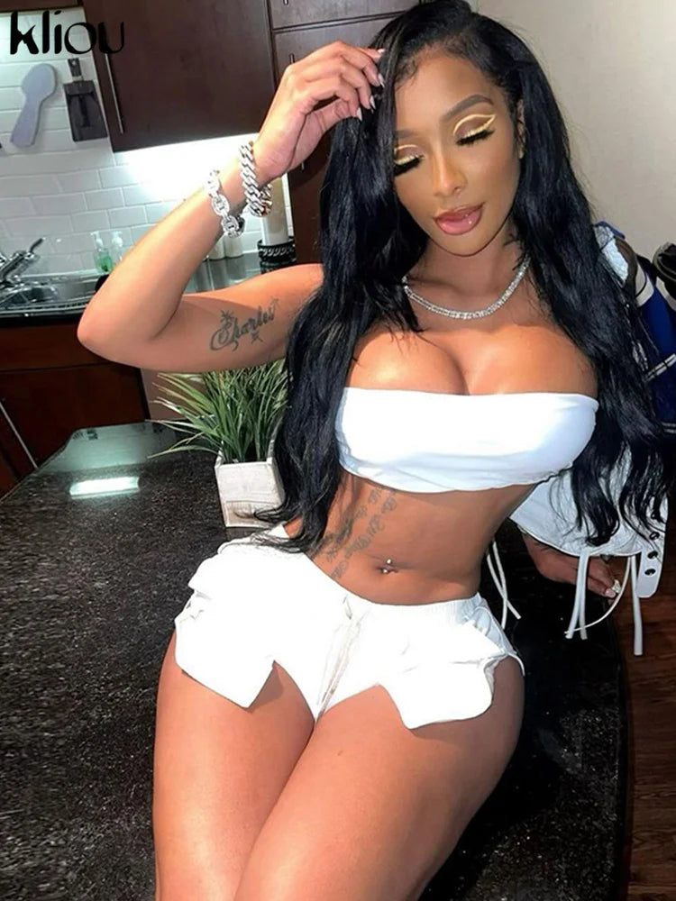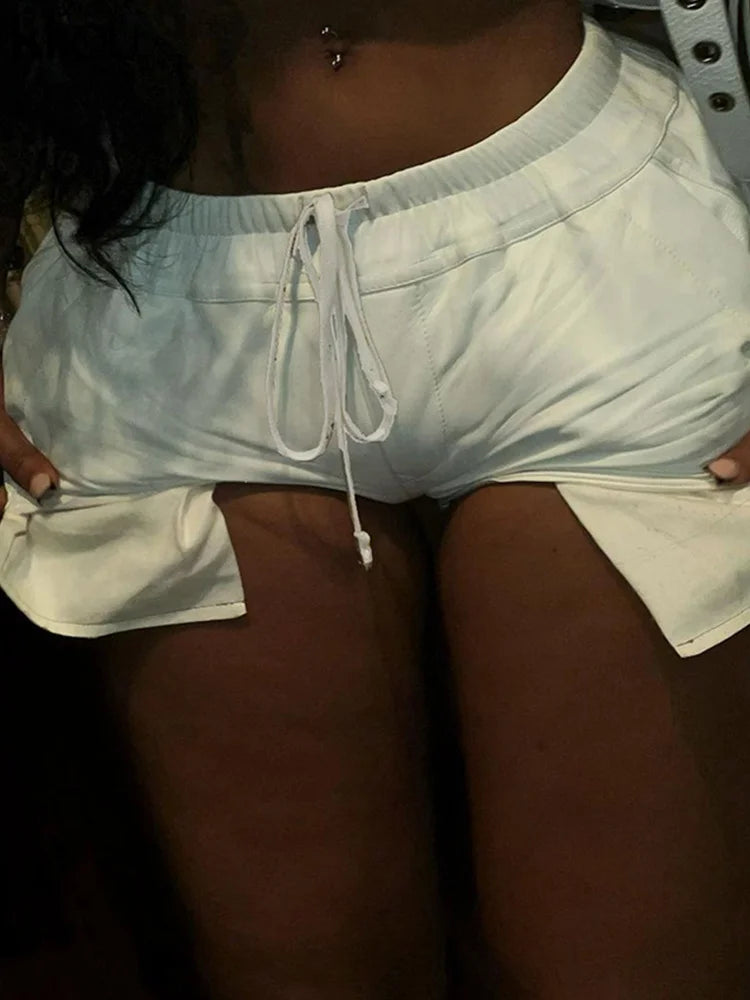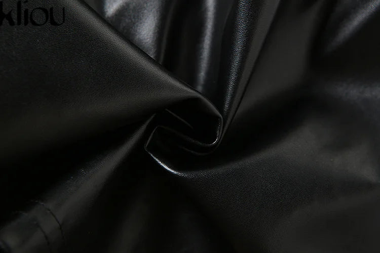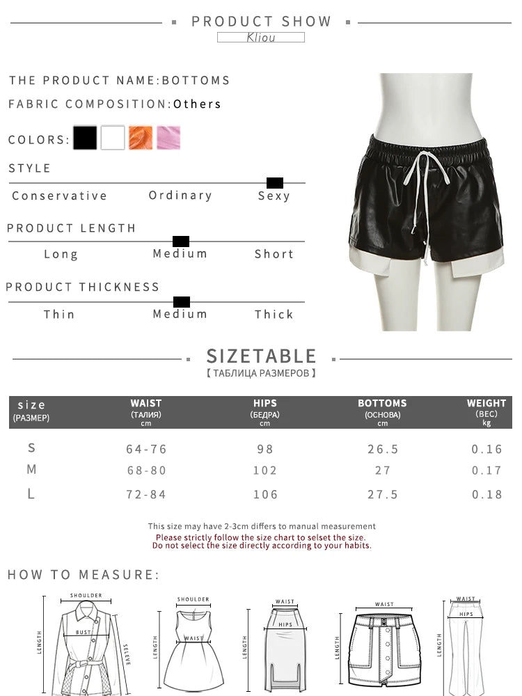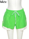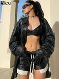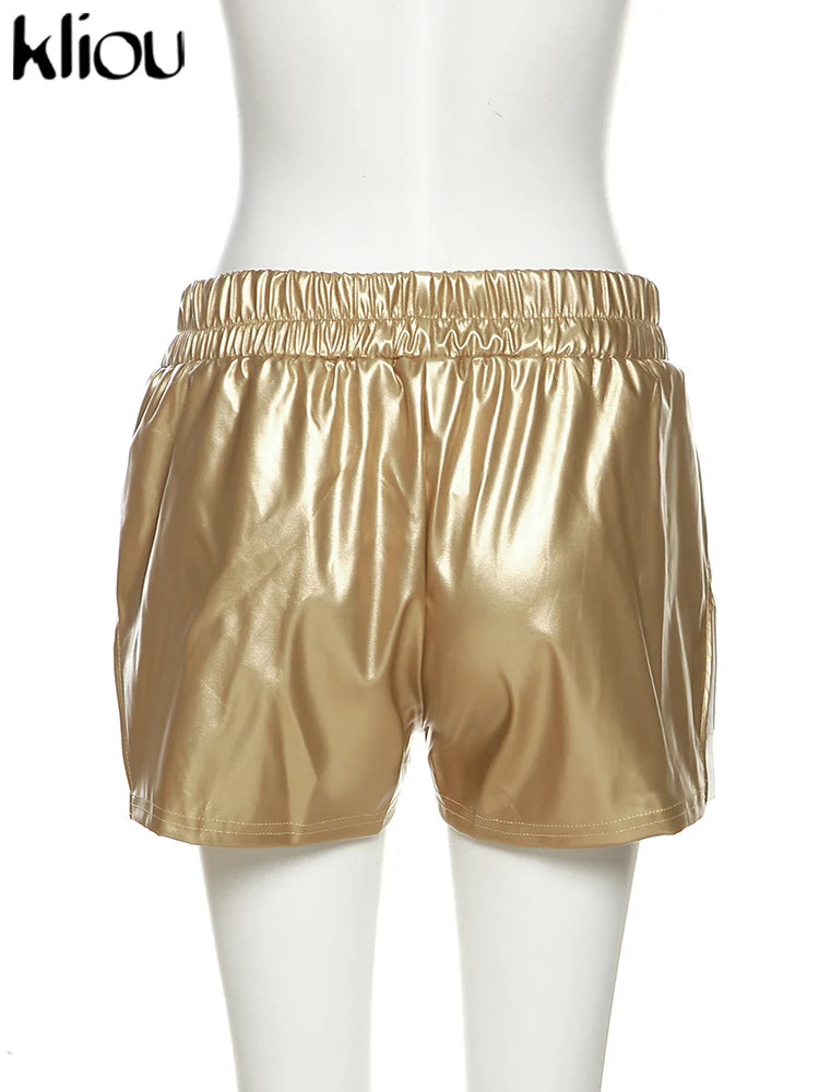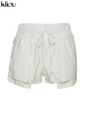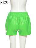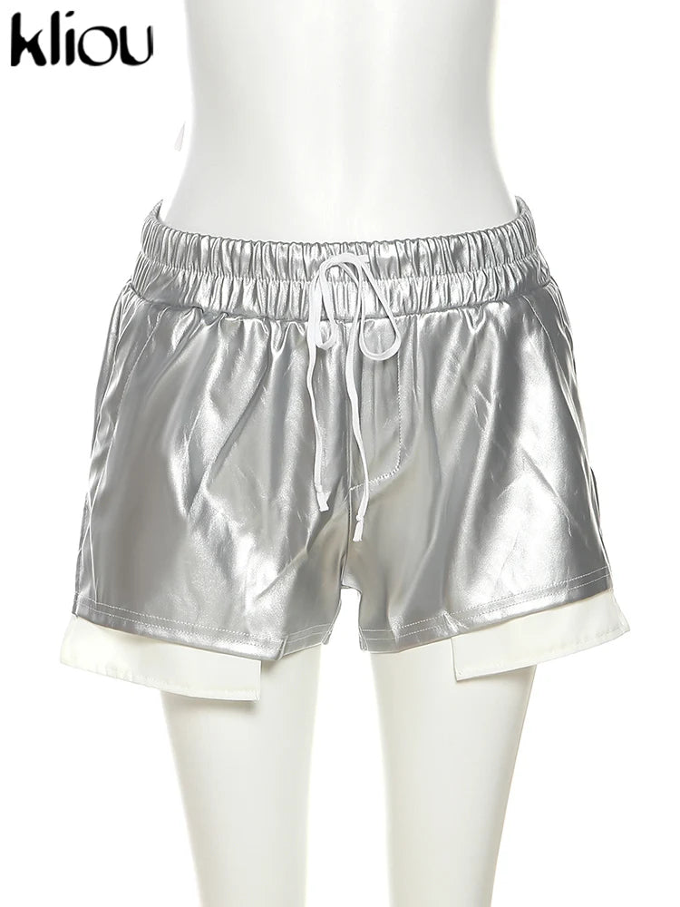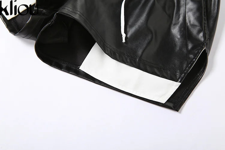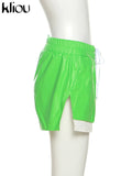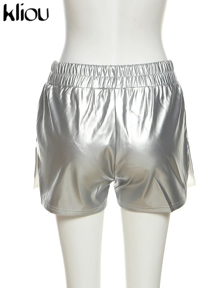 Kliou Faux PU Leather Patchwork Shorts Women Casual Summer Loose Bandage Elastic Waist Slit All-Match Bottoms Leisure Clothing