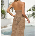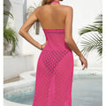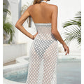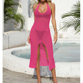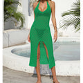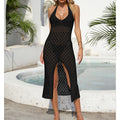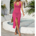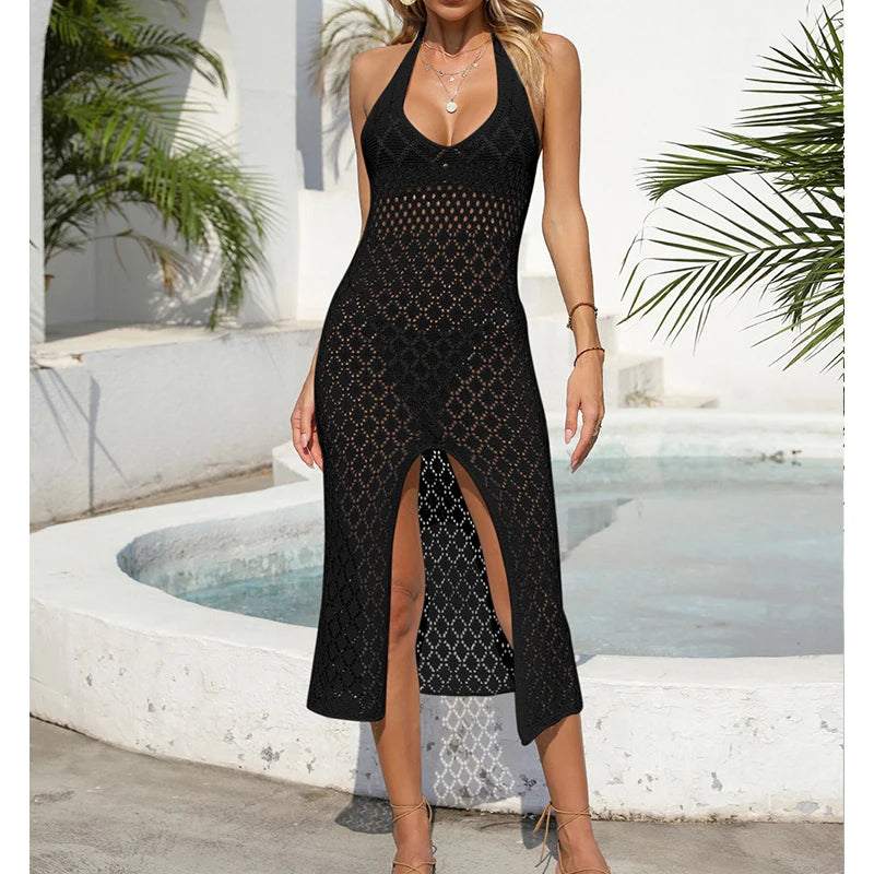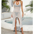 Knitting Sexy Halter Long Dress Hollow out Breathable Summer Beach Cover-Up Women Fashion Split Dress Stylish Beachwear