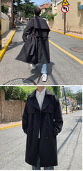 Korean style Spring Trench Coat Male Streetwear Windbreaker Trenchcoat Men Solid Business Casual Loose Long Overcoat