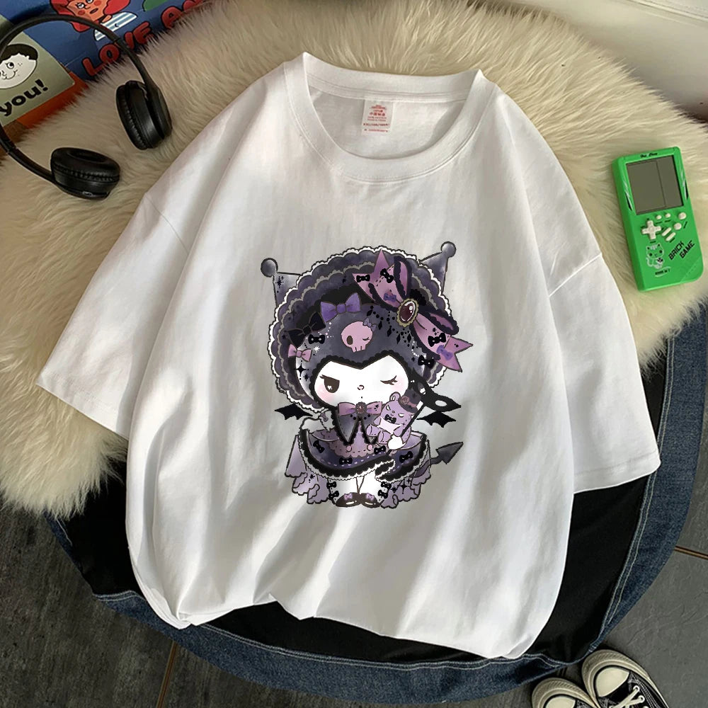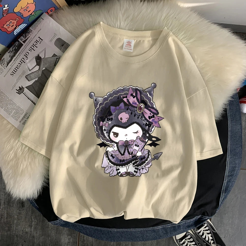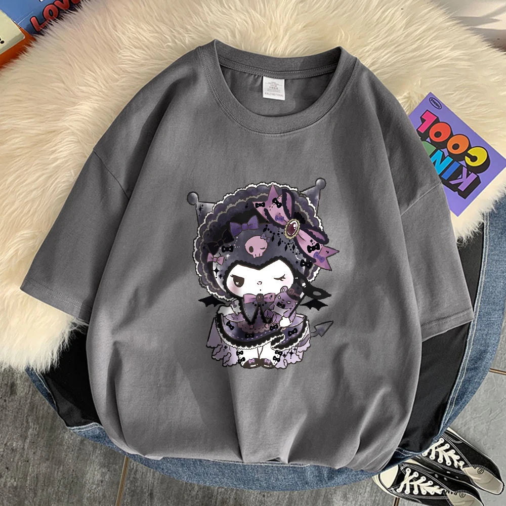 Kuromi Dressed Up In Full Attire Print Short Sleeve Breathable Fashion T Shirts Soft Comfy Clothing Everyday Cotton T-Shirt