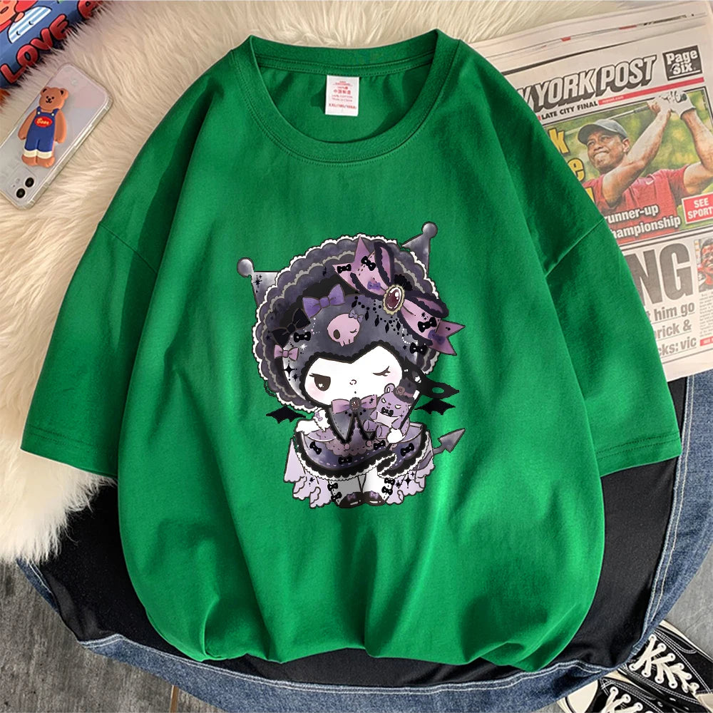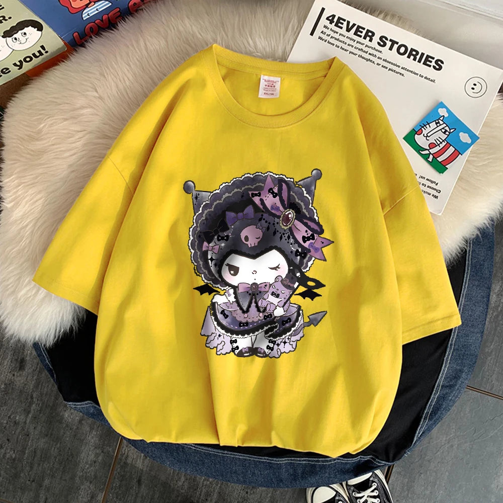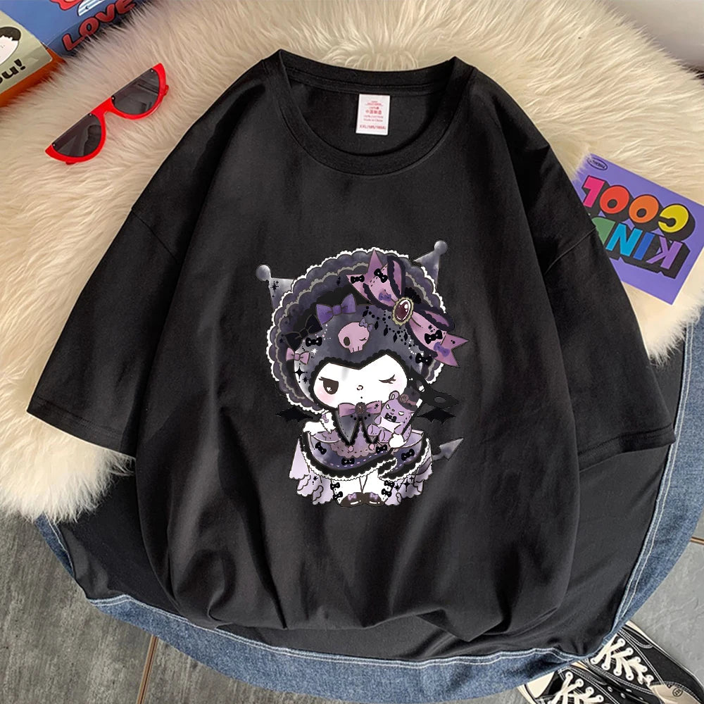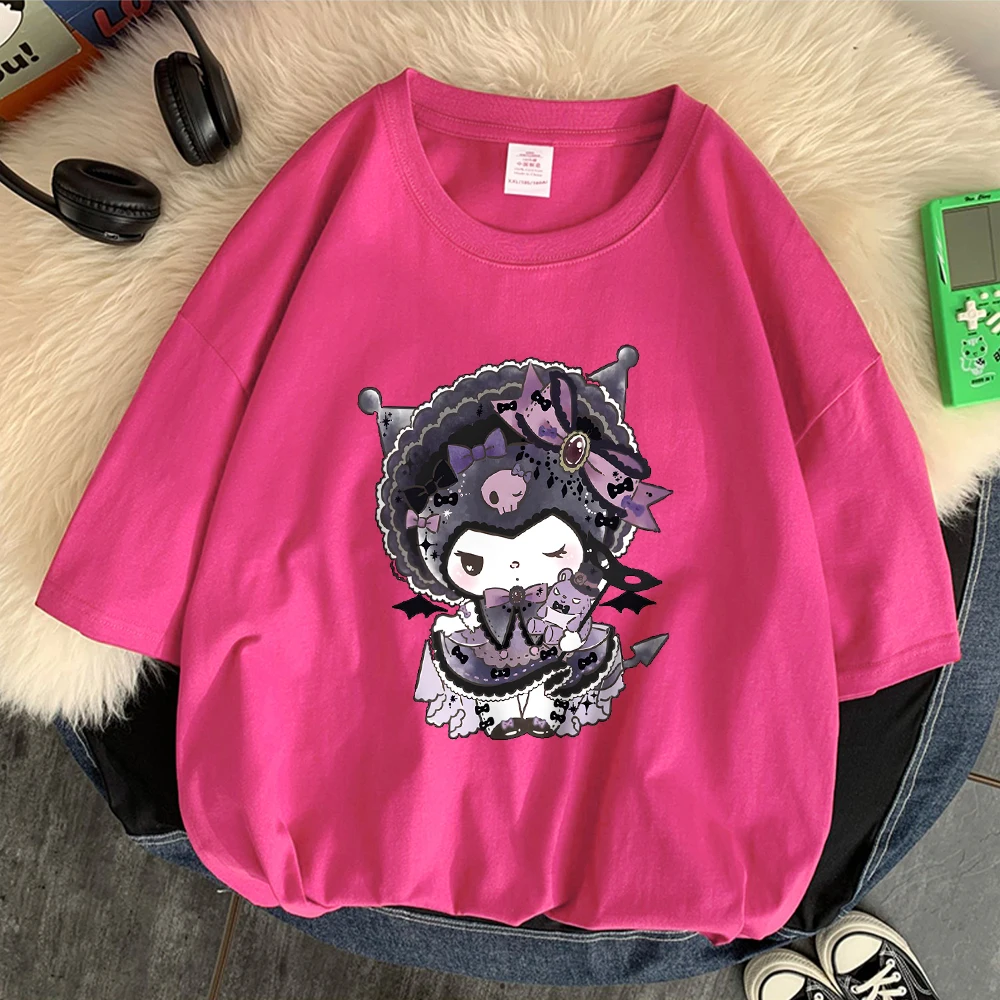 Kuromi Dressed Up In Full Attire Print Short Sleeve Breathable Fashion T Shirts Soft Comfy Clothing Everyday Cotton T-Shirt