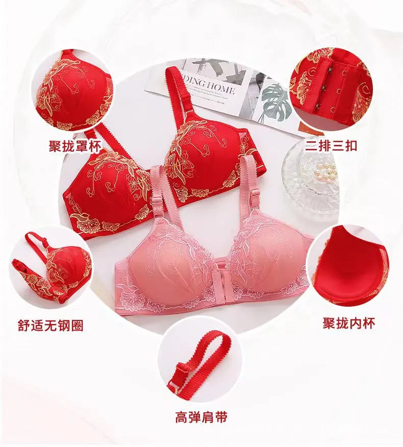 Lace Embroidery Bra Women Front Closure Underwear Wireless Bras Lady Push Up Brassiere Breathable Thin Female Bralette Lingerie