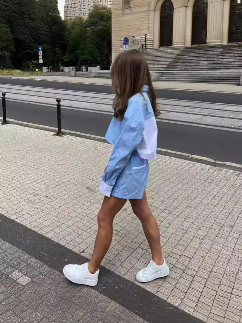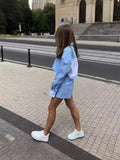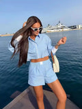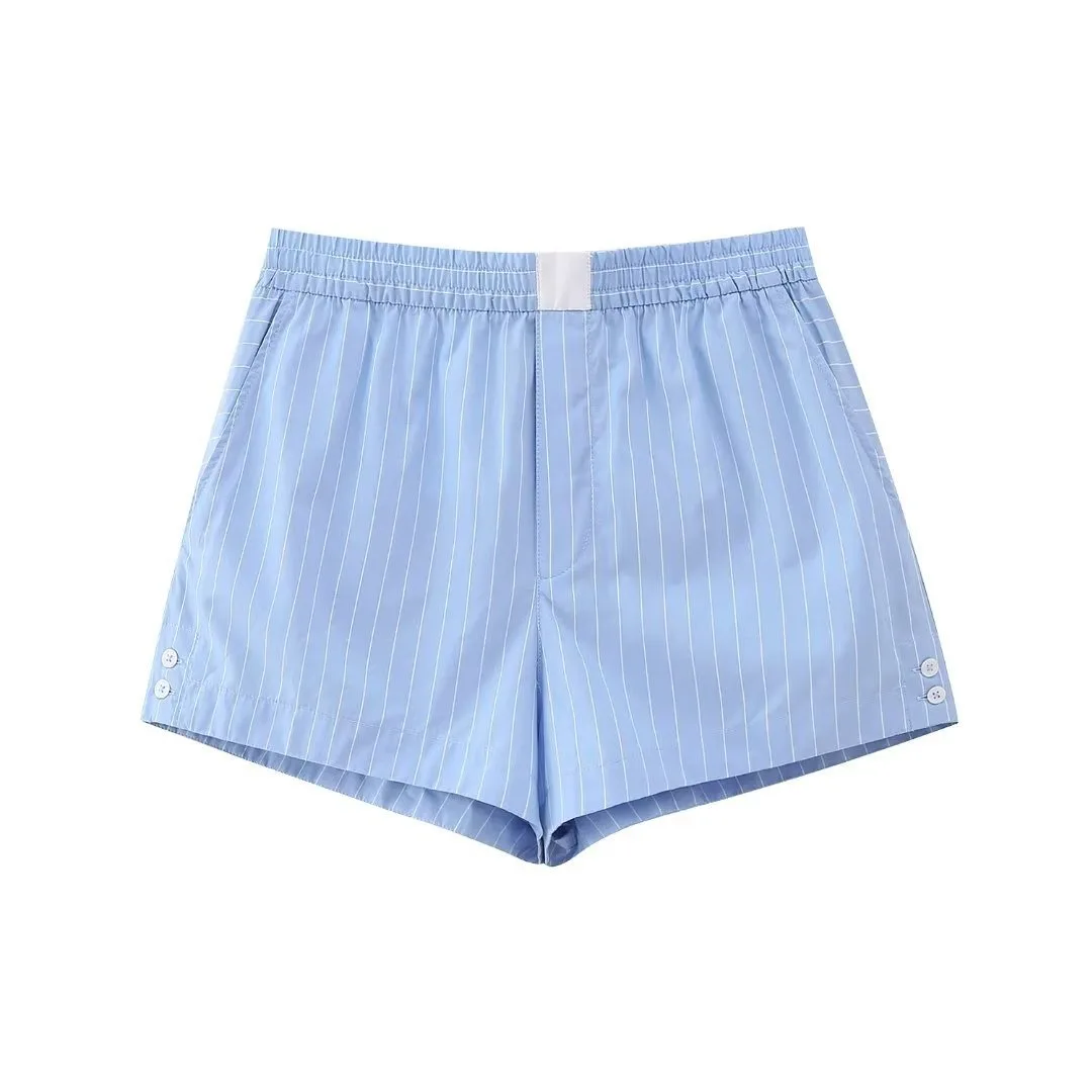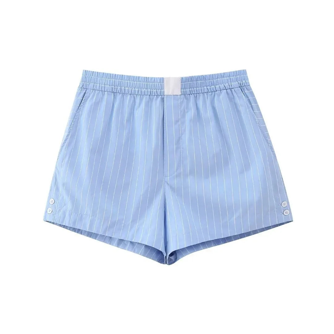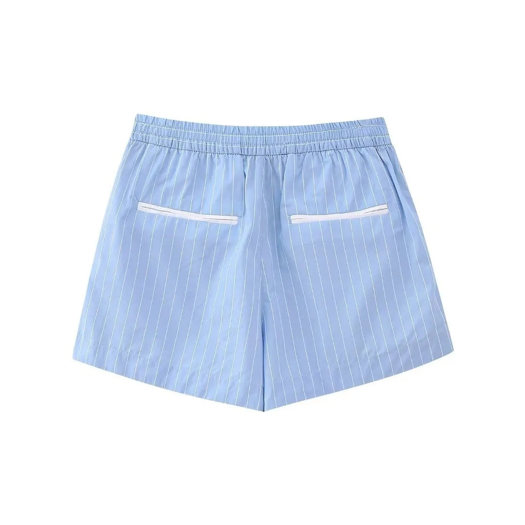 Ladies Fashion Elegant 2 Pieces Sets Stripe Shirts Top Casual Shorts Sets Summer Women Suit Two Piece Set Womens Outfits Female
