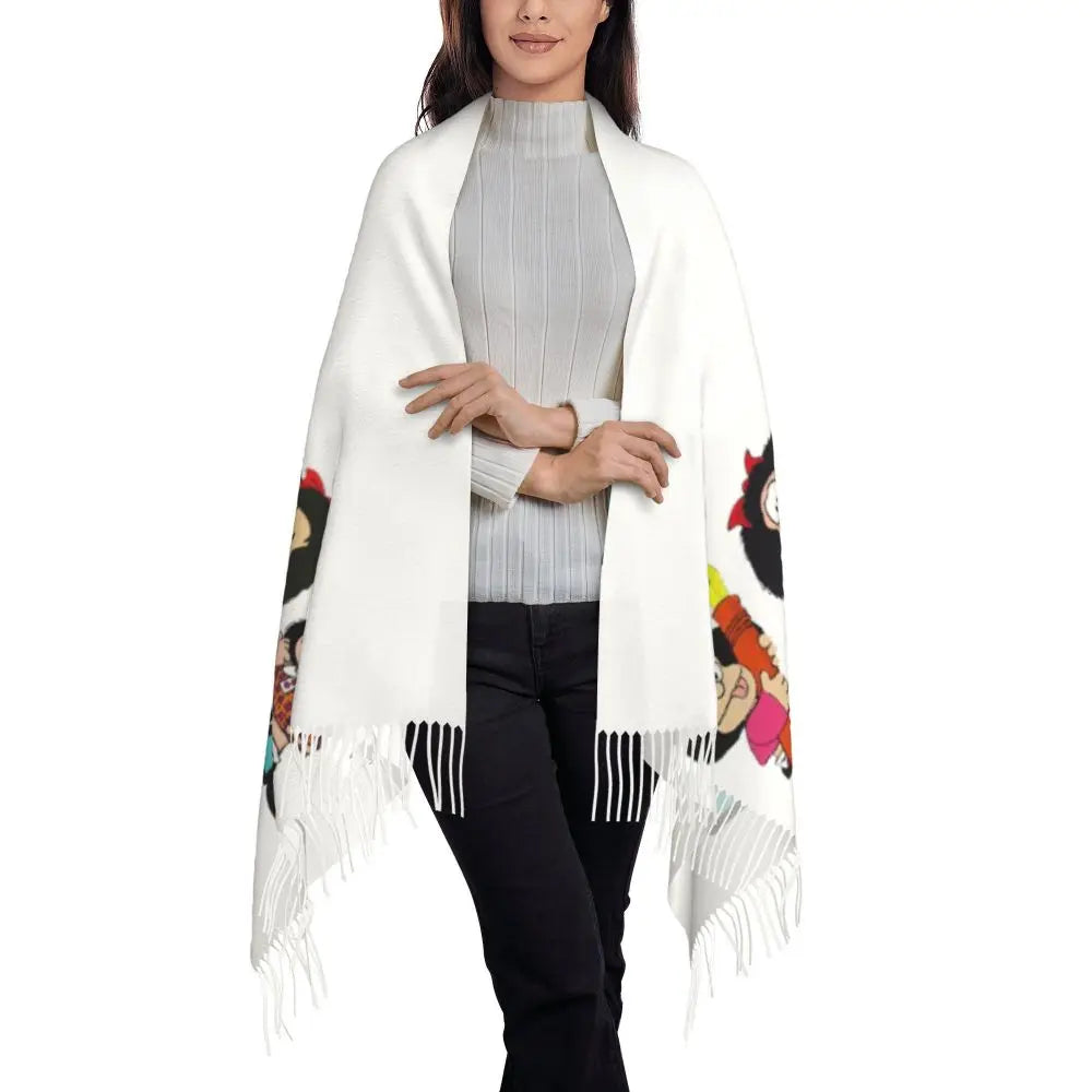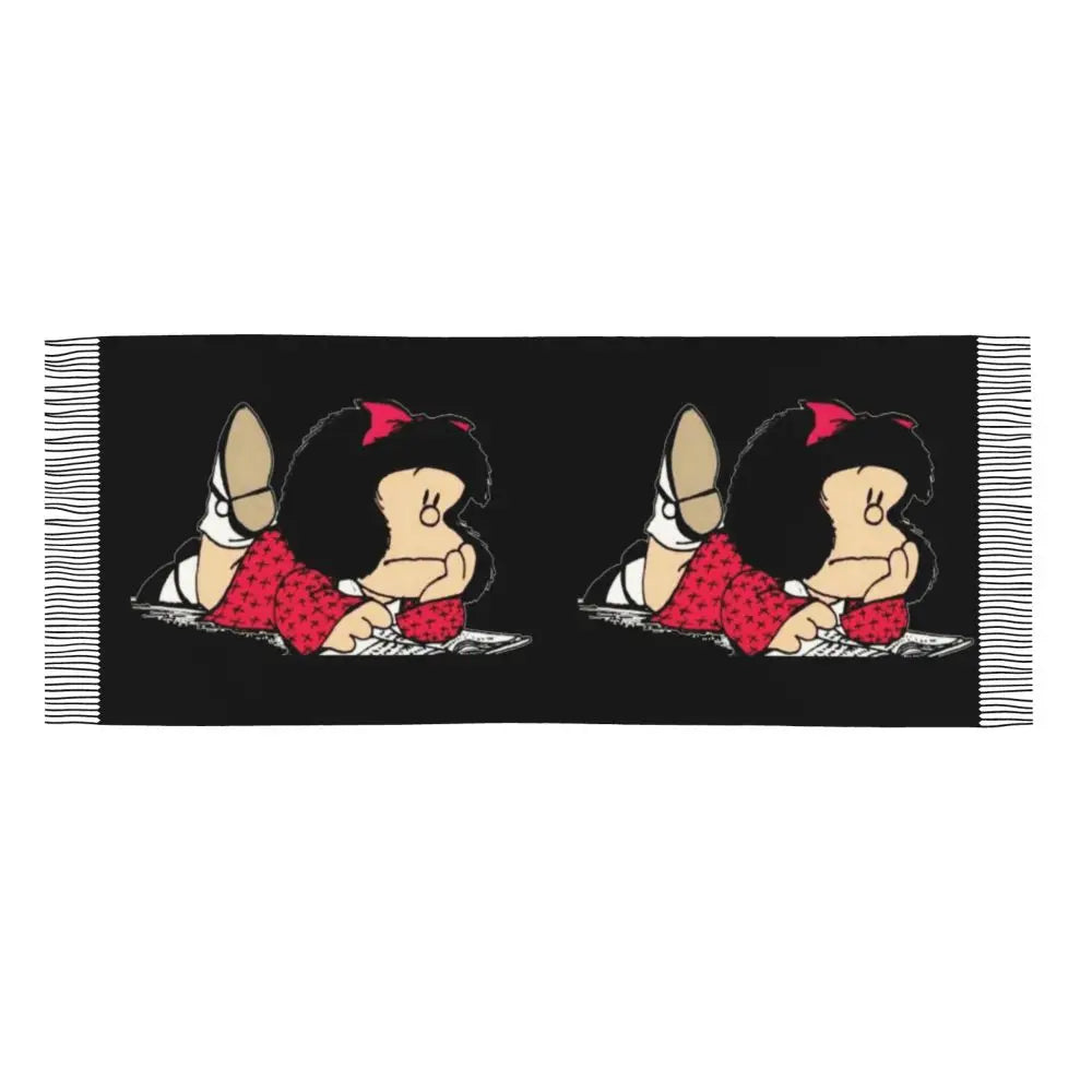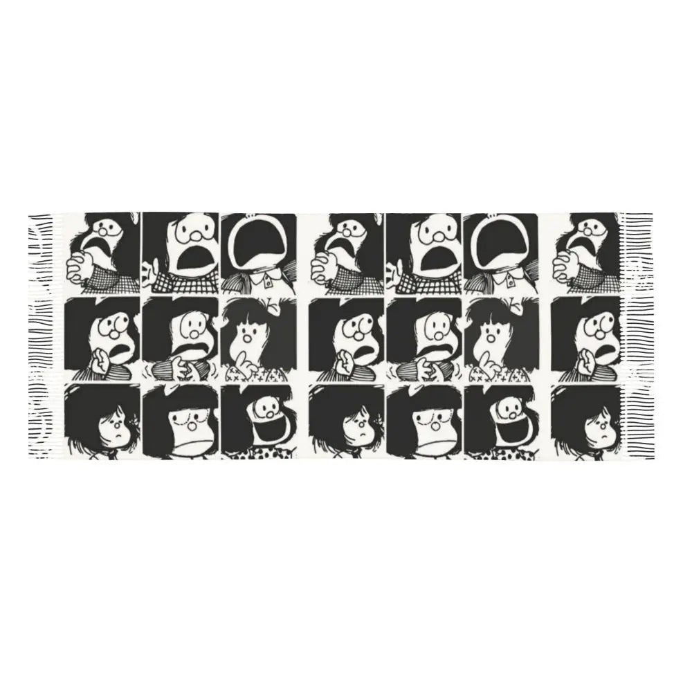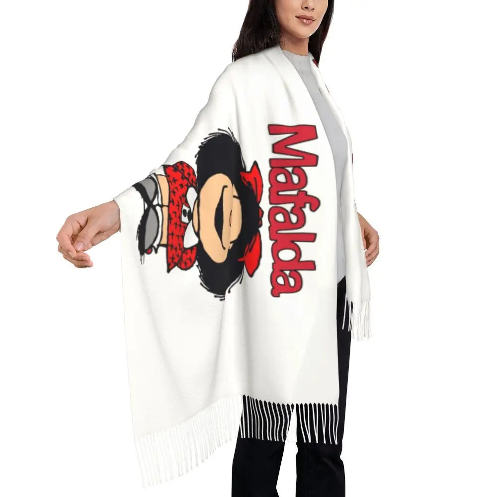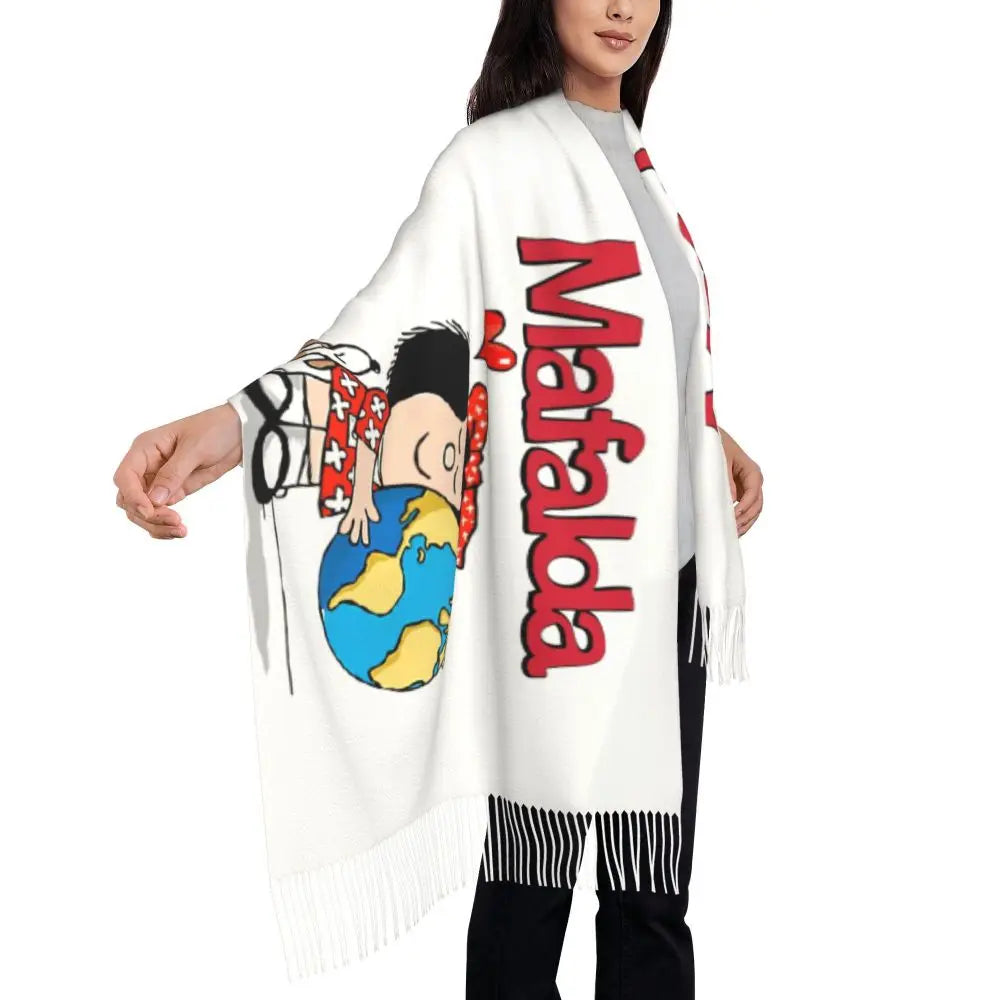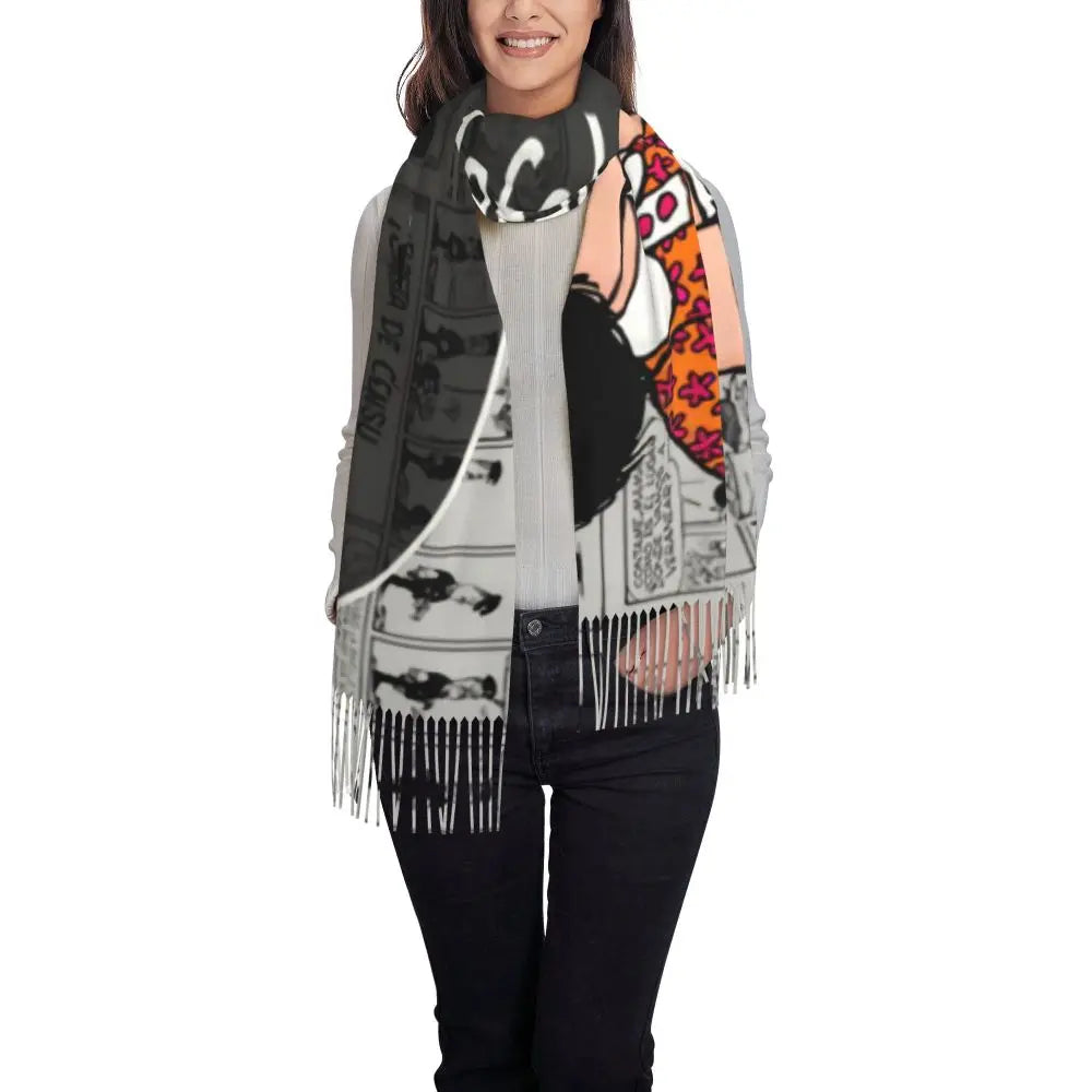 Ladies Long Cute Mafalda Scarves Women Winter Fall Soft Warm Tassel Shawl Wraps Argentine Cartoon Quino Comic Scarf