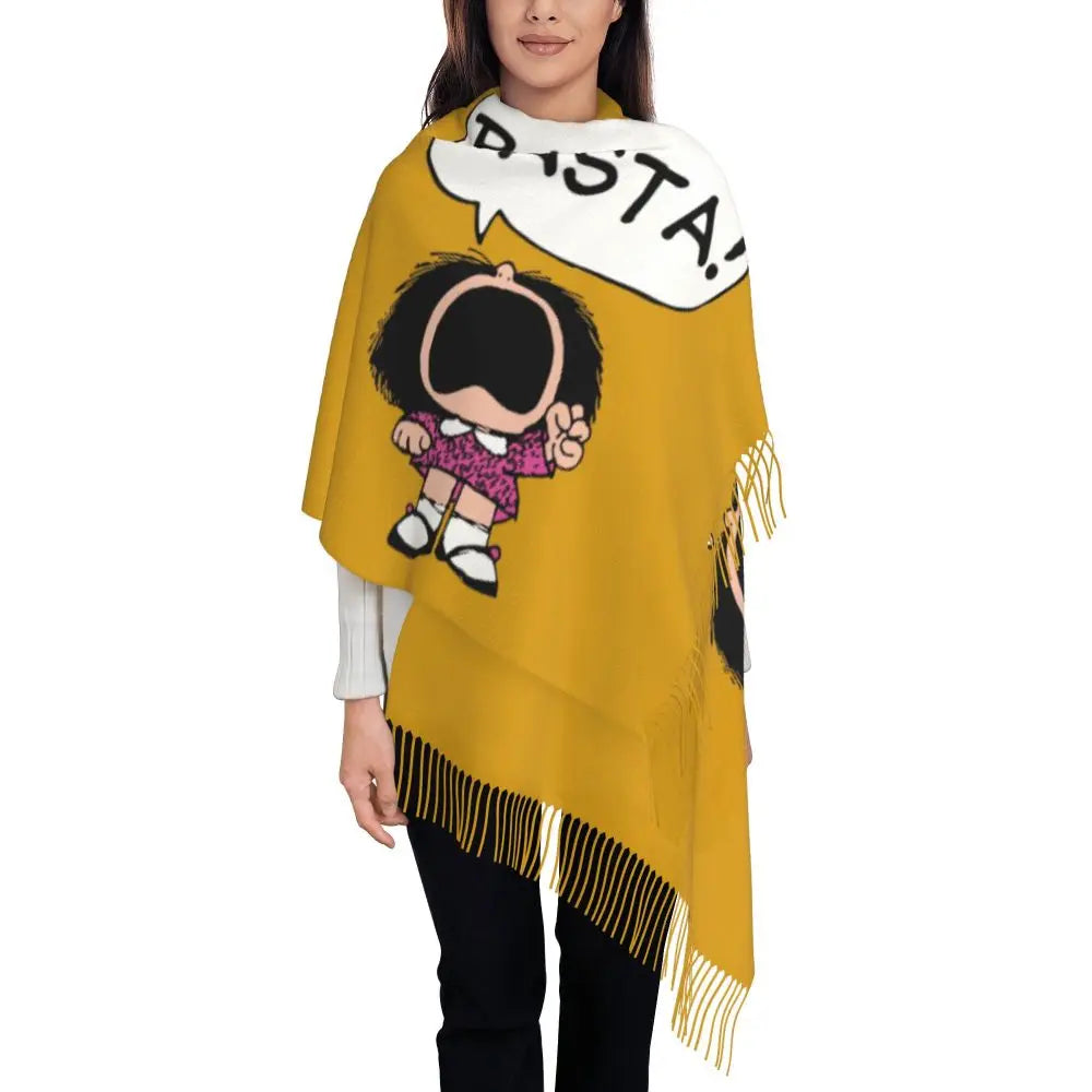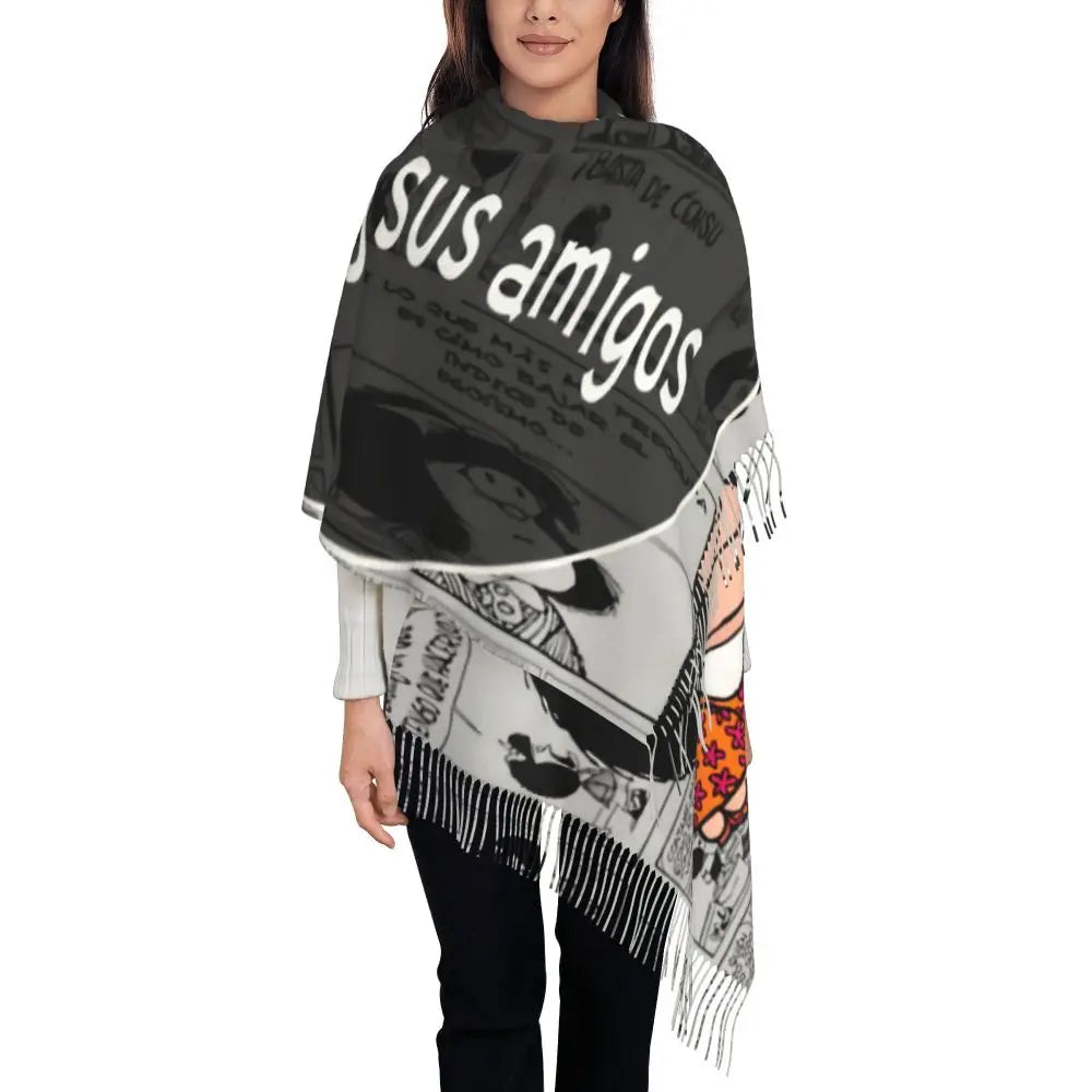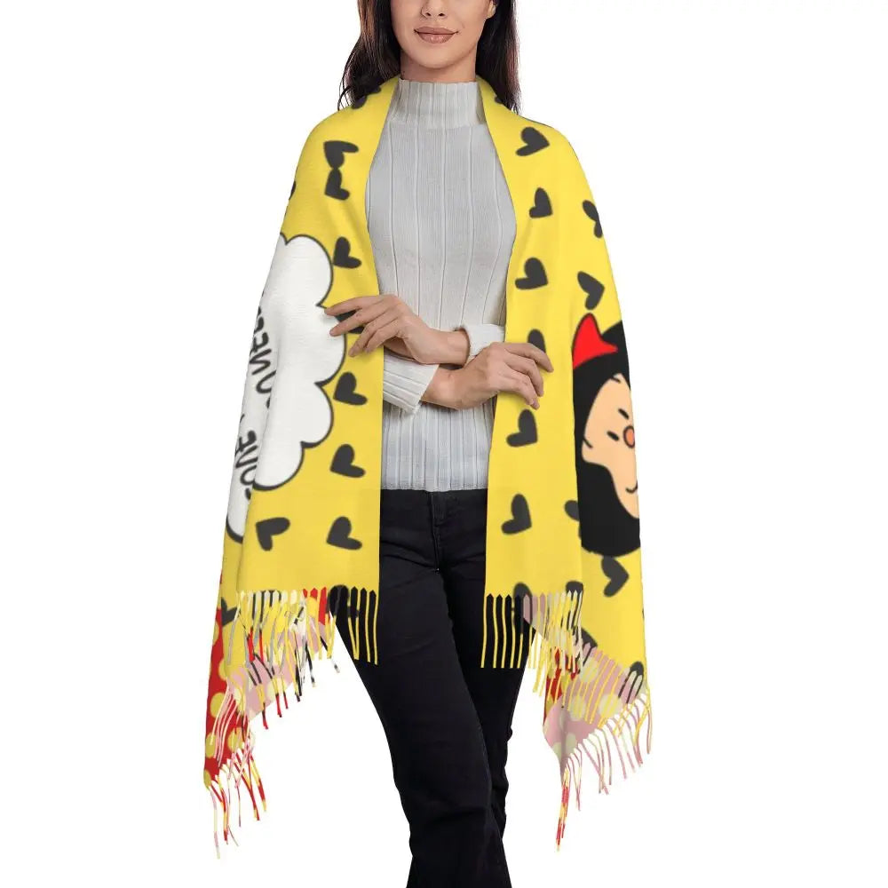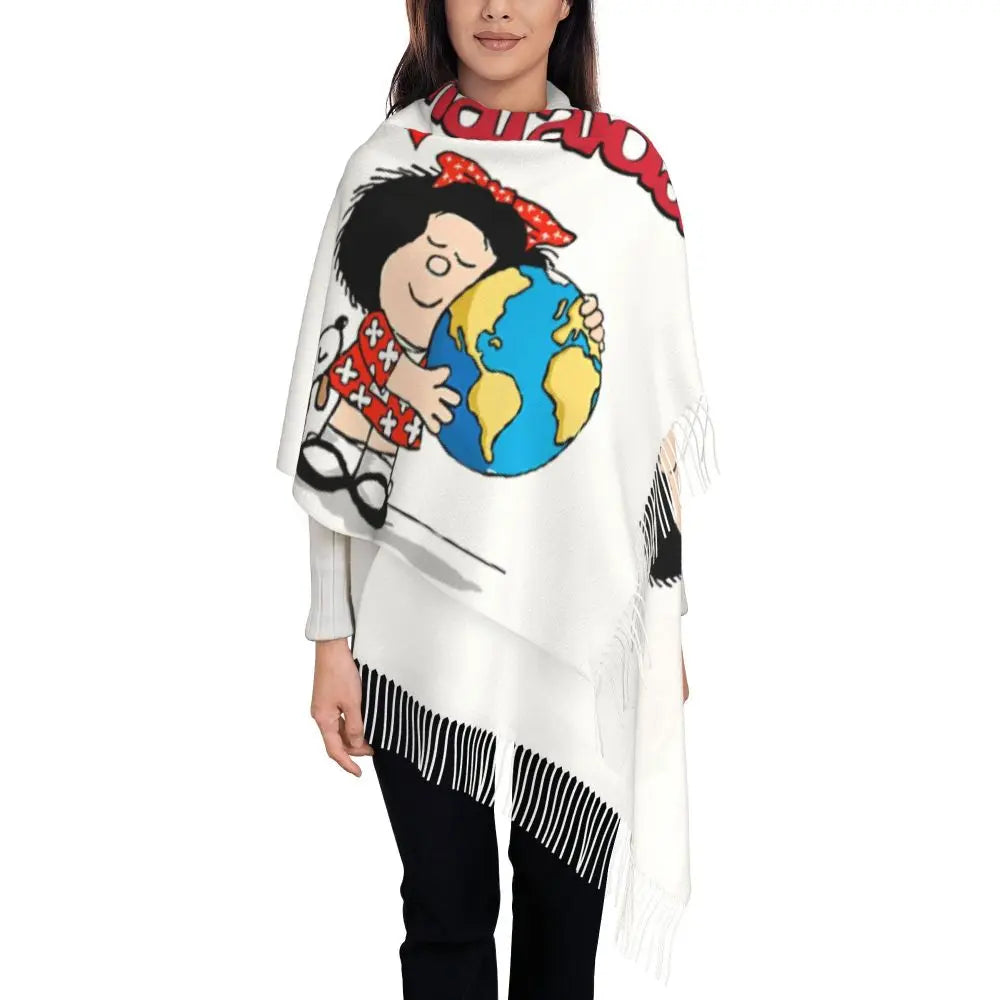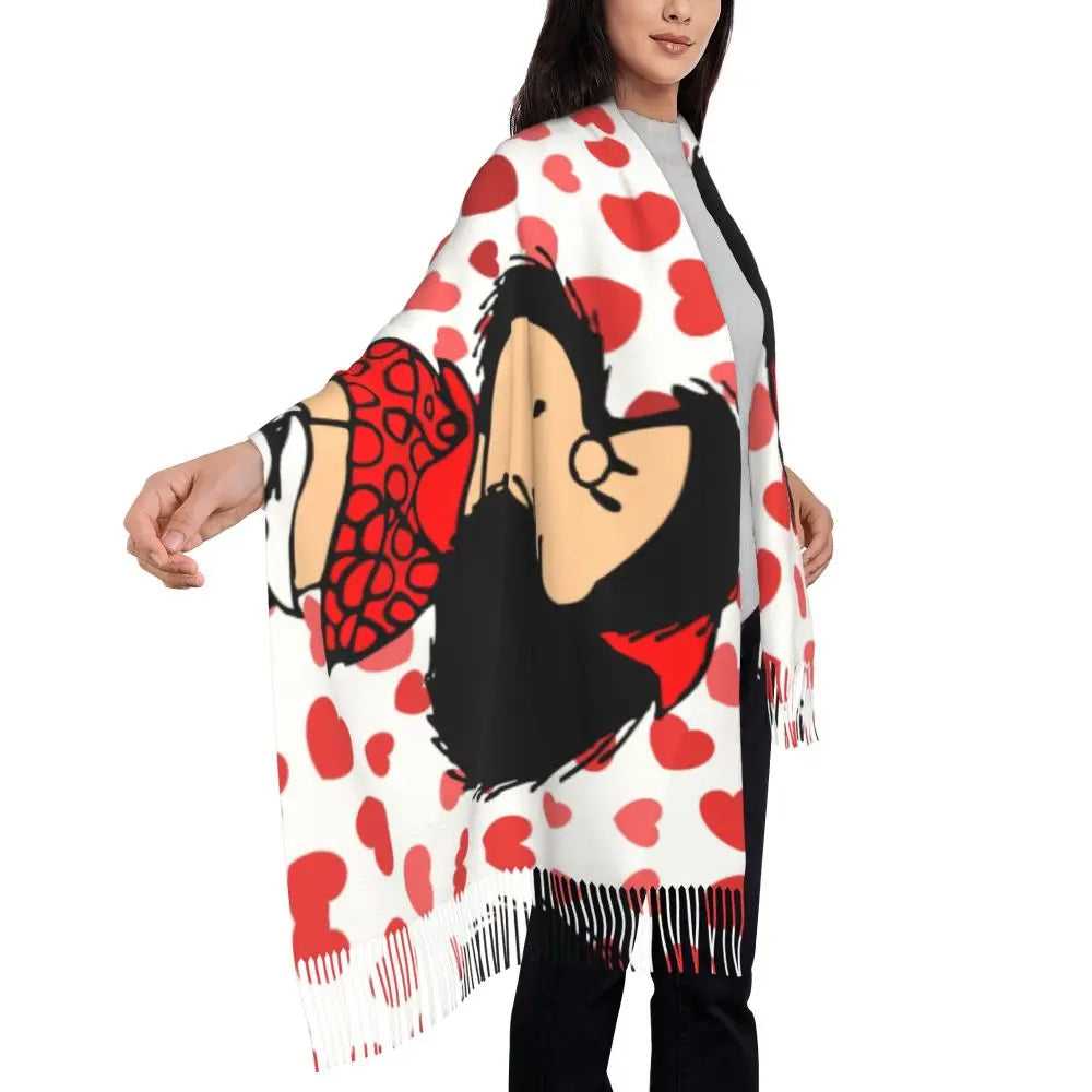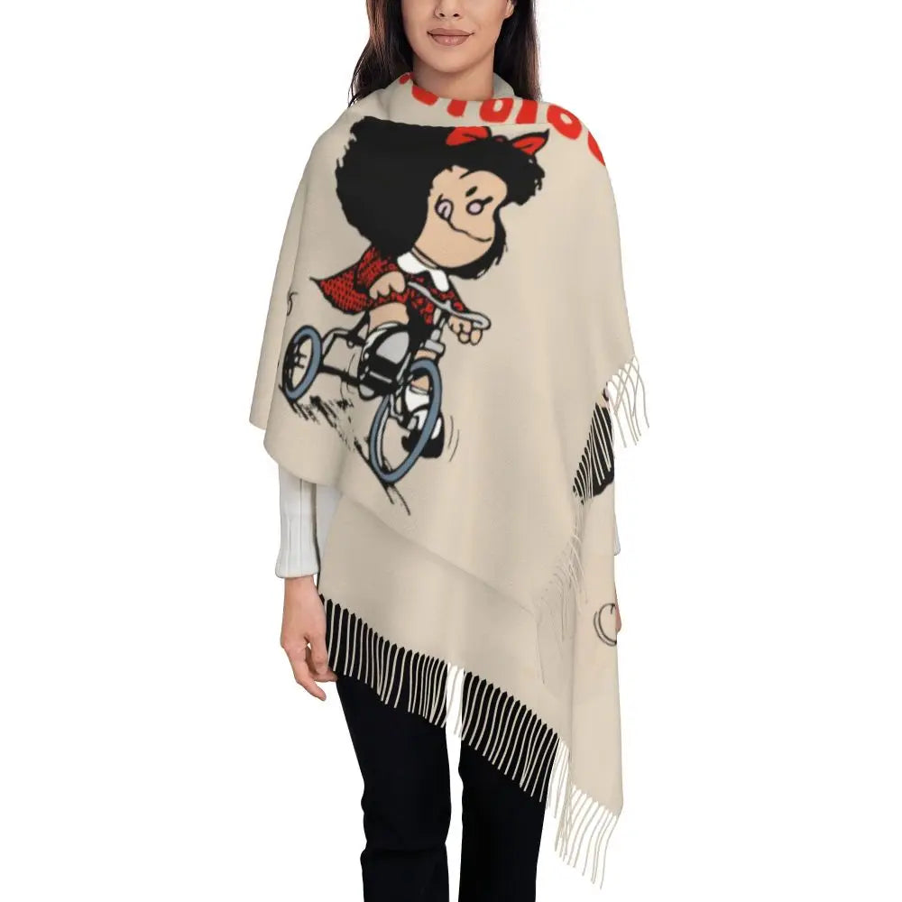 Ladies Long Cute Mafalda Scarves Women Winter Fall Soft Warm Tassel Shawl Wraps Argentine Cartoon Quino Comic Scarf
