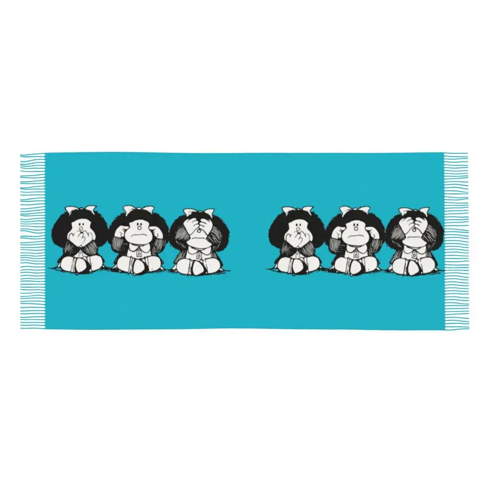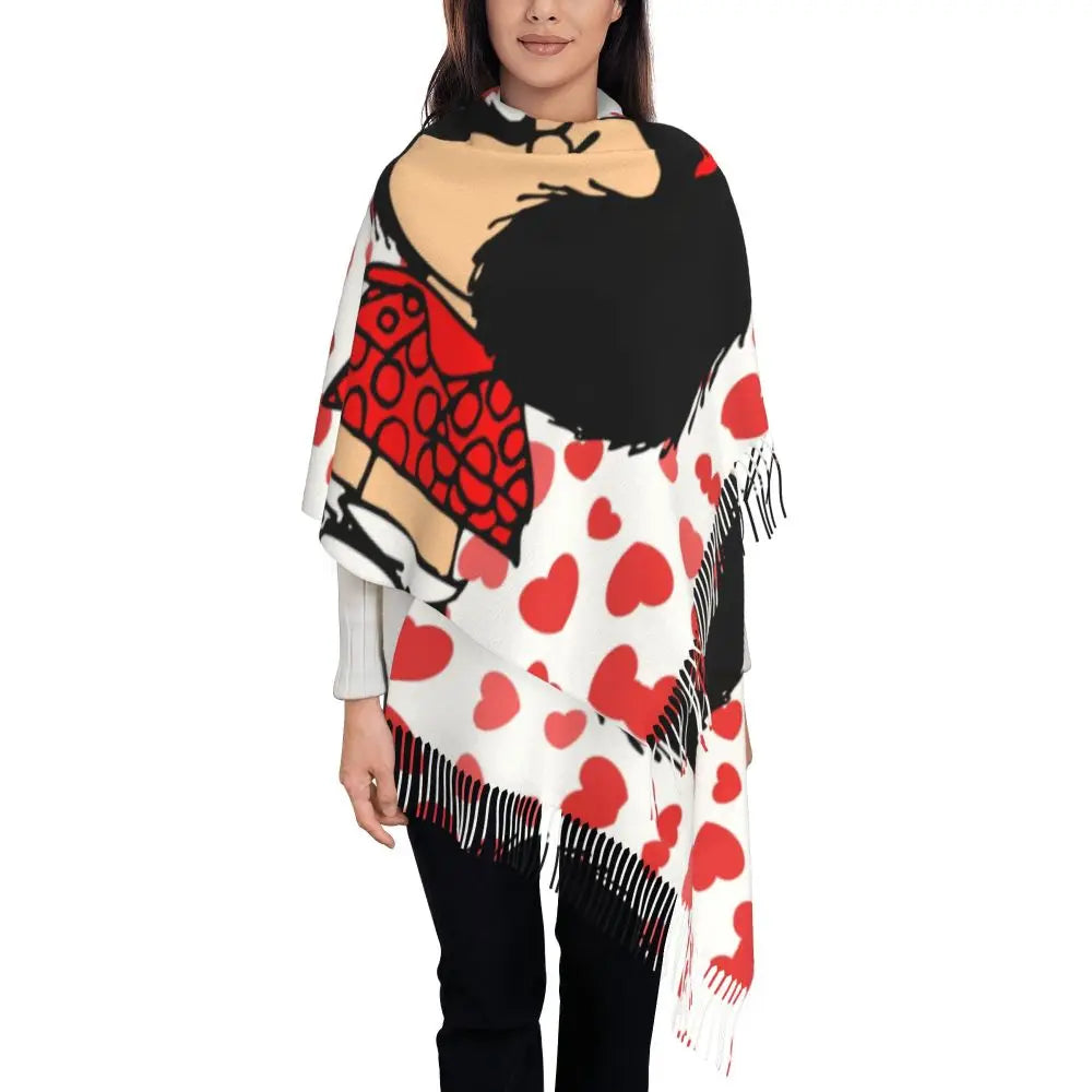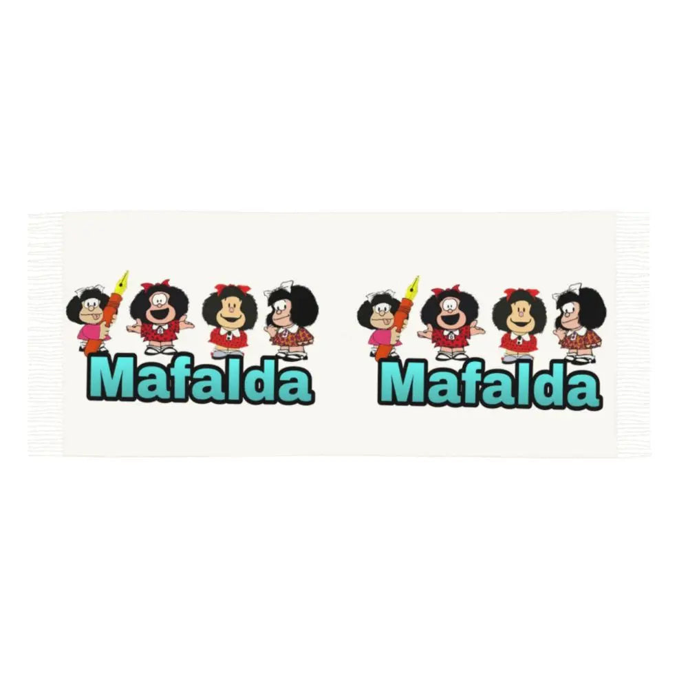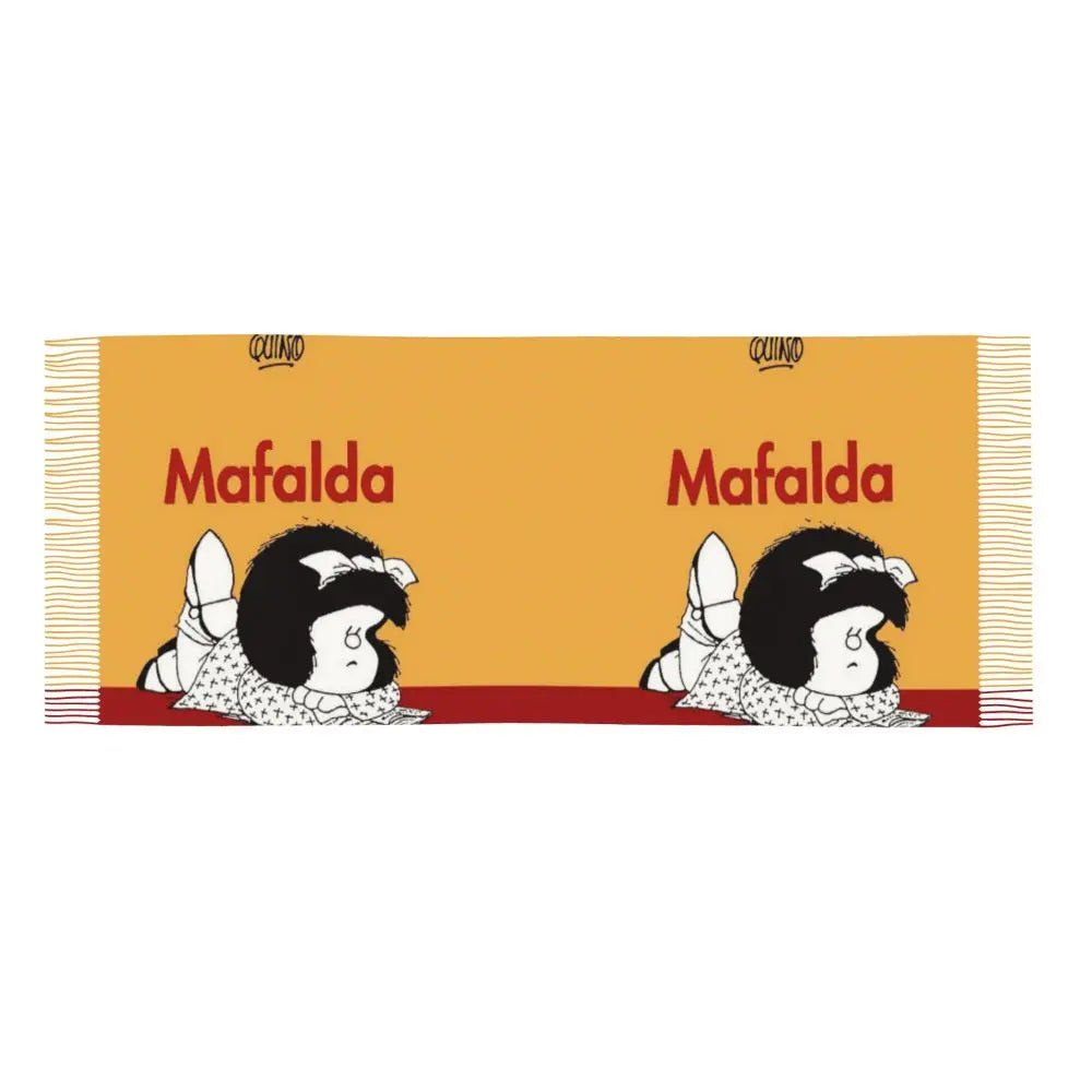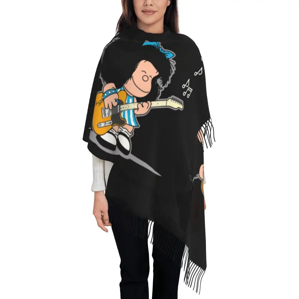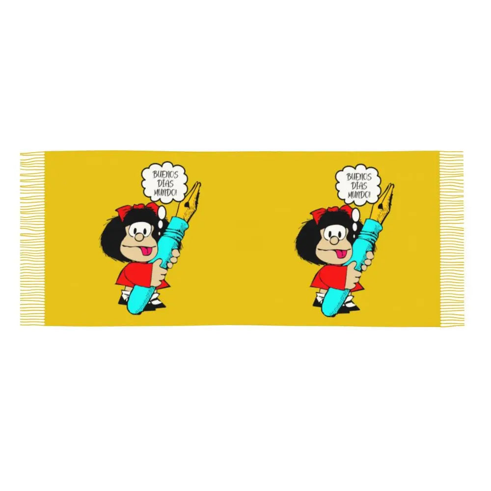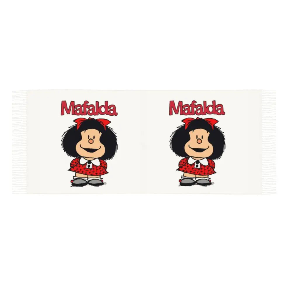 Ladies Long Cute Mafalda Scarves Women Winter Fall Soft Warm Tassel Shawl Wraps Argentine Cartoon Quino Comic Scarf
