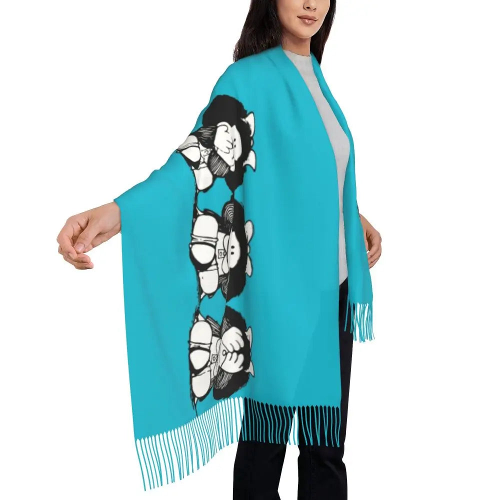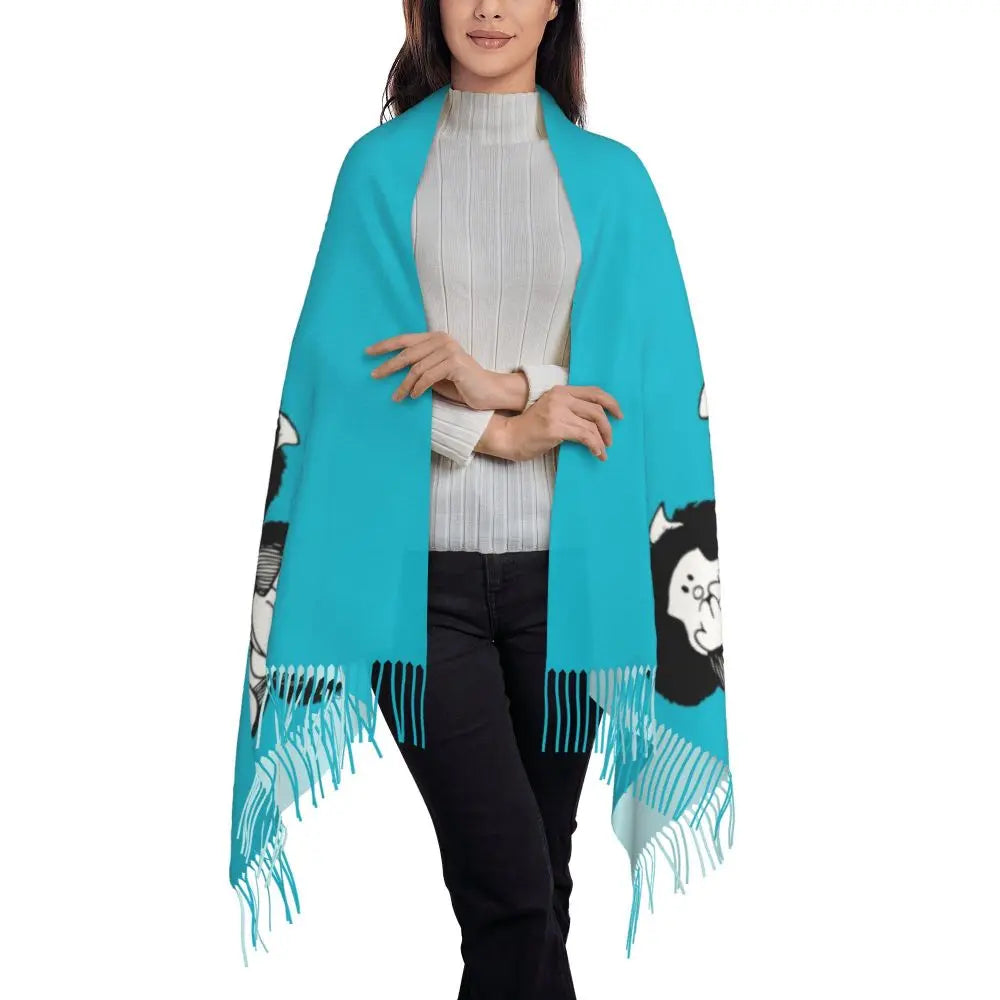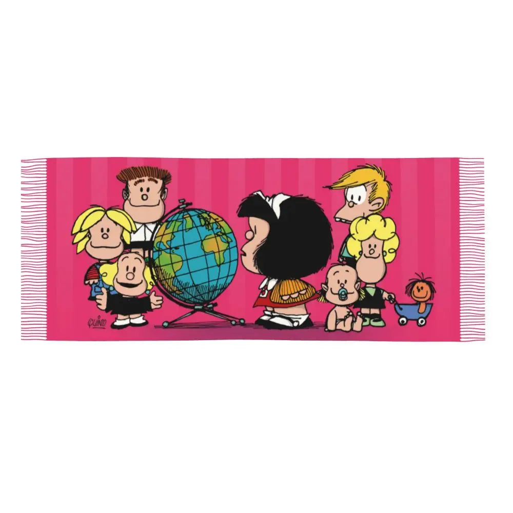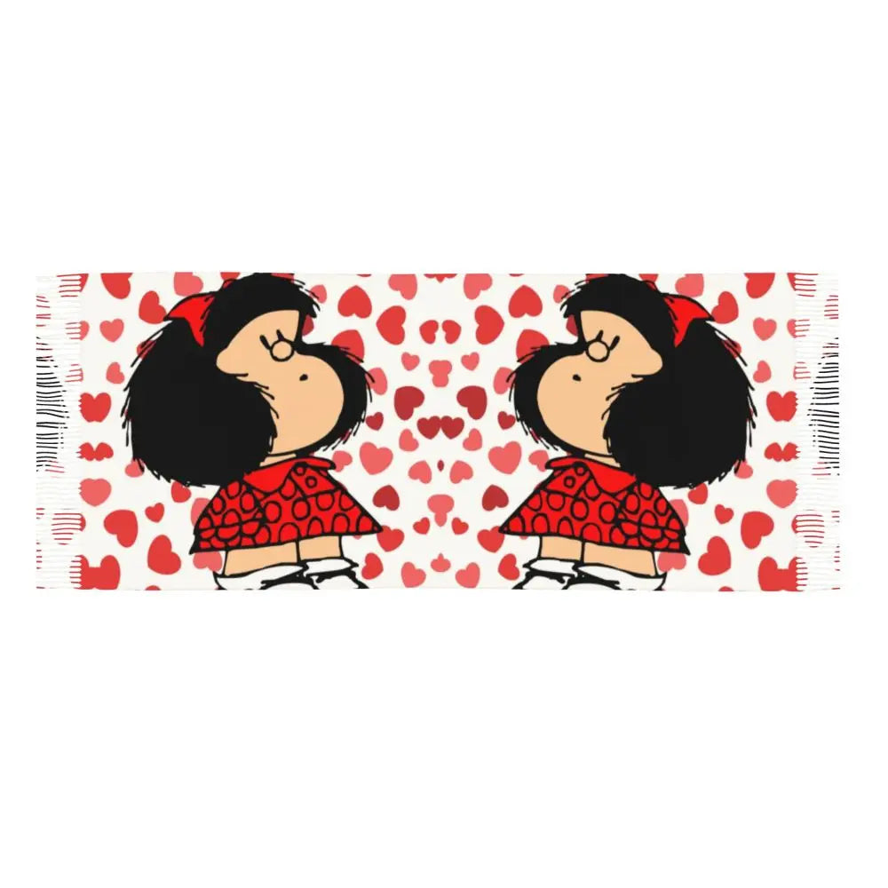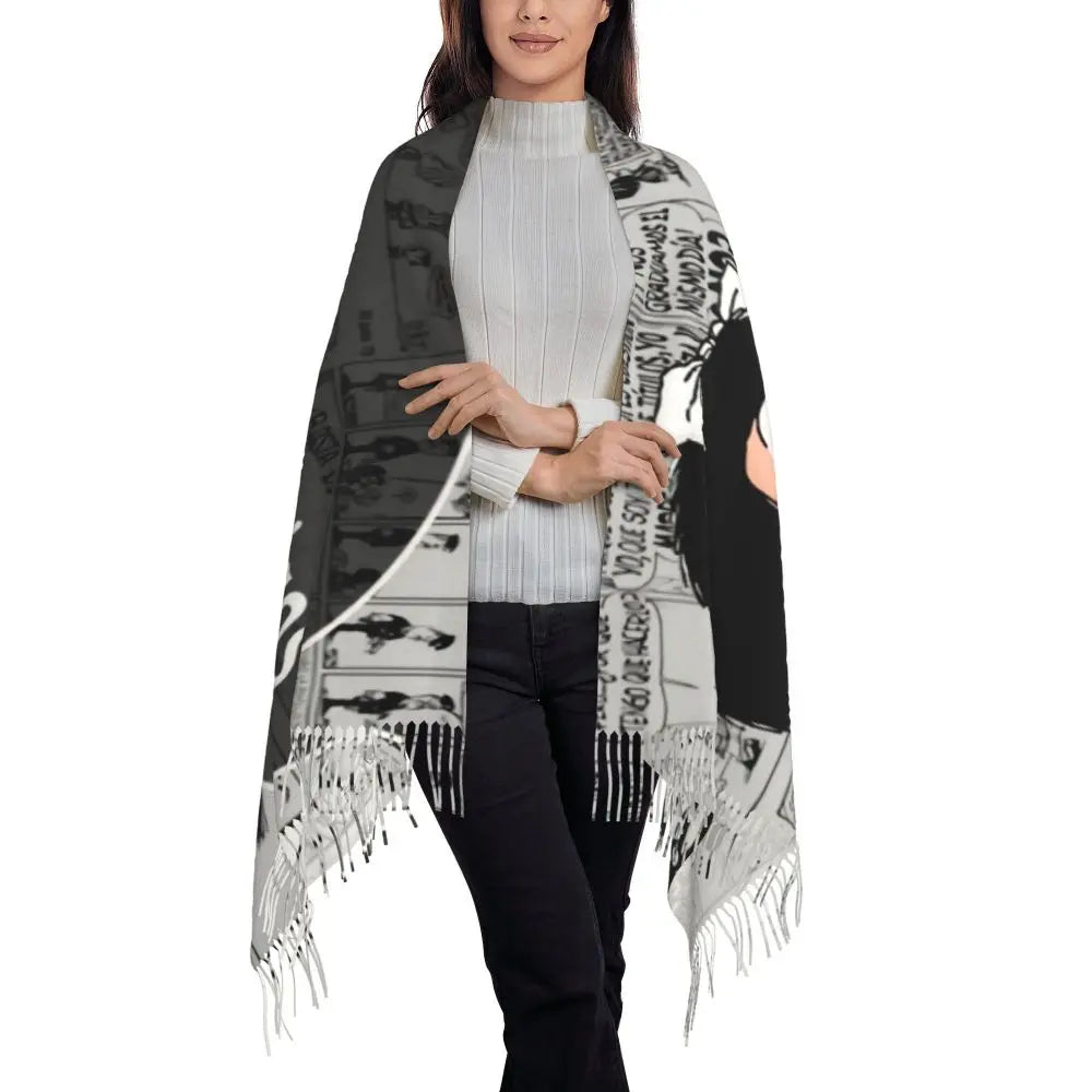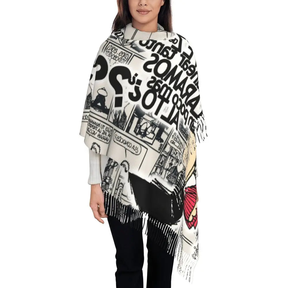 Ladies Long Cute Mafalda Scarves Women Winter Fall Soft Warm Tassel Shawl Wraps Argentine Cartoon Quino Comic Scarf