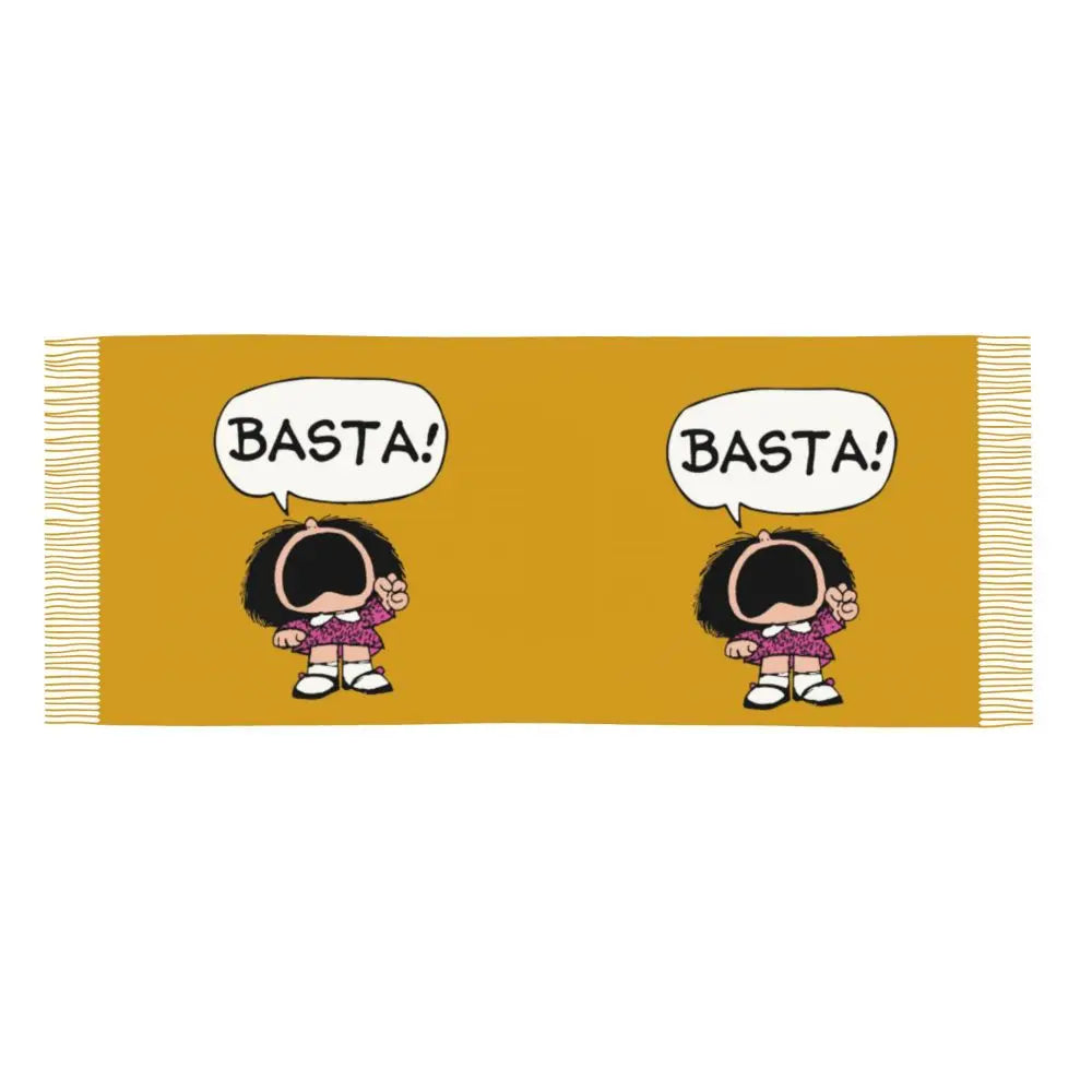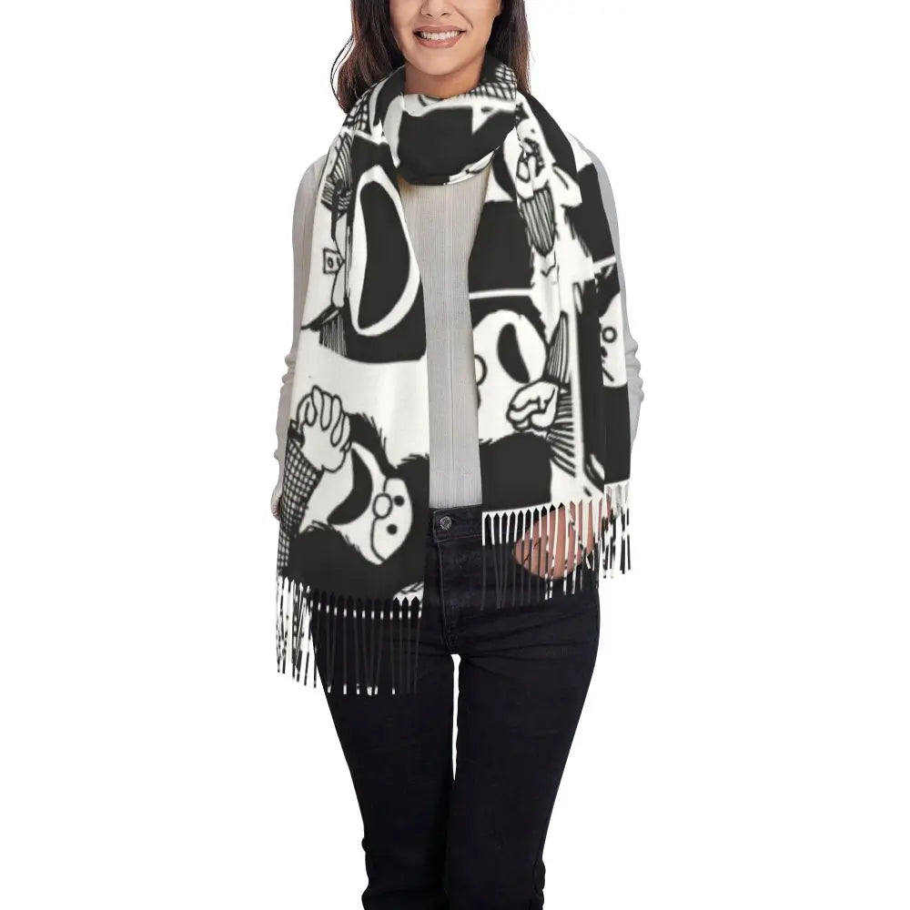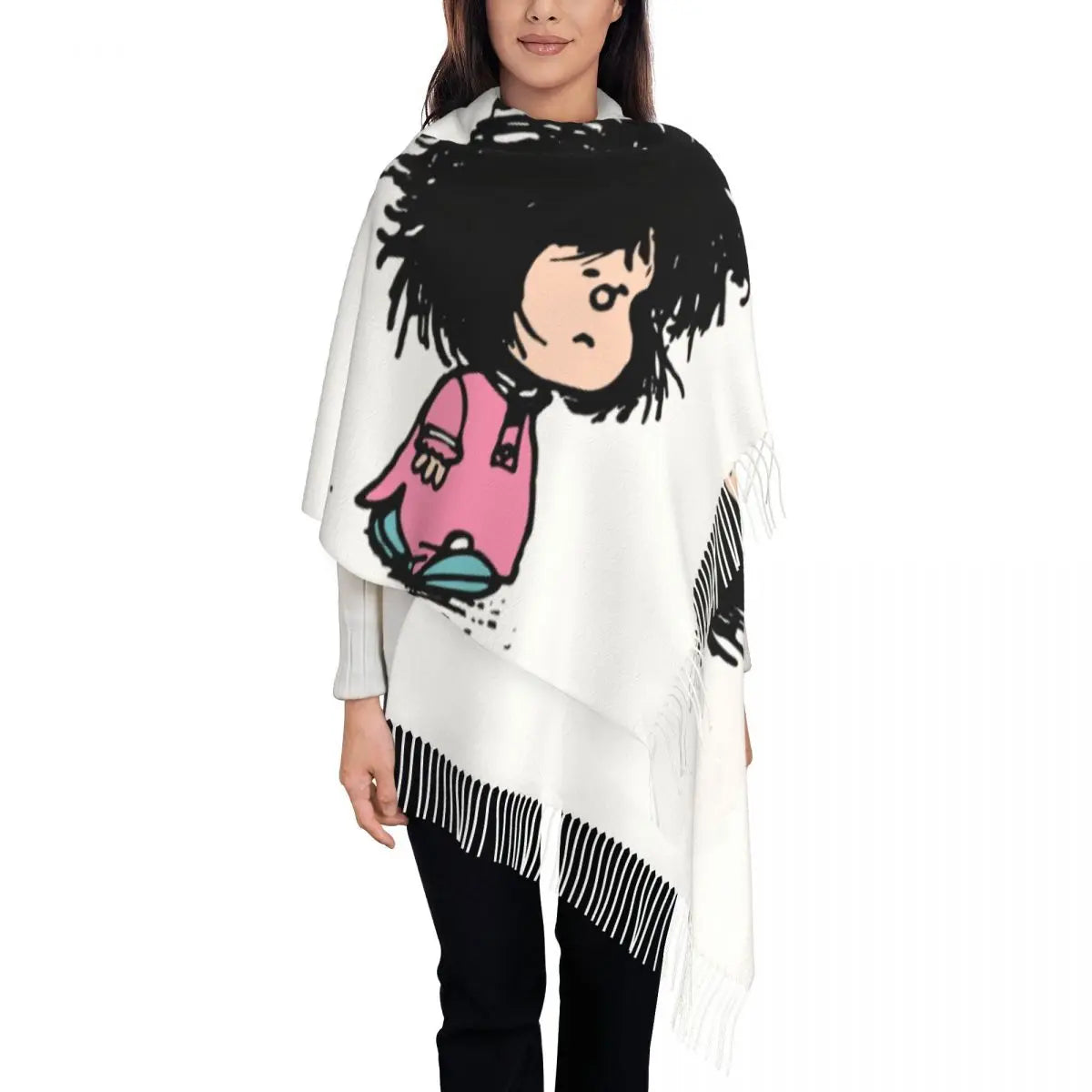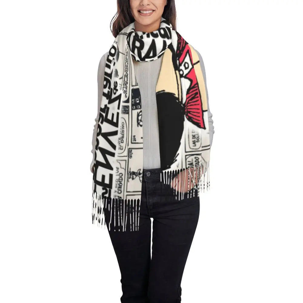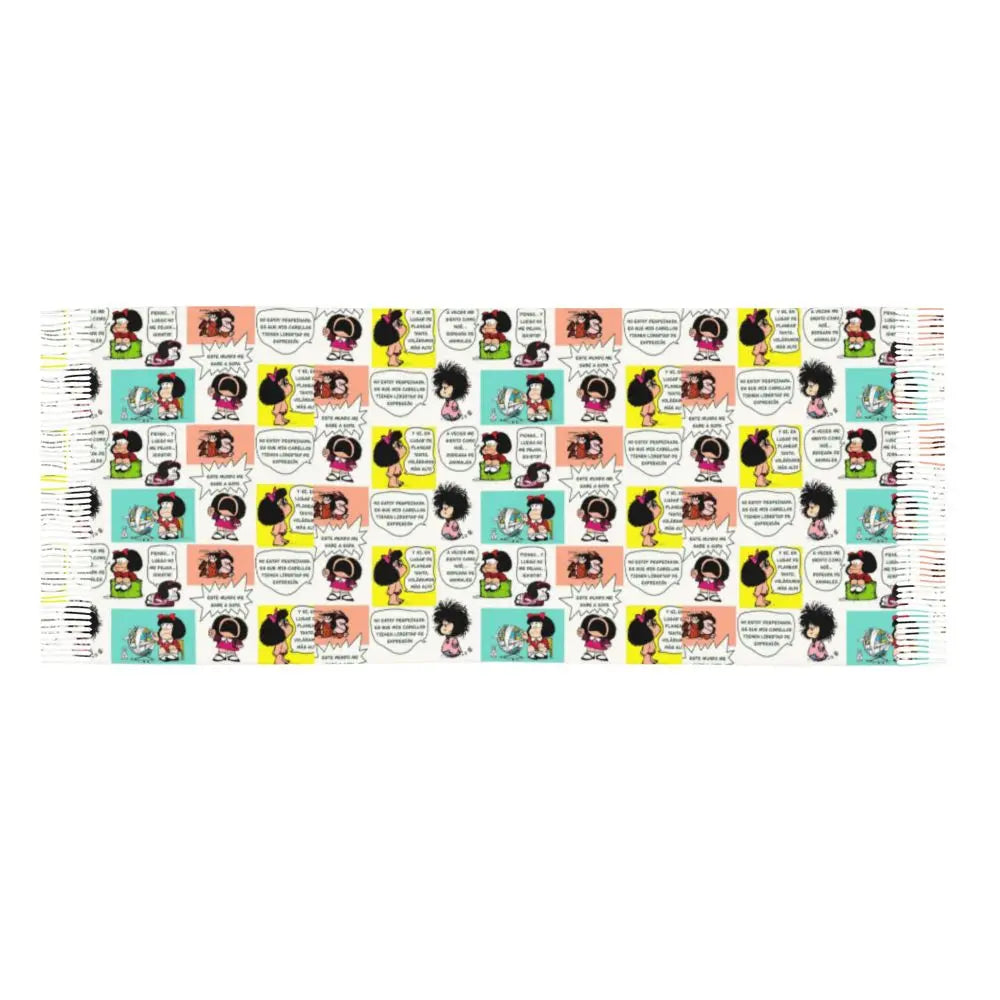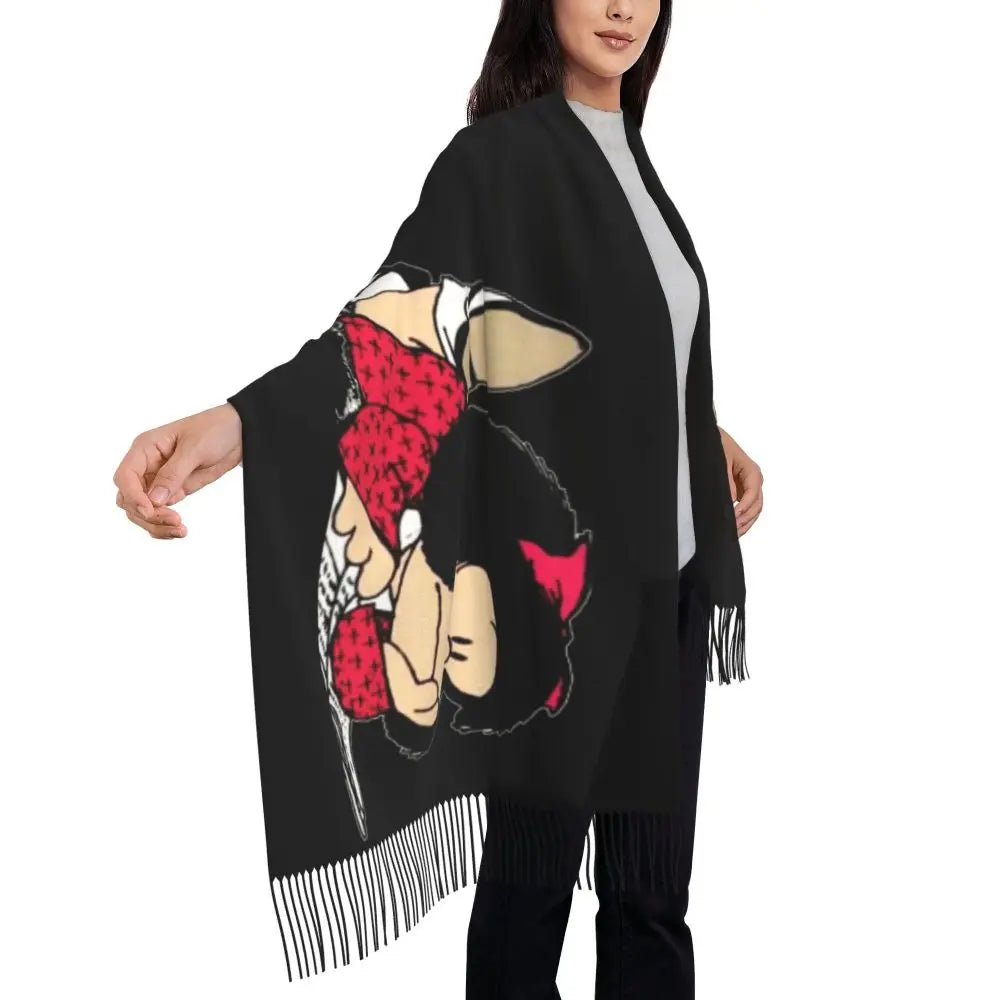 Ladies Long Cute Mafalda Scarves Women Winter Fall Soft Warm Tassel Shawl Wraps Argentine Cartoon Quino Comic Scarf