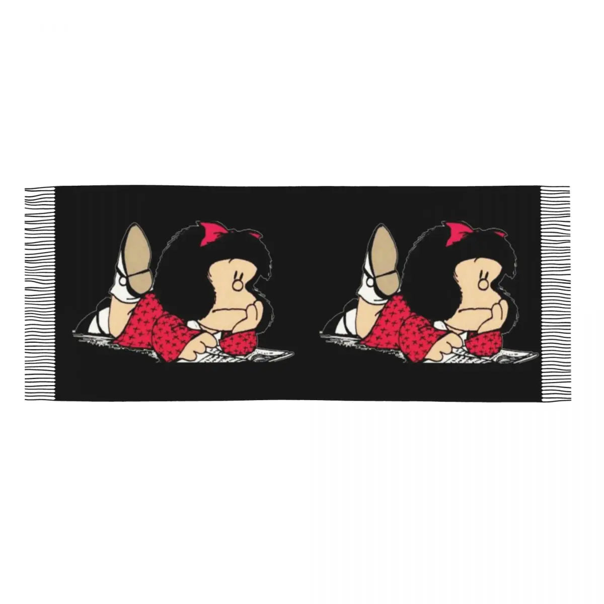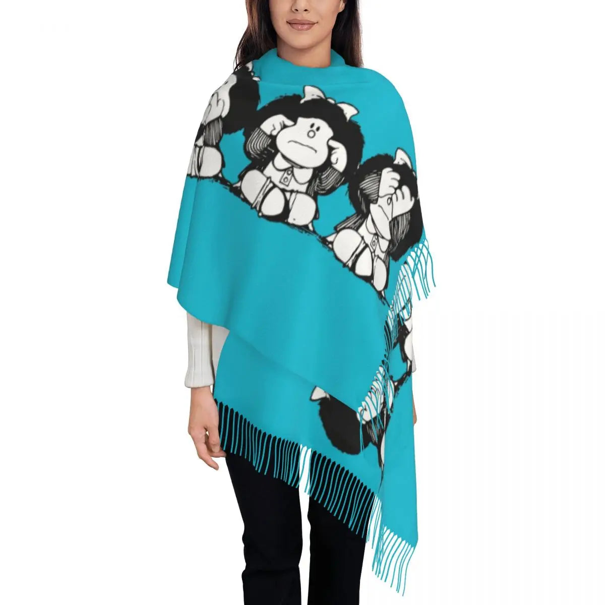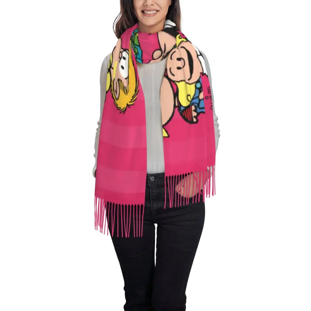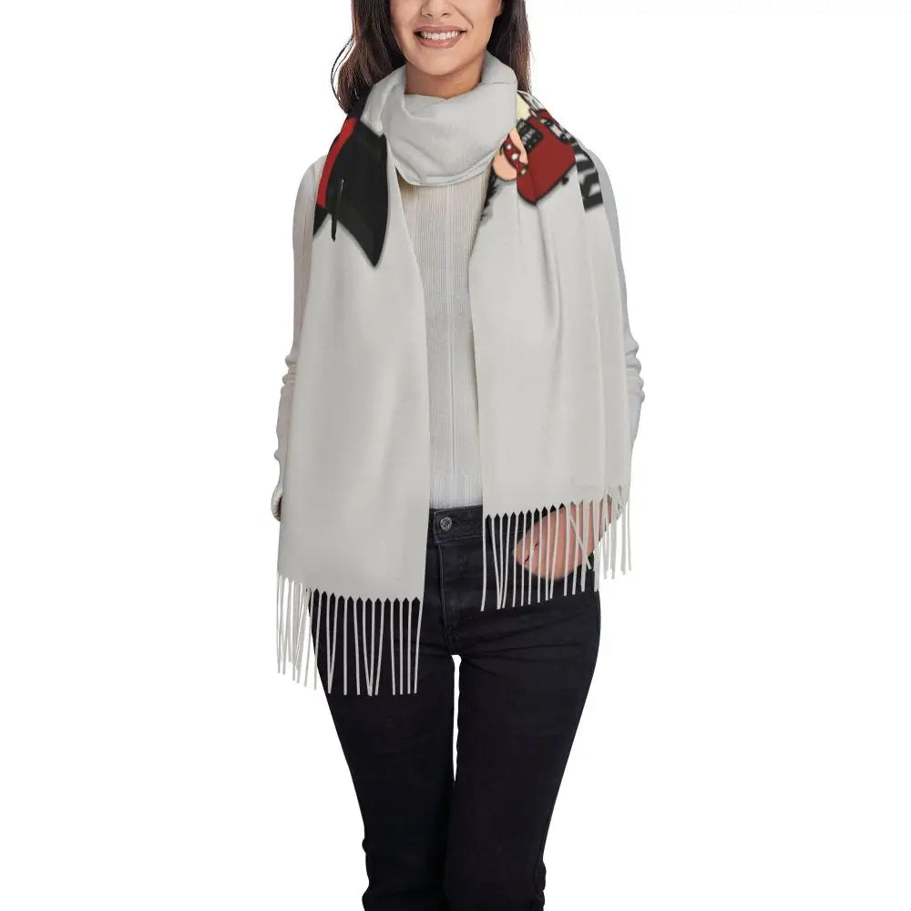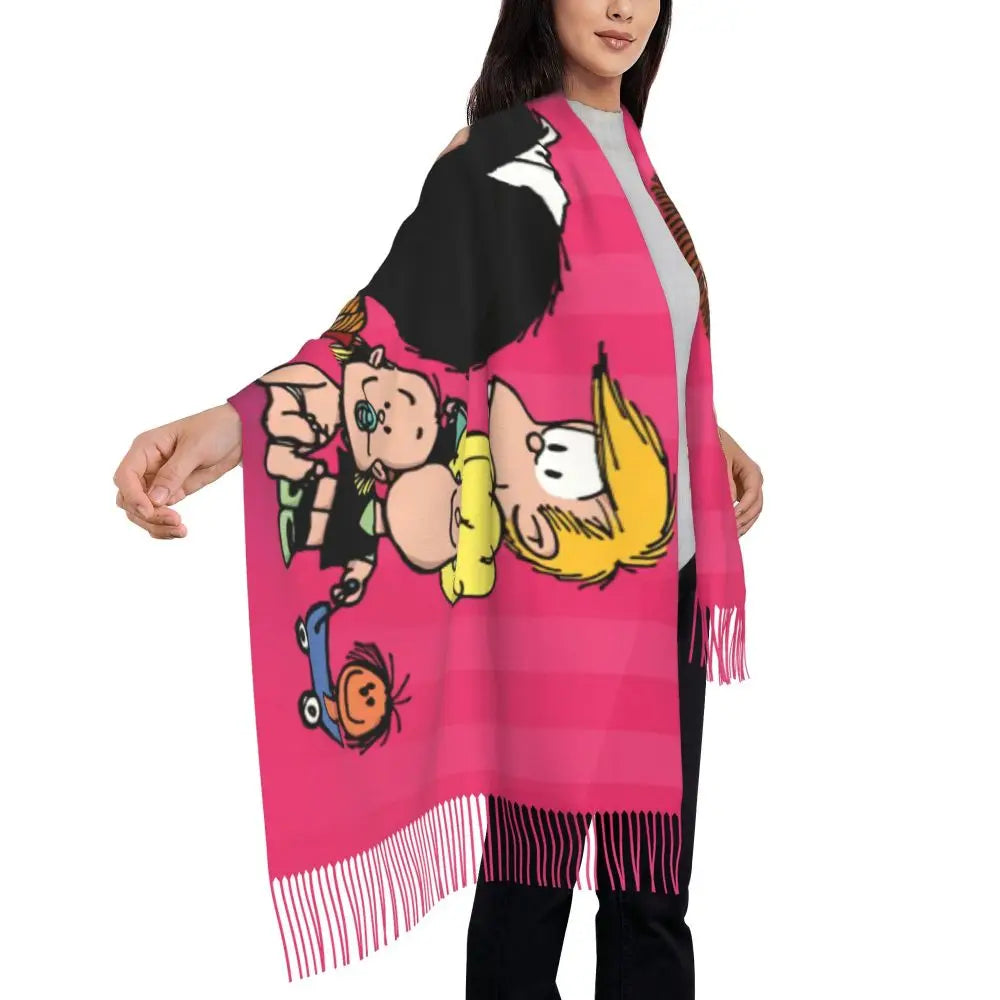 Ladies Long Cute Mafalda Scarves Women Winter Fall Soft Warm Tassel Shawl Wraps Argentine Cartoon Quino Comic Scarf
