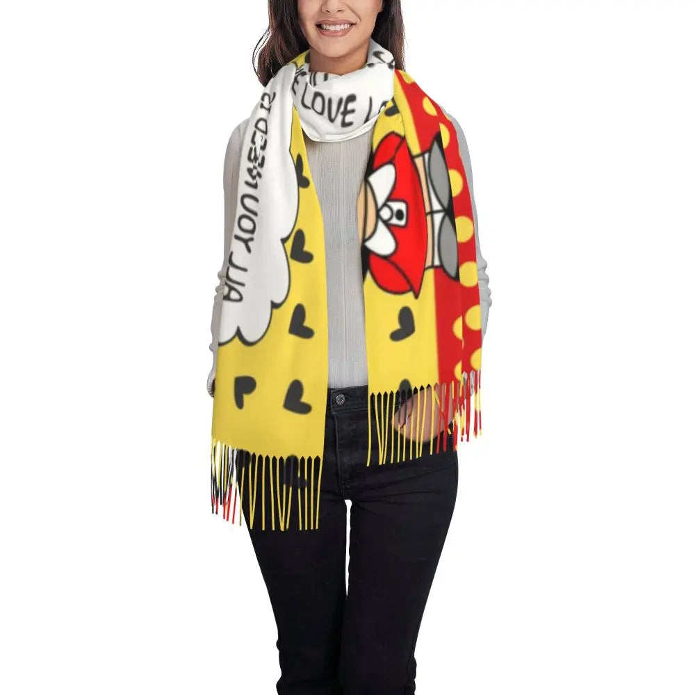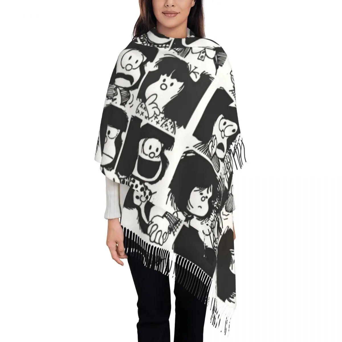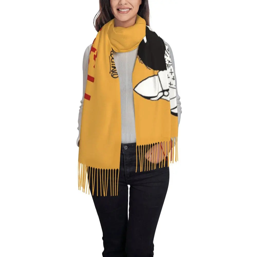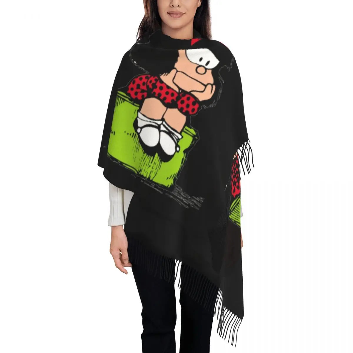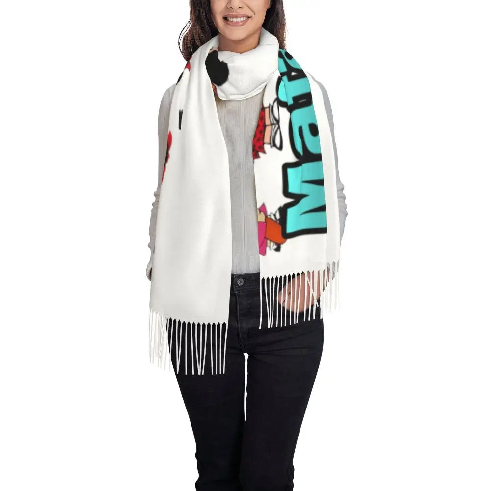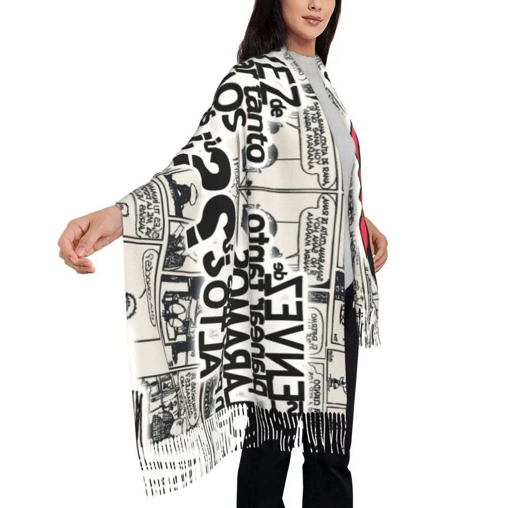 Ladies Long Cute Mafalda Scarves Women Winter Fall Soft Warm Tassel Shawl Wraps Argentine Cartoon Quino Comic Scarf