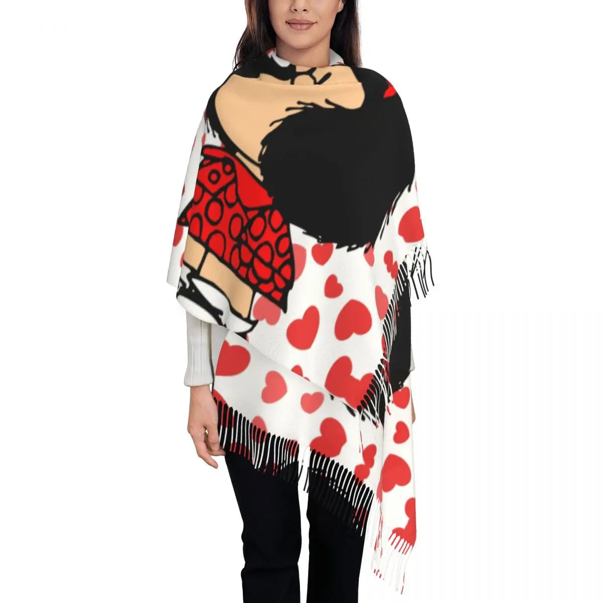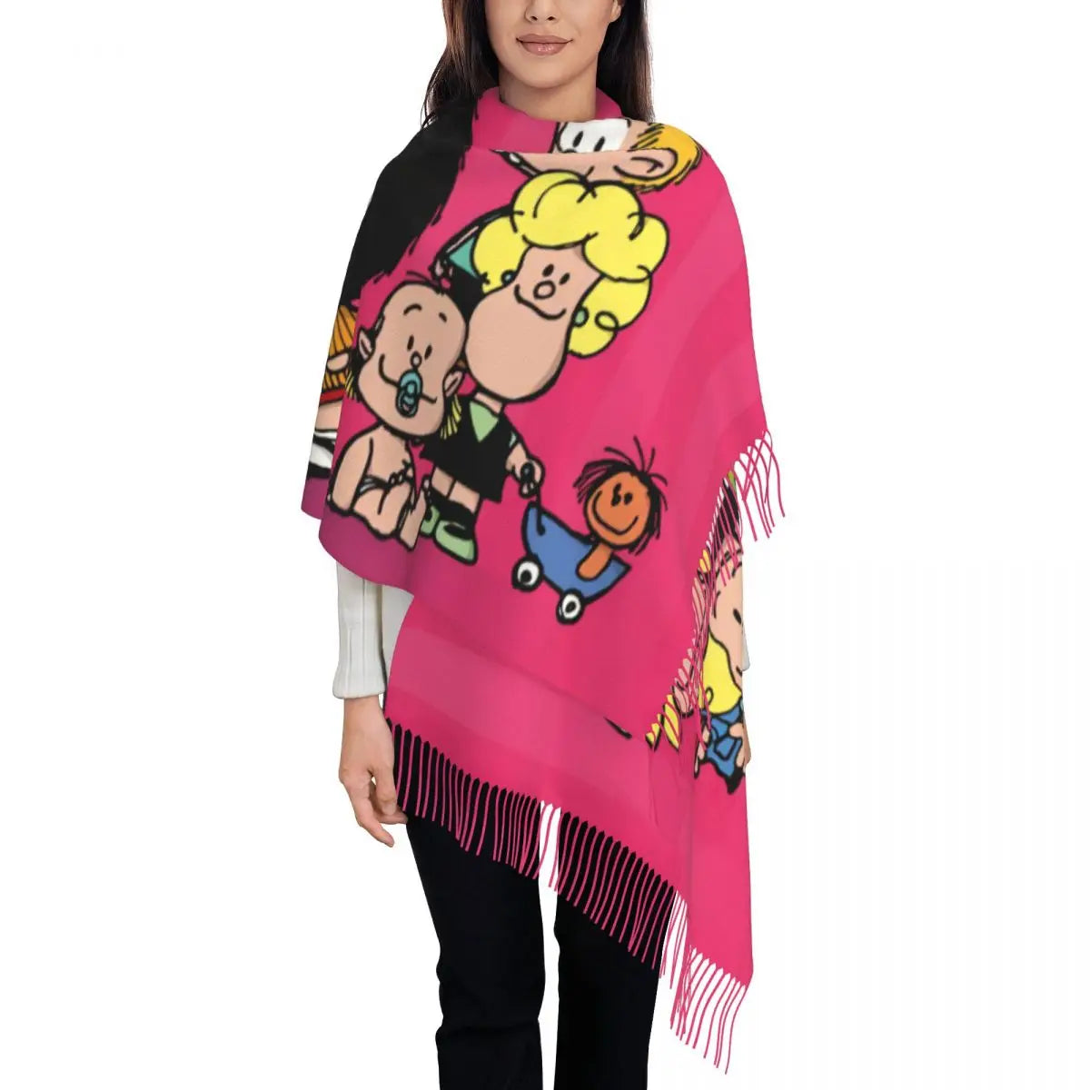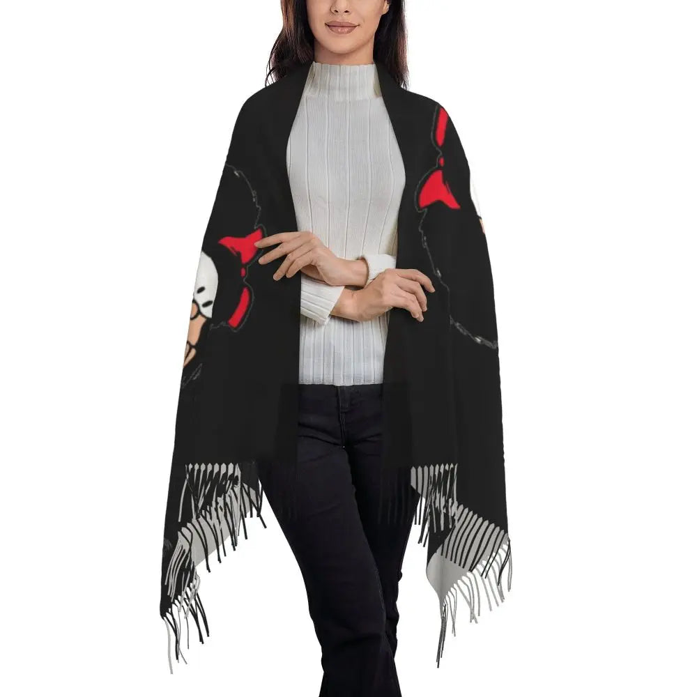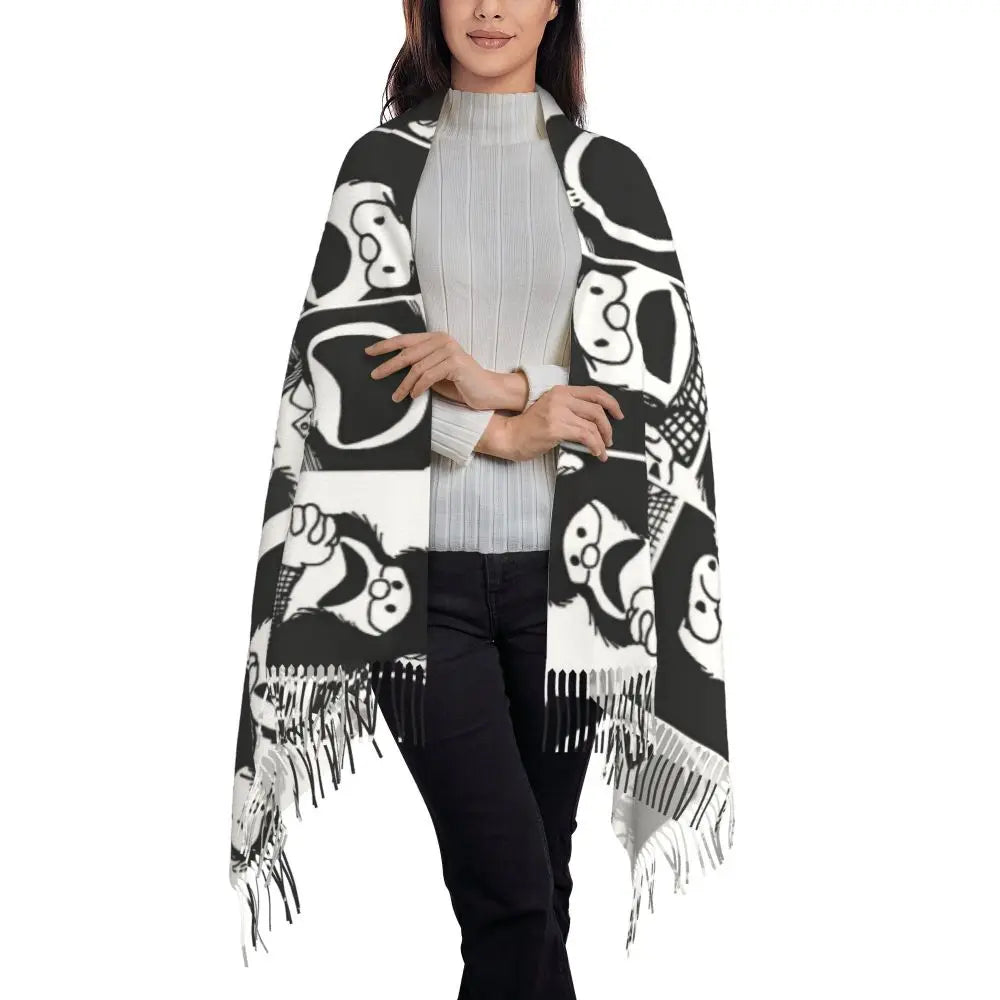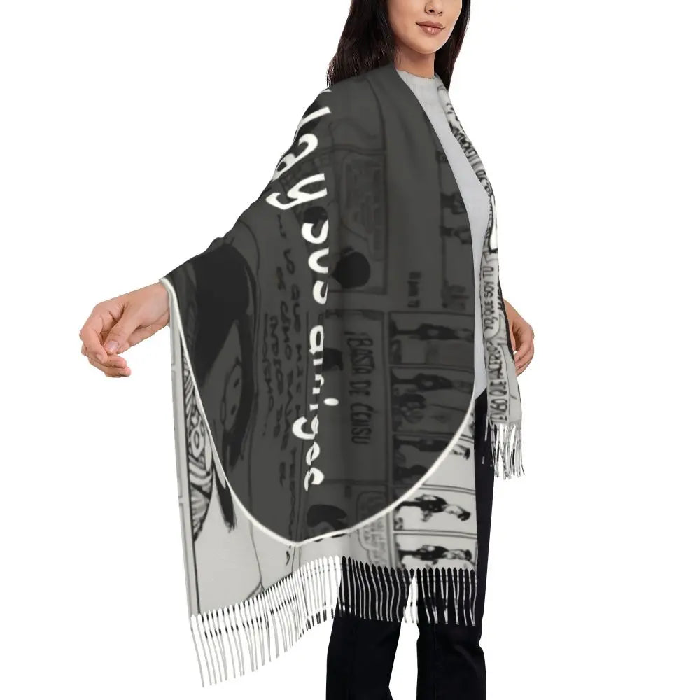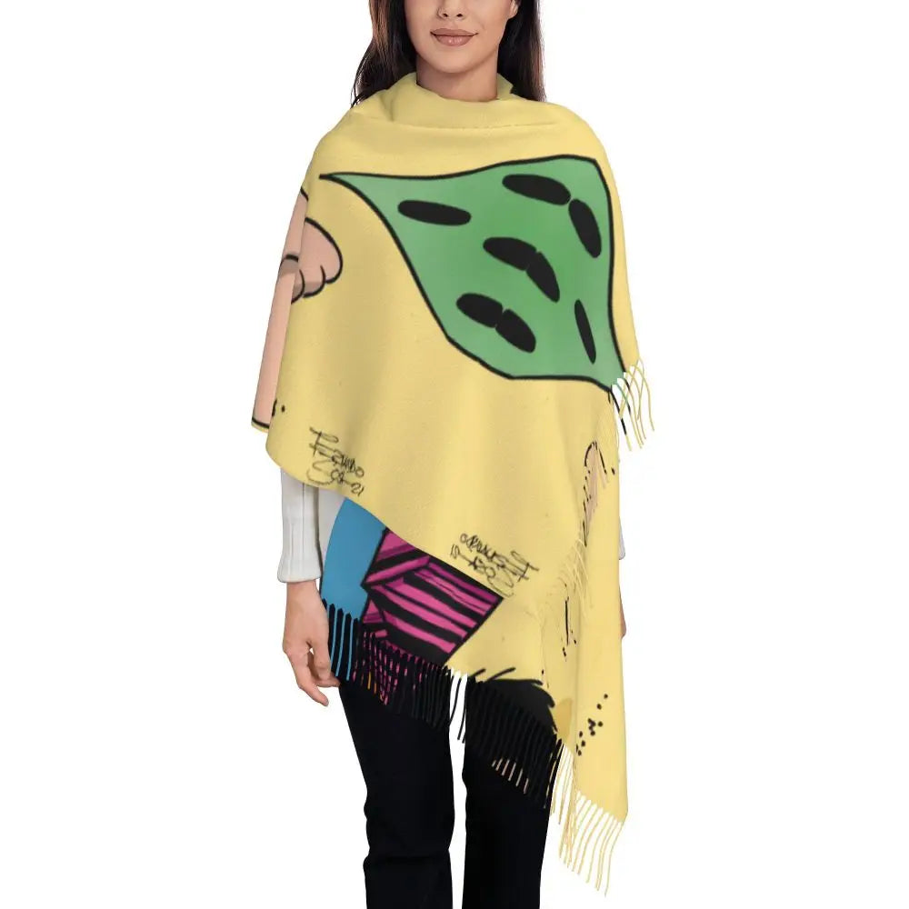 Ladies Long Cute Mafalda Scarves Women Winter Fall Soft Warm Tassel Shawl Wraps Argentine Cartoon Quino Comic Scarf