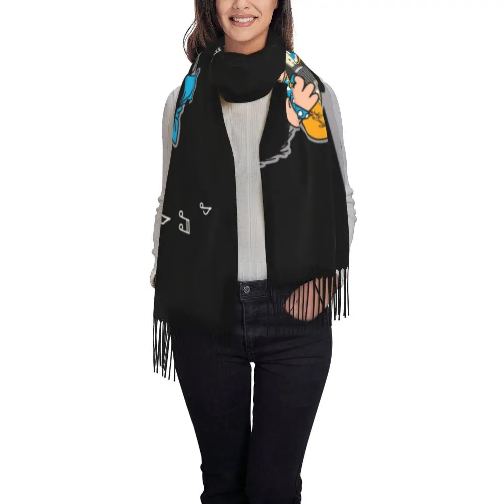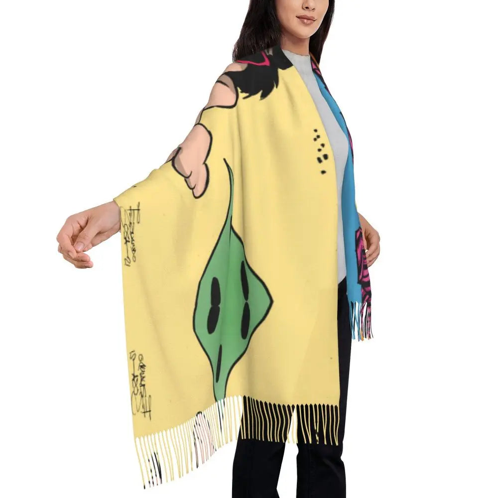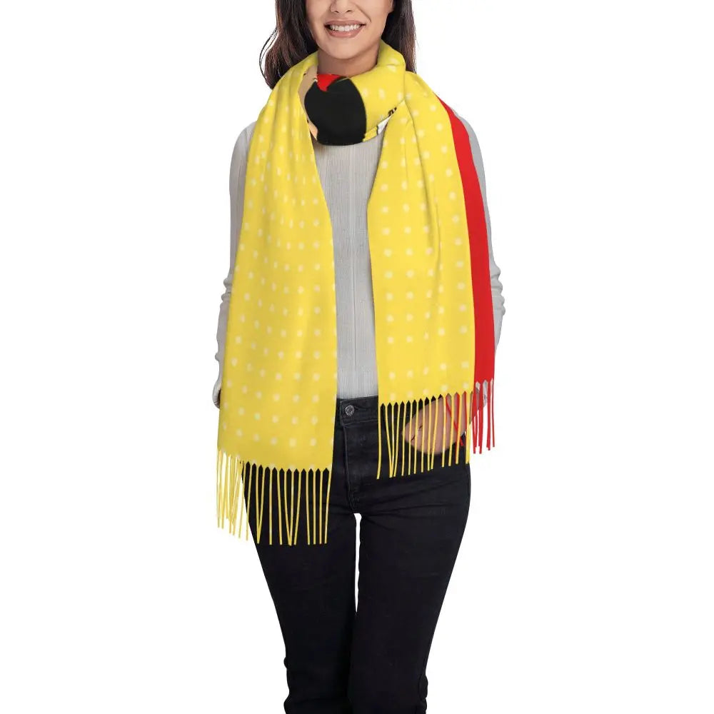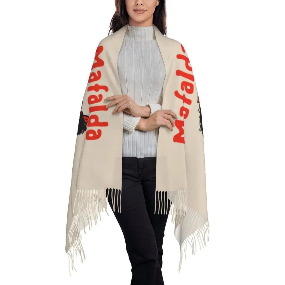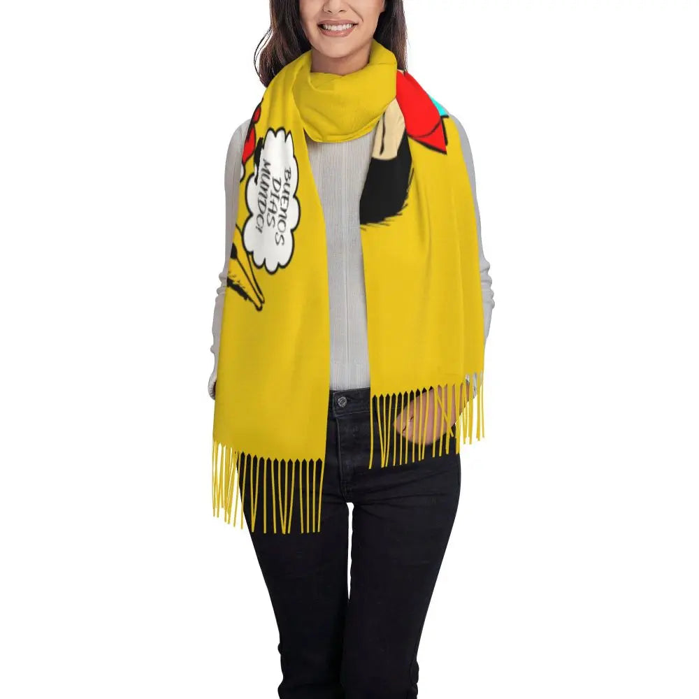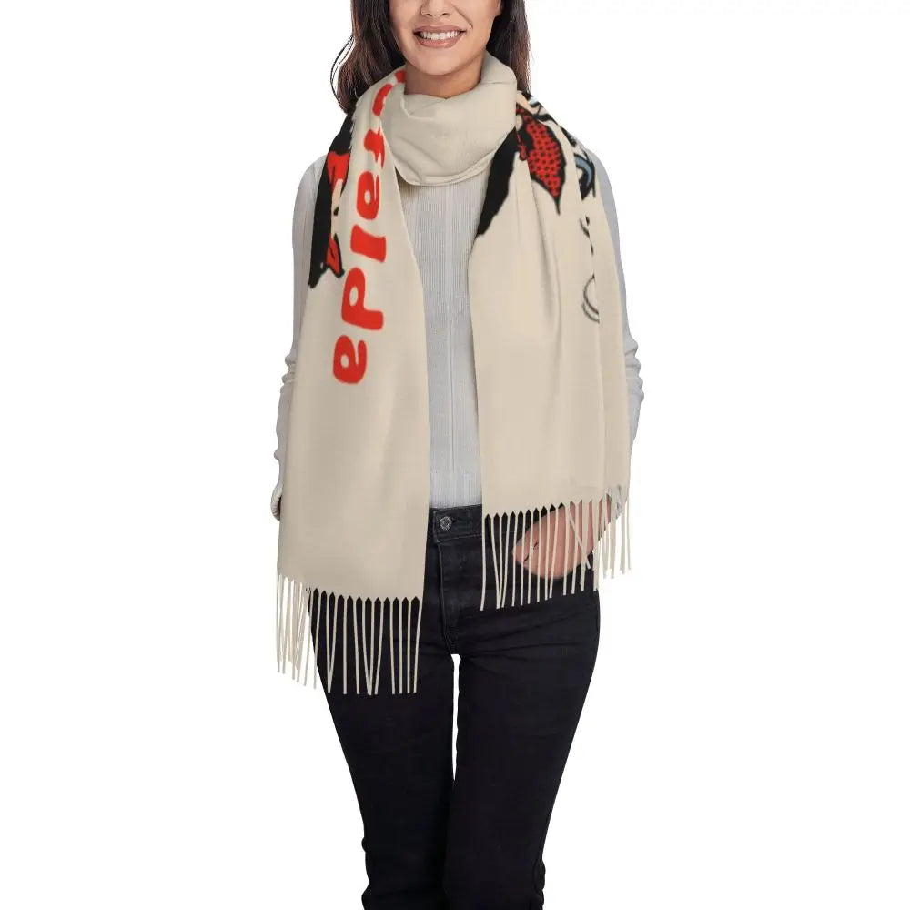 Ladies Long Cute Mafalda Scarves Women Winter Fall Soft Warm Tassel Shawl Wraps Argentine Cartoon Quino Comic Scarf