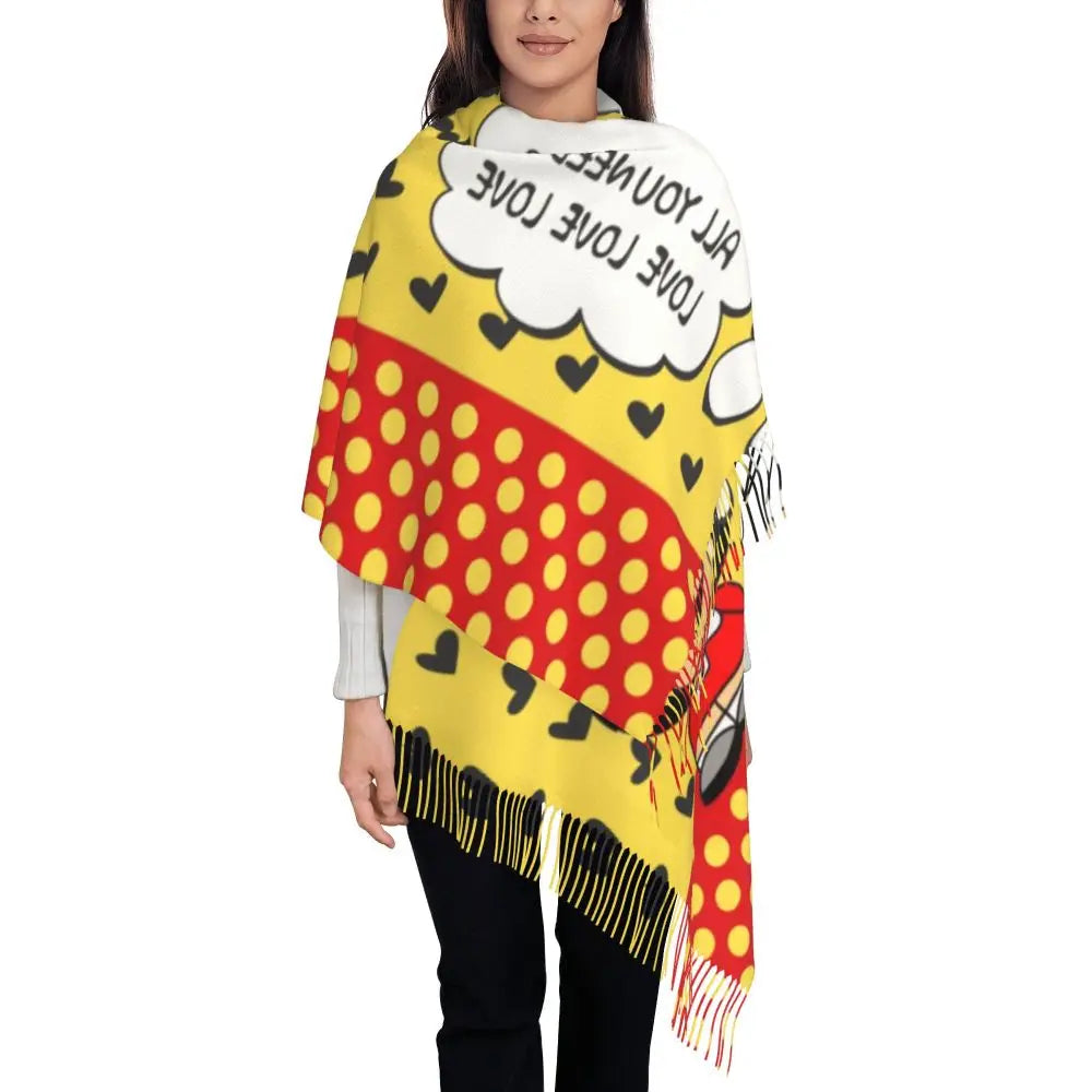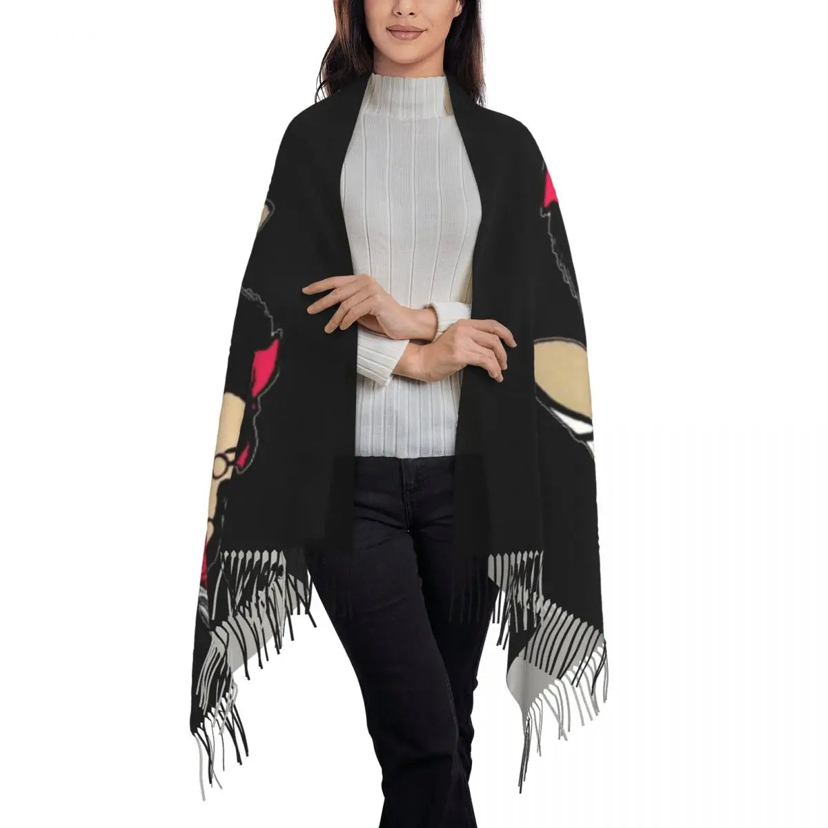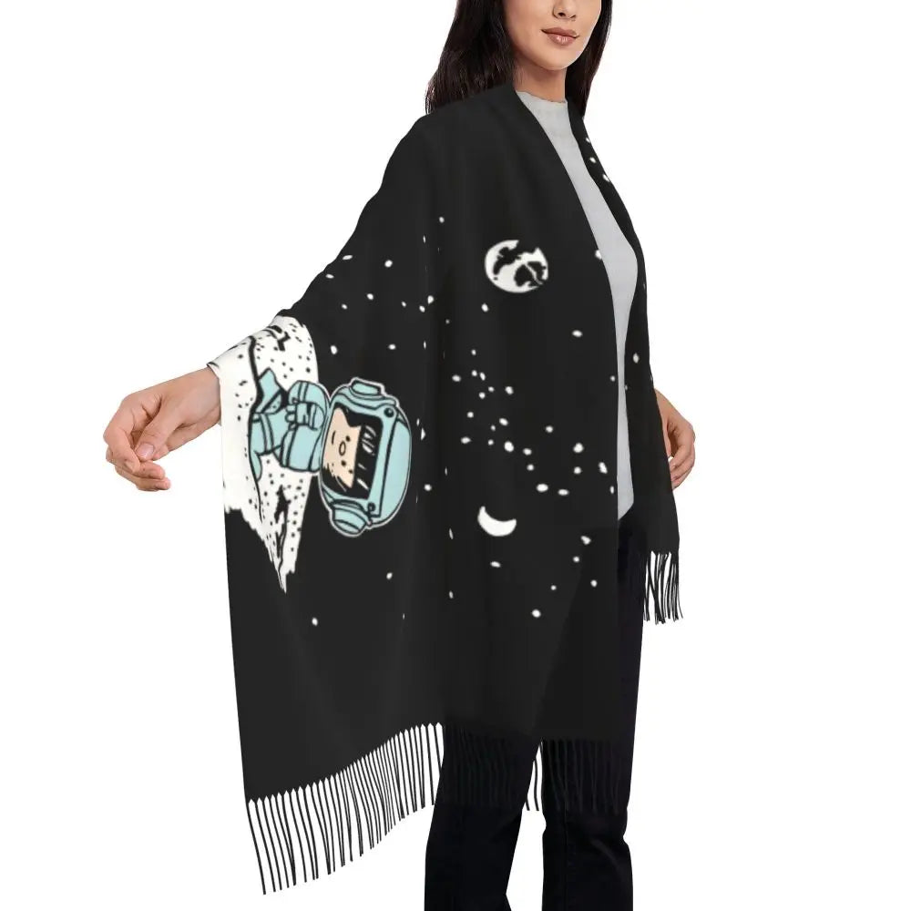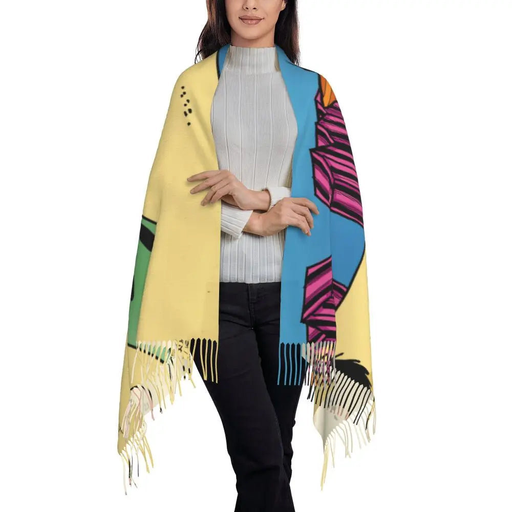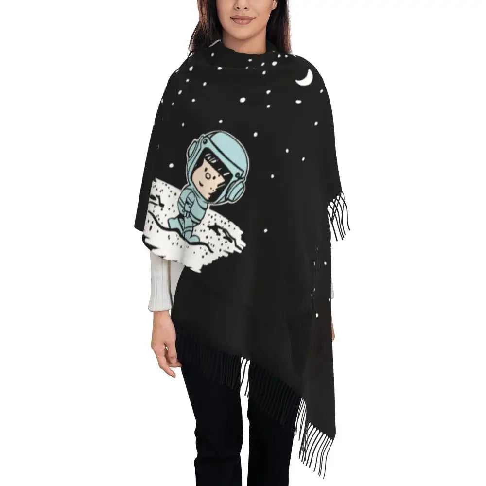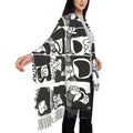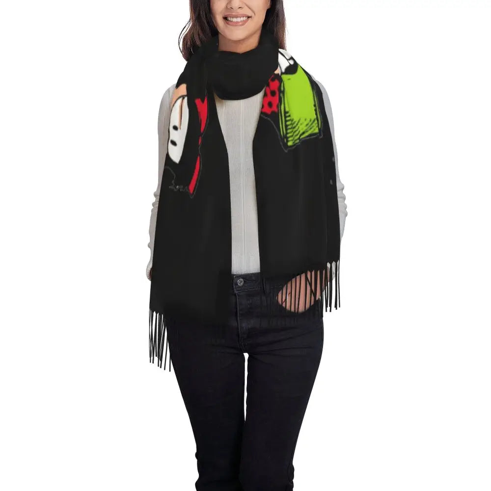 Ladies Long Cute Mafalda Scarves Women Winter Fall Soft Warm Tassel Shawl Wraps Argentine Cartoon Quino Comic Scarf