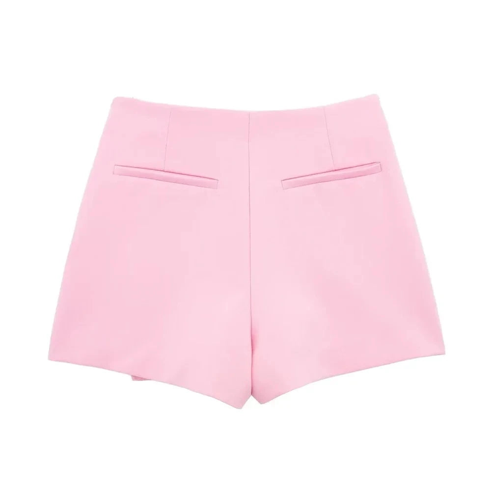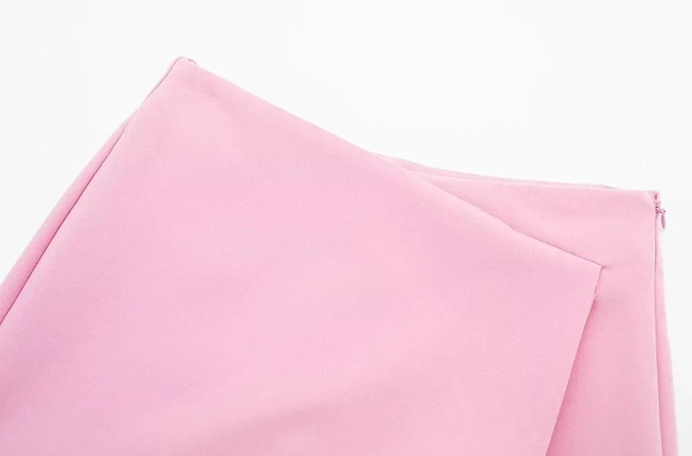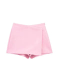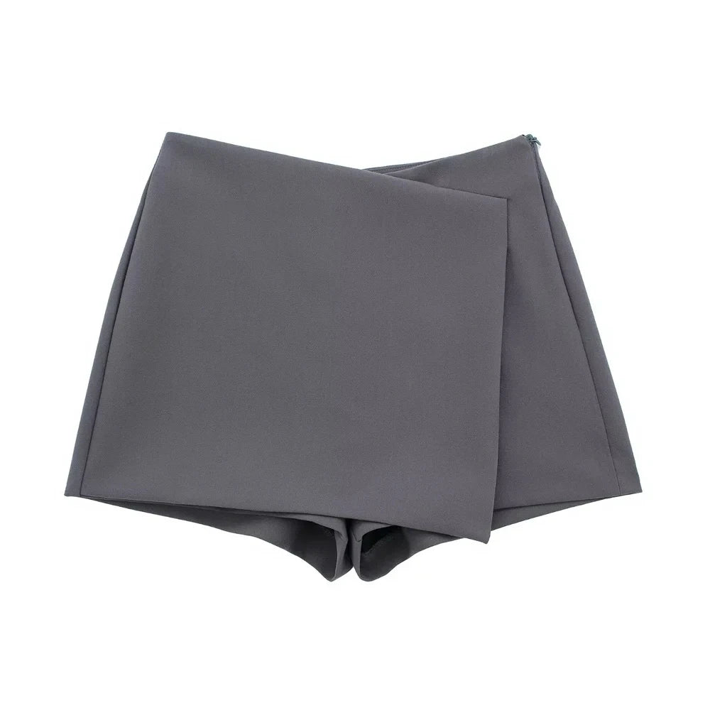 LAZVM Women Fashion Asymmetric Pareo Style Self Overlay Shorts Skirts Vintage High Waist Side Zipper Female Skort Mujer