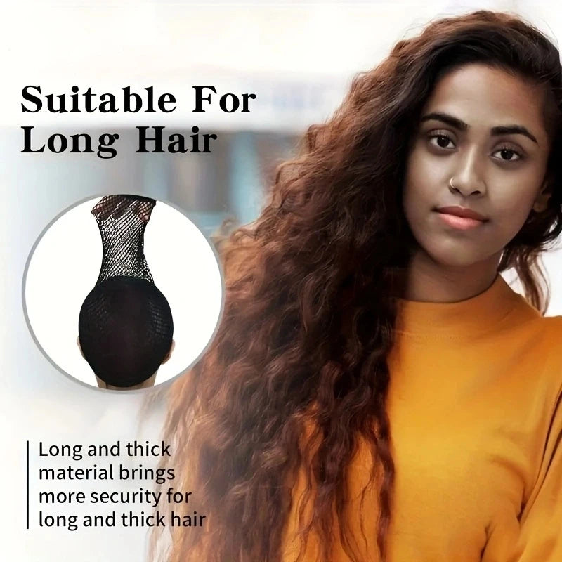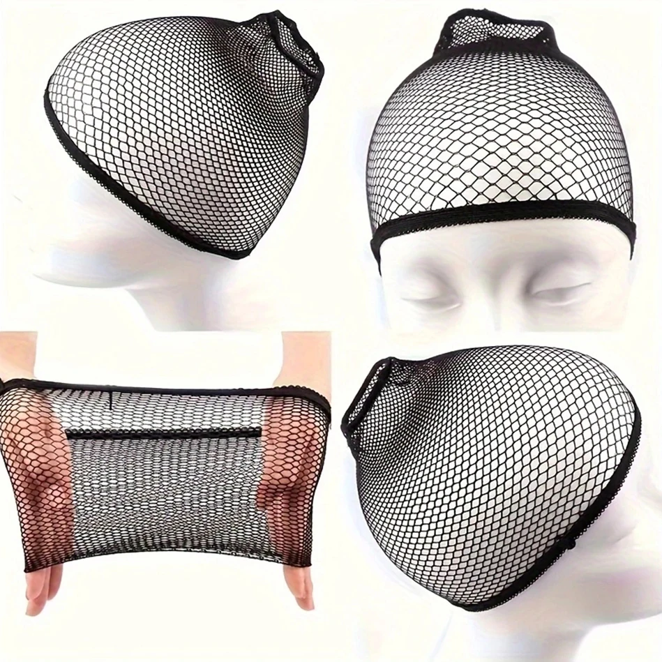Long Wig Caps, Open End Mesh Net Liner Weaving Cap, Wig Caps ForWomen Black Pack Of 6 Pcs