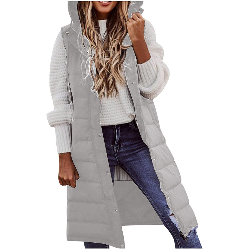 Long with Hood Outdoor Vest Down Women's Jacket Quilted Coat Sleeveless Jacket Winter Light Weight Sweaters