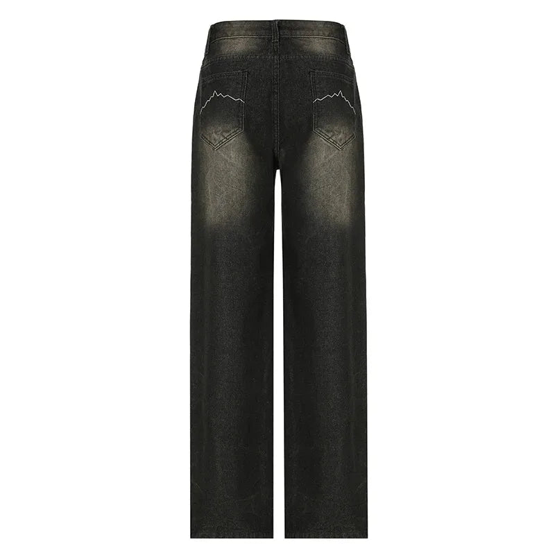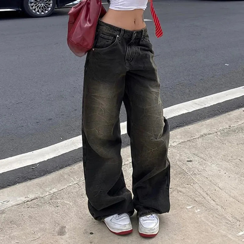 Low Waist Jeans for Women Goth Y2k Style Baggy Jeans Punk New Jeans Wide Leg Denim Pants Kpop Casual Loose Streetwear
